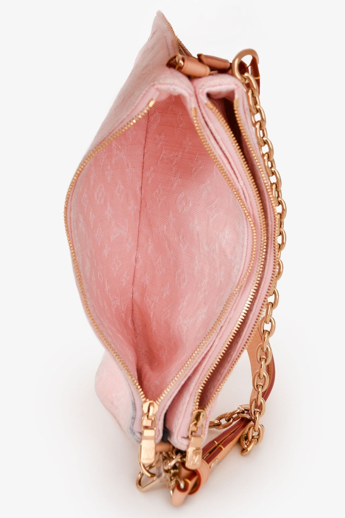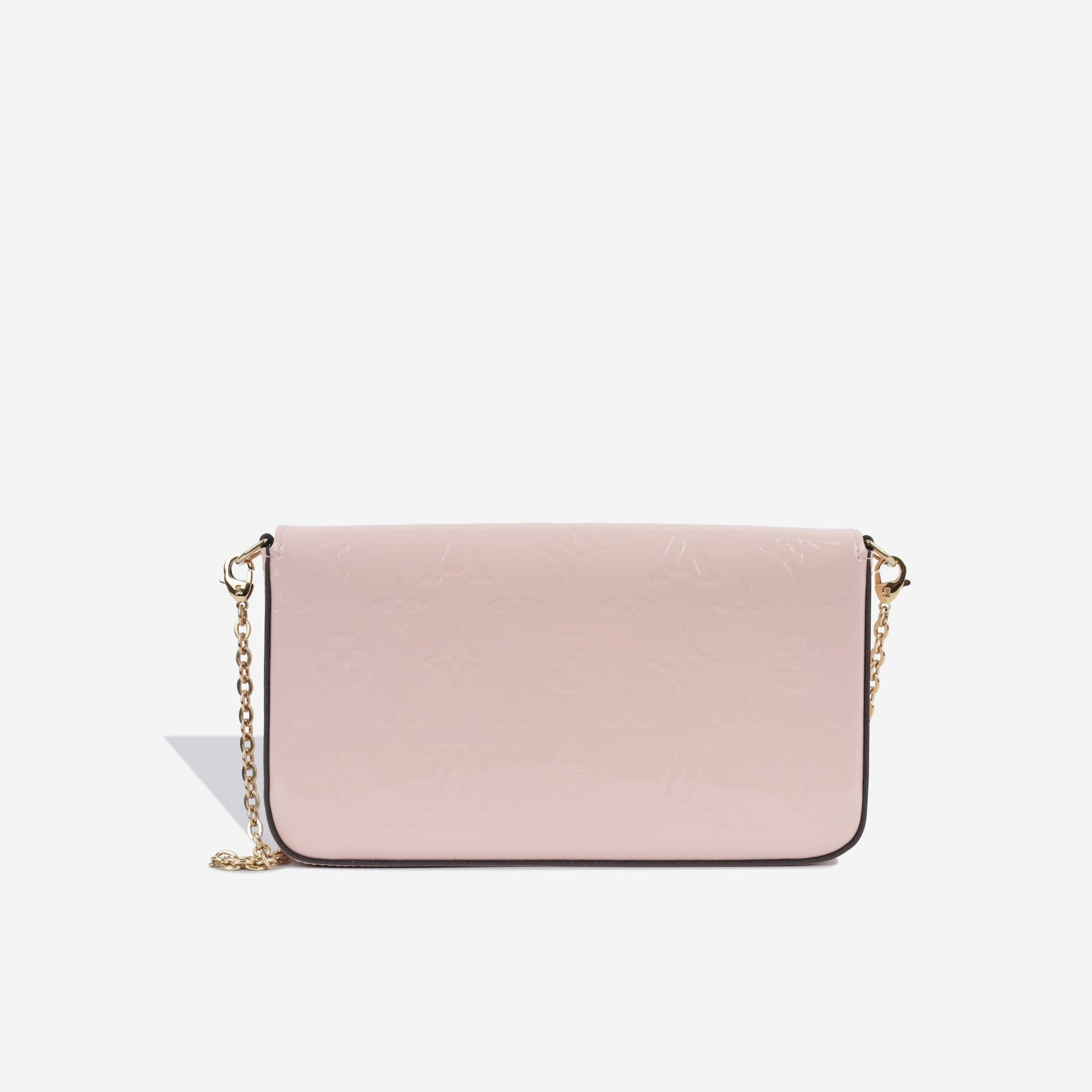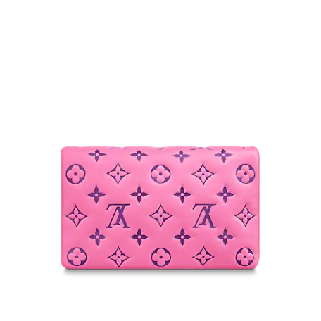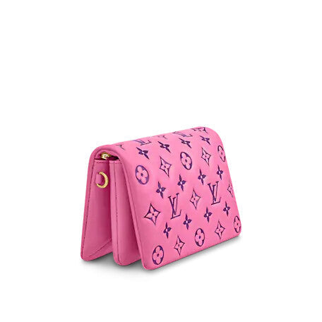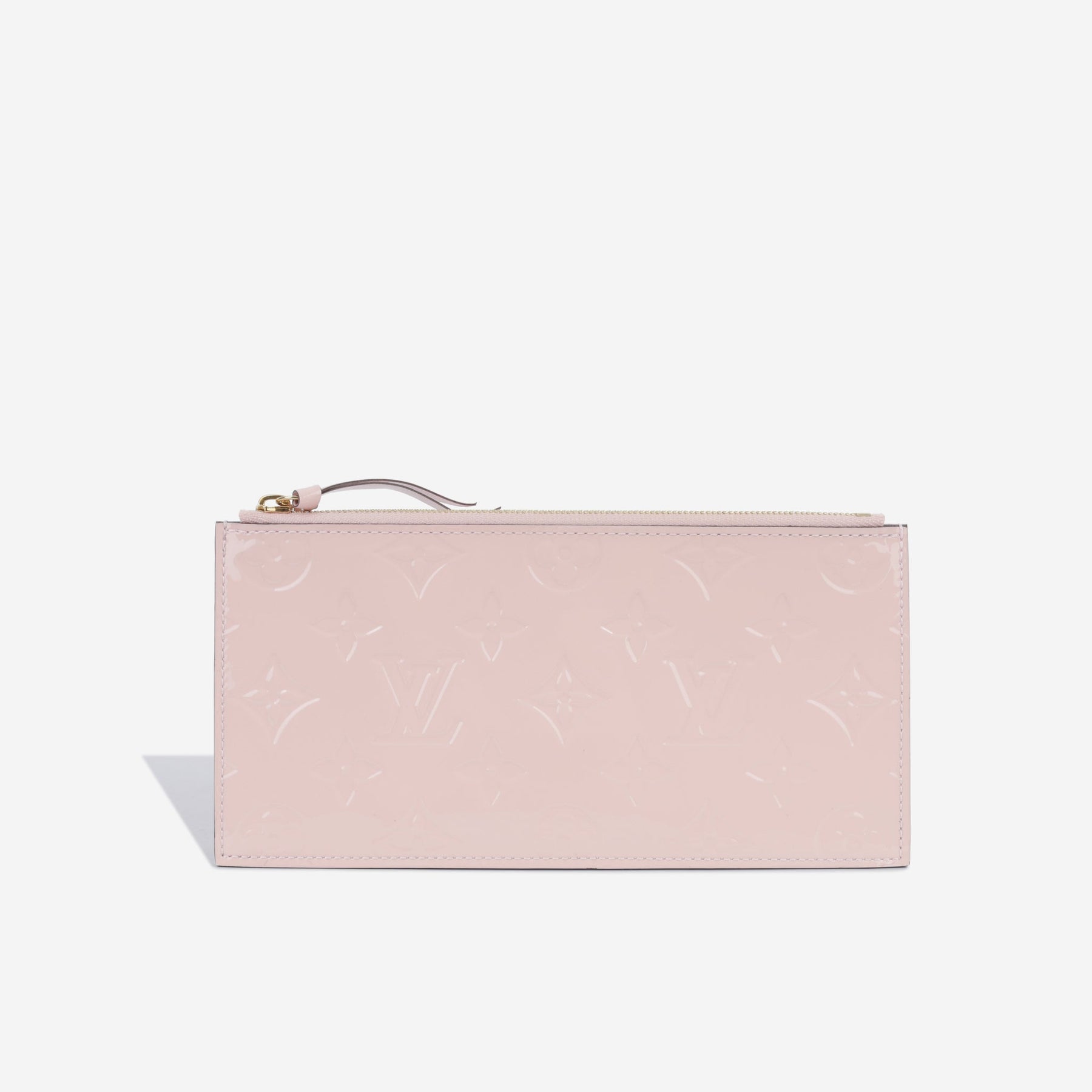 From casual to night-out, this bag would be perfect accessory. This particular piece comes in rose ballerina pink in a glossy monogram patent calf leather. It features two wallet inserts, including one with card slots to keep all of your money safe.