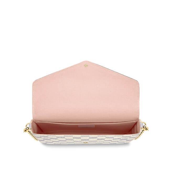 Regular price $1,800.00 Sale price $589.99 Save $1,210.01The Pochette Felicie in Damier Azur canvas is a versatile pouch for modern lifestyles. Its envelope-style flap opens to reveal a spacious compartment with two removable pockets: one zipped, another with several card slots. It can be carried on the shoulder or across the body, or - with the chain removed - as a clutch.