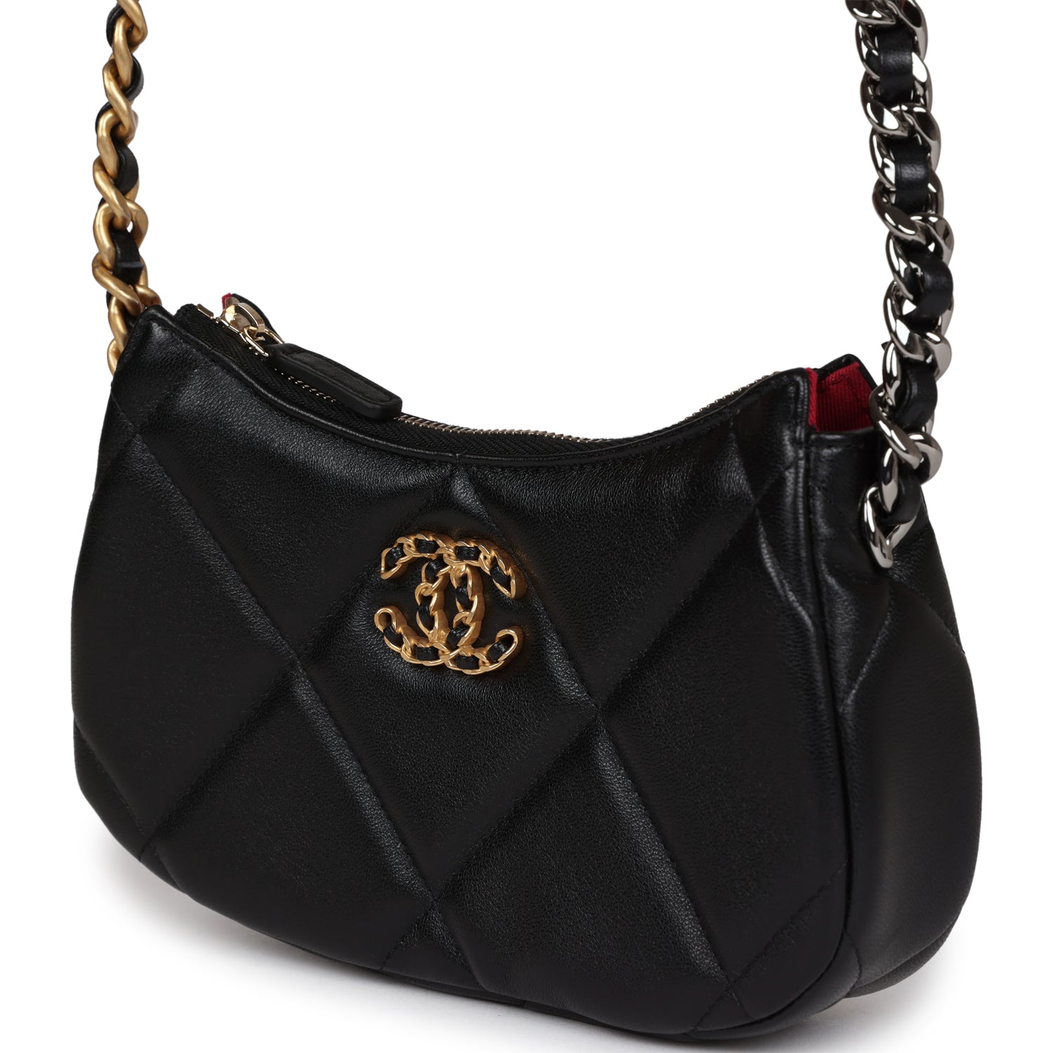 Chanel 19 Hobo Bag Black Lambskin Mixed Metal Hardware