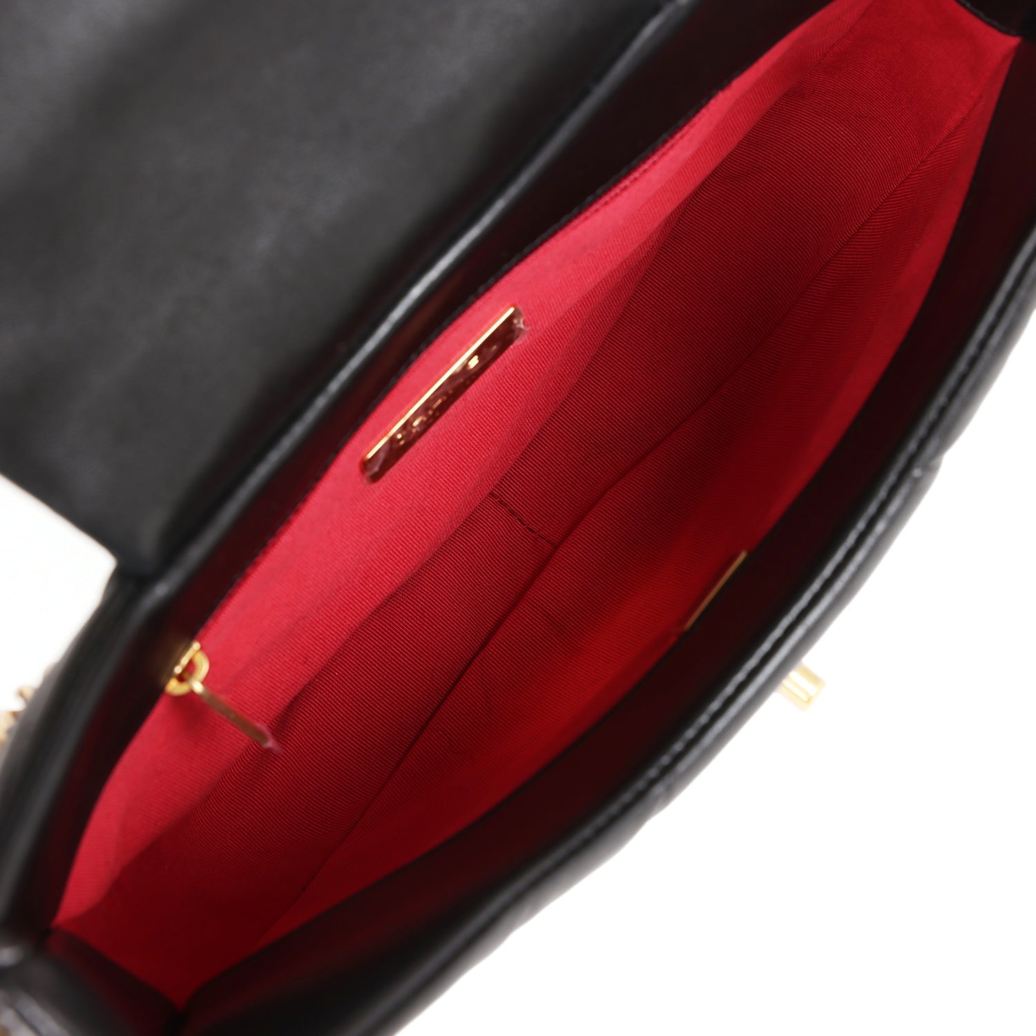 Regular price $1,820.00 Sale price $440.00 Save $1,380.00This 19 Hobo Shoulder Bag is in black lambskin with mixed metal hardware and has tonal stitching, 19 style CC on front of bag, and an interwoven mixed metal chain woven with black leather.