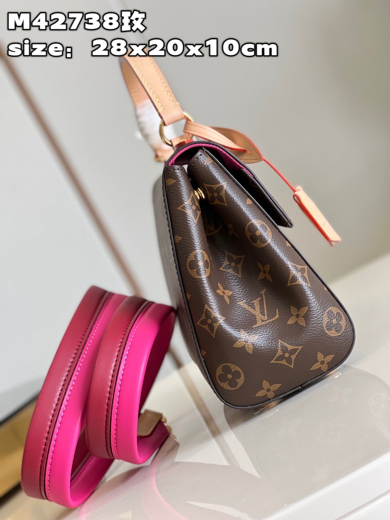 - 2 long leather shoulder straps (drop: 24 cm)