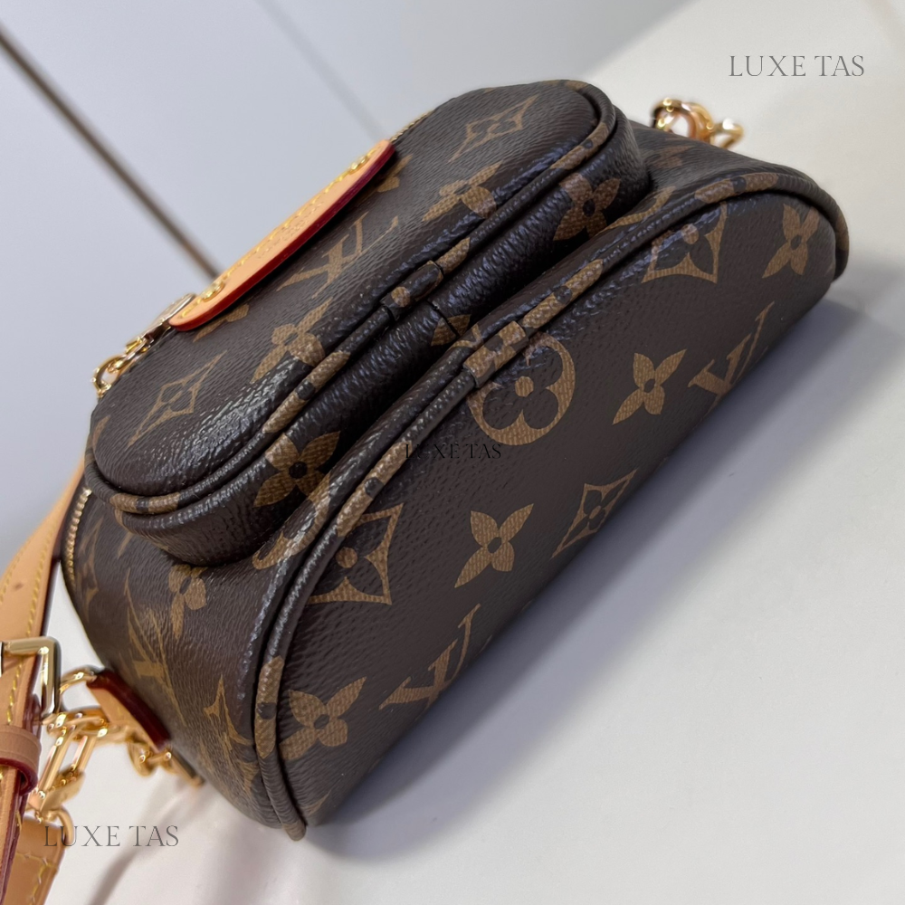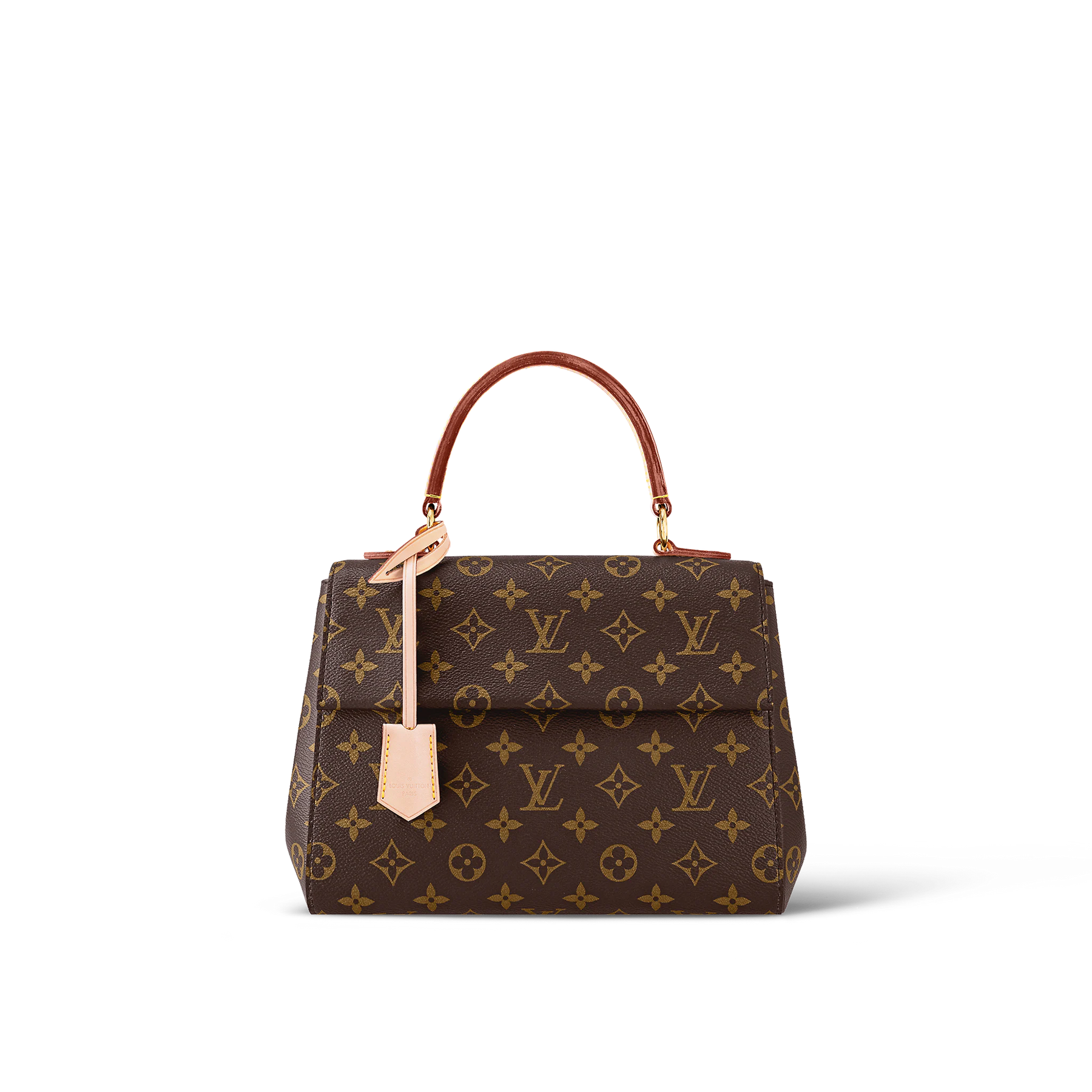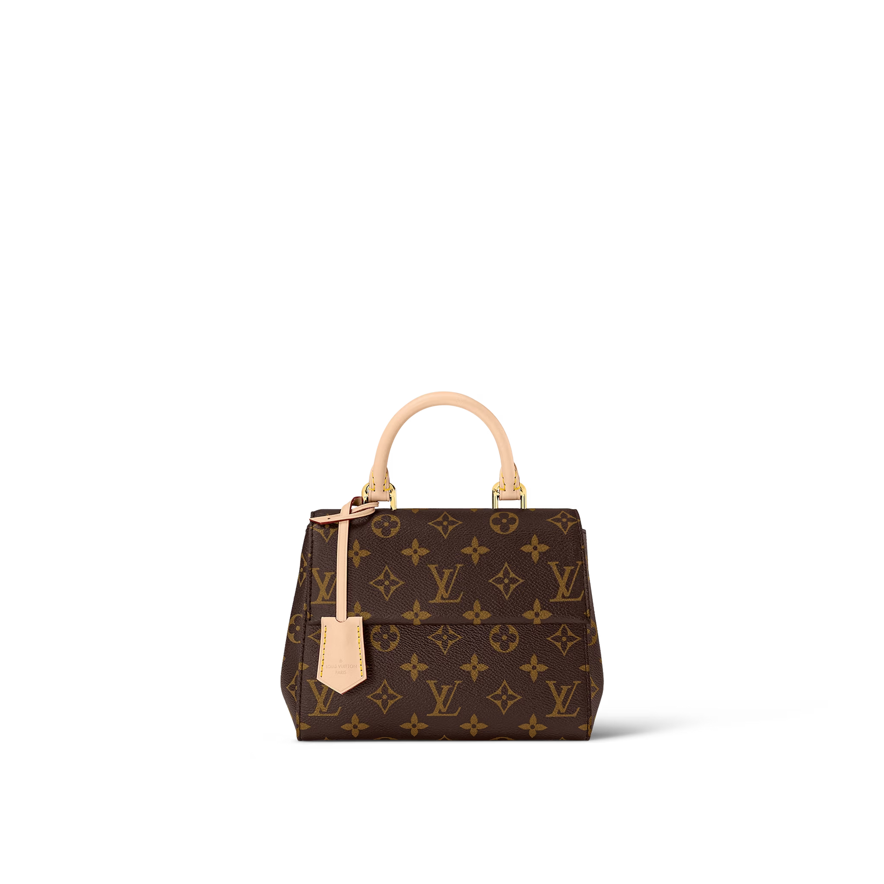 Louis Vuitton presents the charming Cluny Mini handbag, crafted from the iconic Monogram canvas to captivate L*V enthusiasts. This perfect little bag for everyday use boasts a signature Toron handle and key bell in the brand's timeless natural leather. The addition or removal of a textile strap enriched with a woven "L*V" logo elevates the bag's versatility, allowing it to complement various styles.