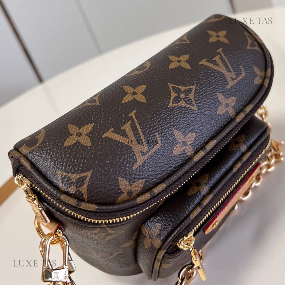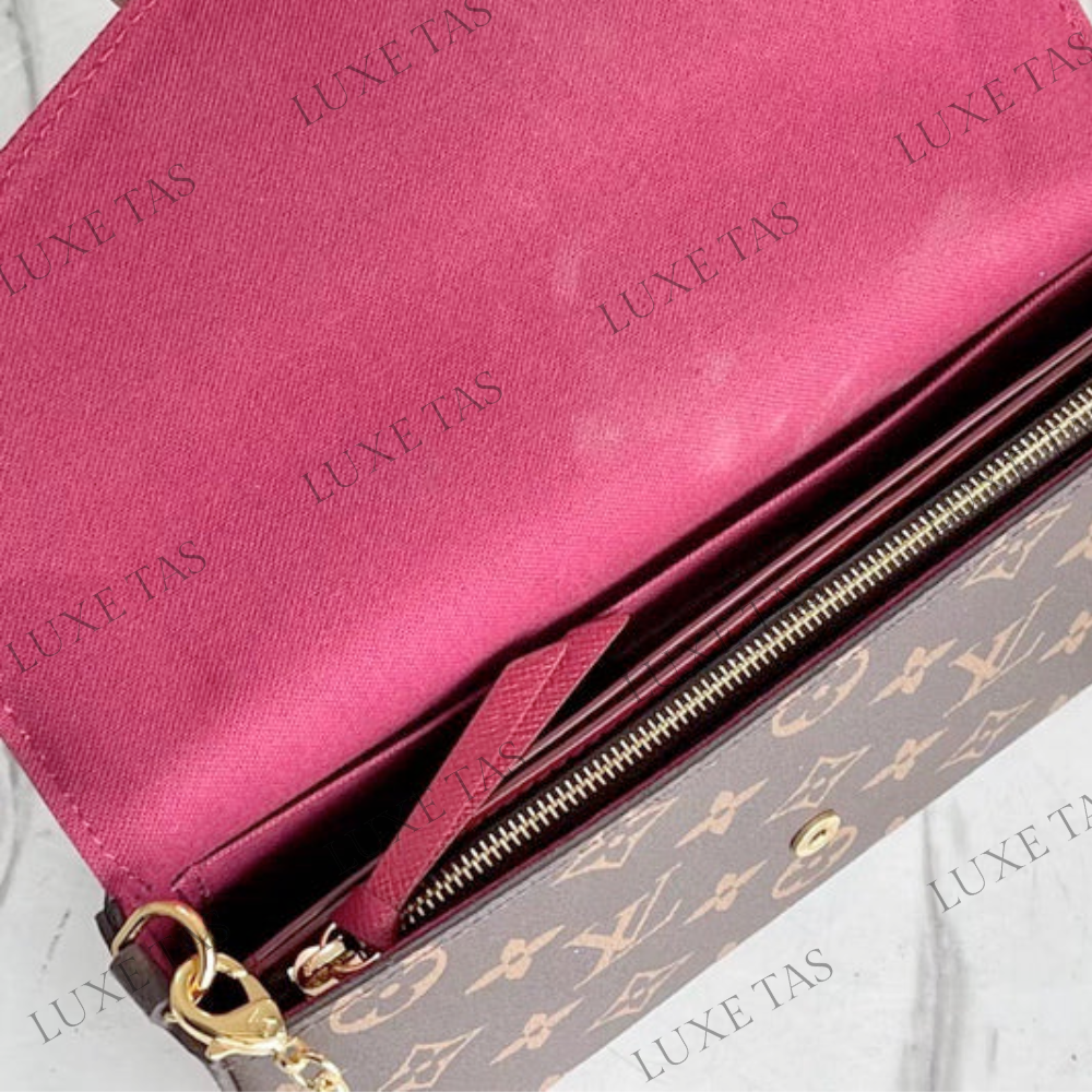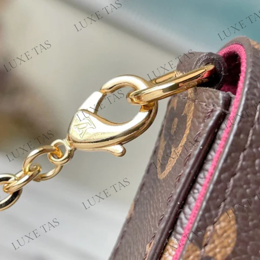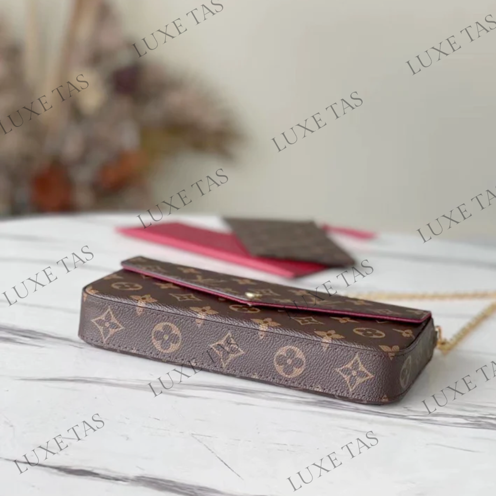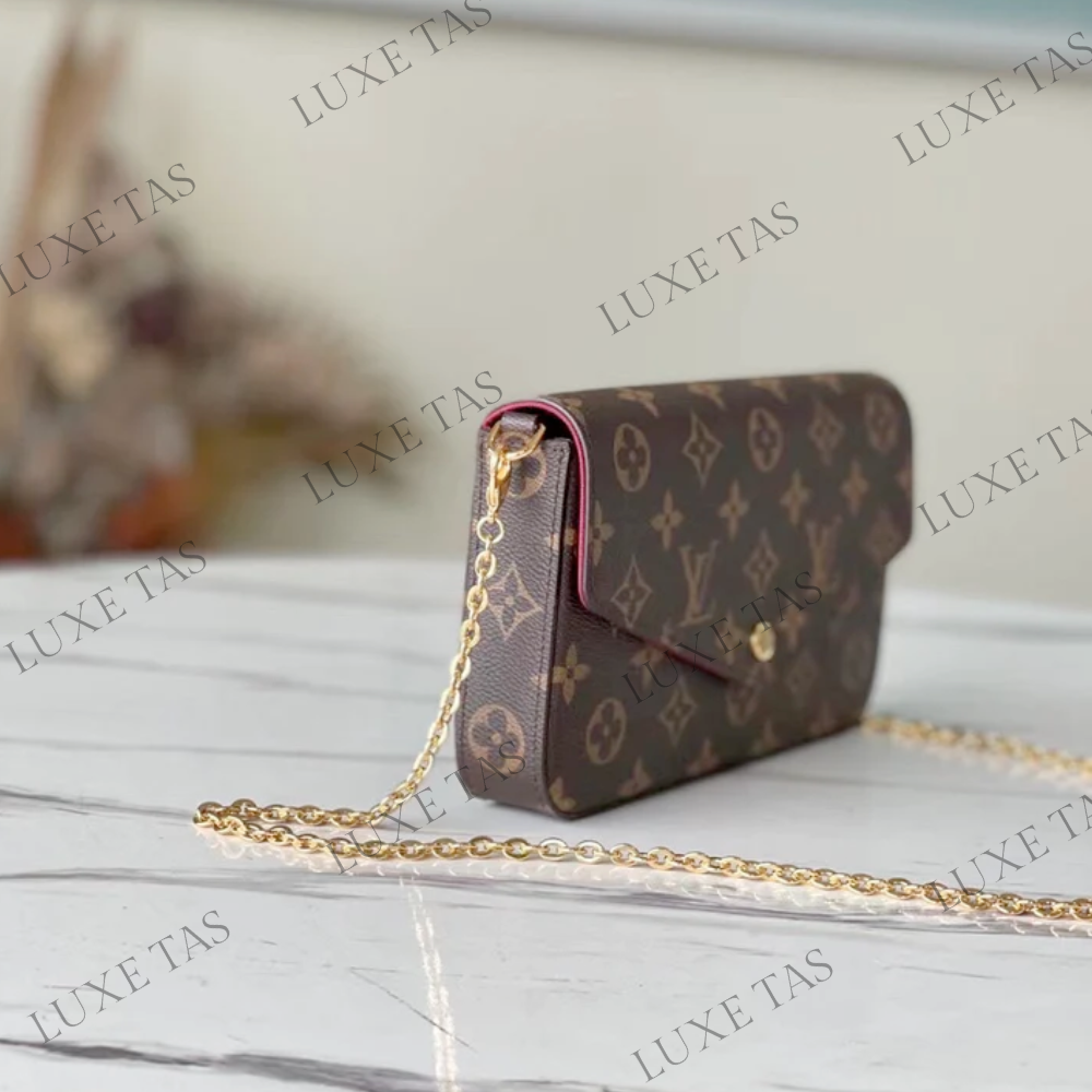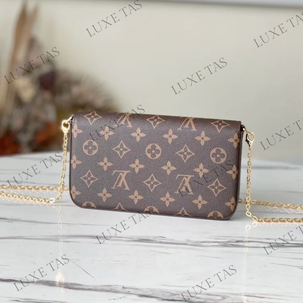 The Monogram canvas Pochette Félicie is an elegant option for storing and arranging daily necessities. This adaptable pouch comes with two detachable pockets, including one with multiple card slots. It can be worn as a shoulder bag or a clutch, with the option of a removable gold-tone chain.