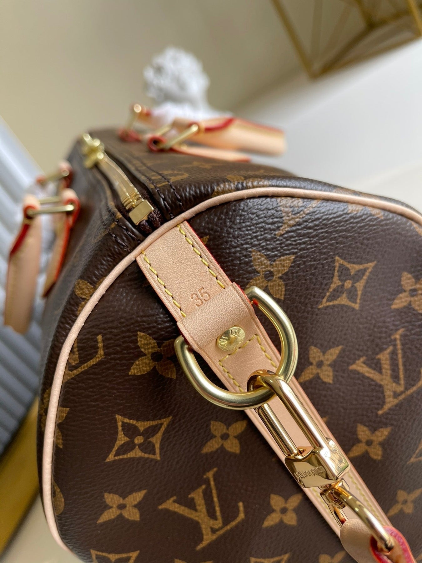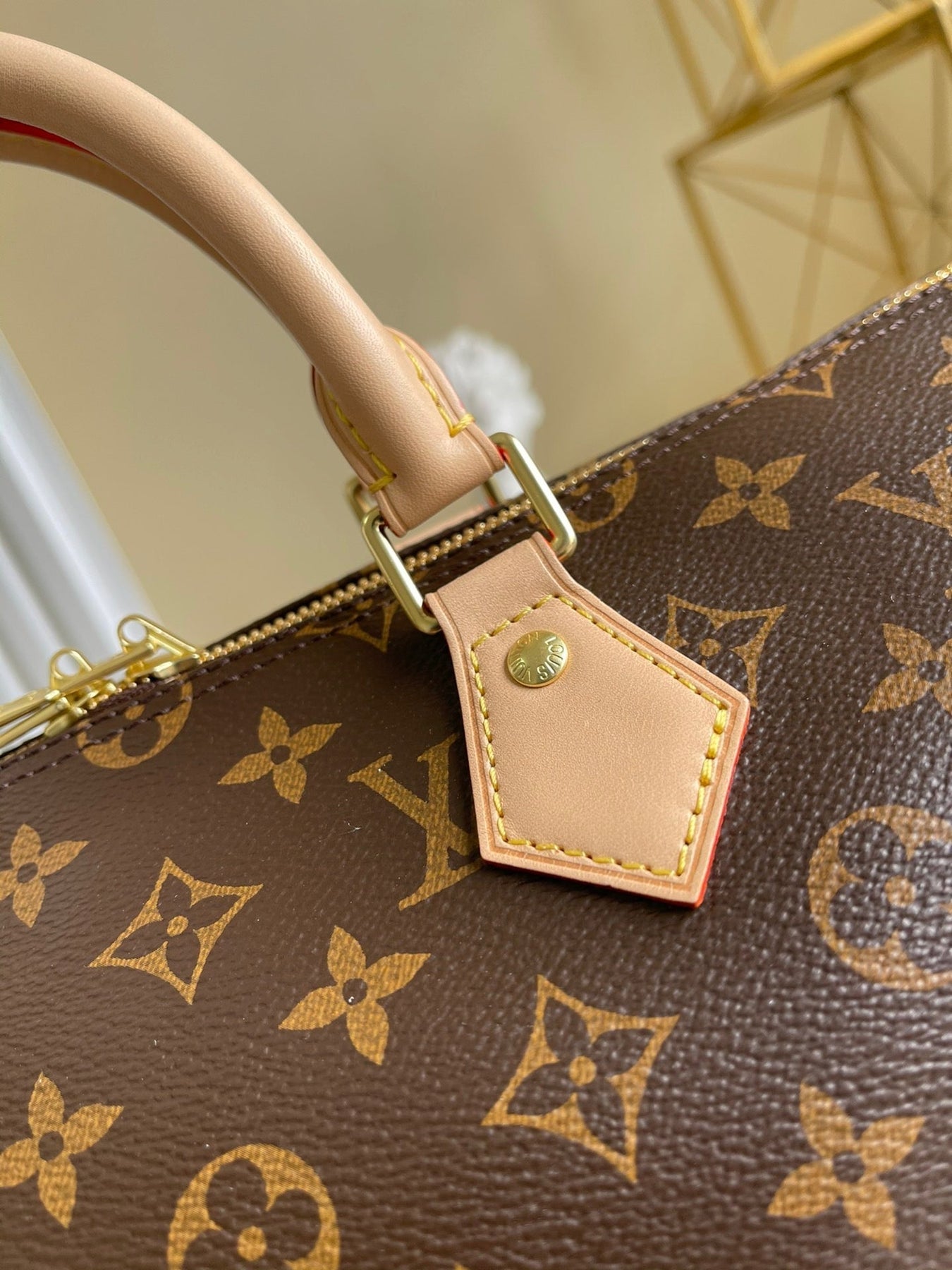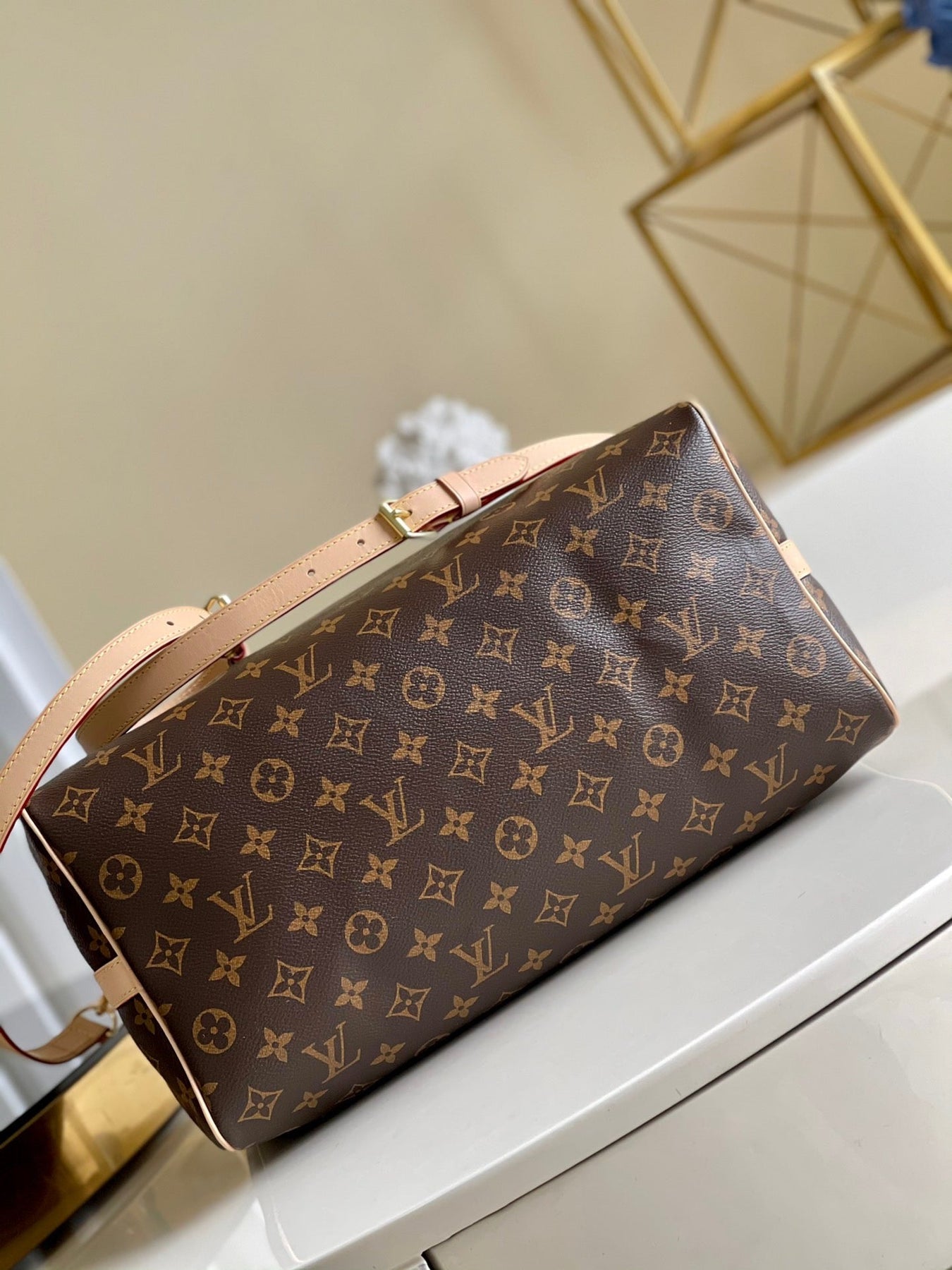 - Monogram coated canvas and cowhide leather