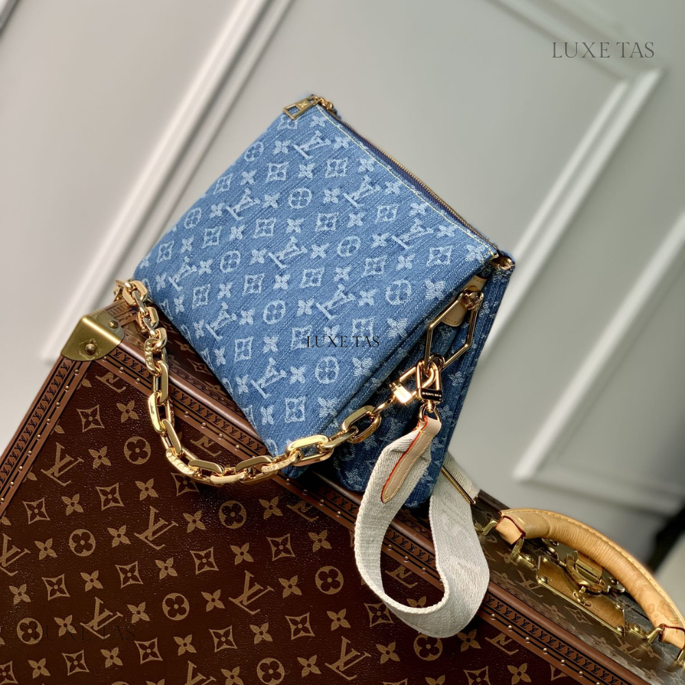 Monogram Denim Coussin PM Leather Crossbody Bag for Women