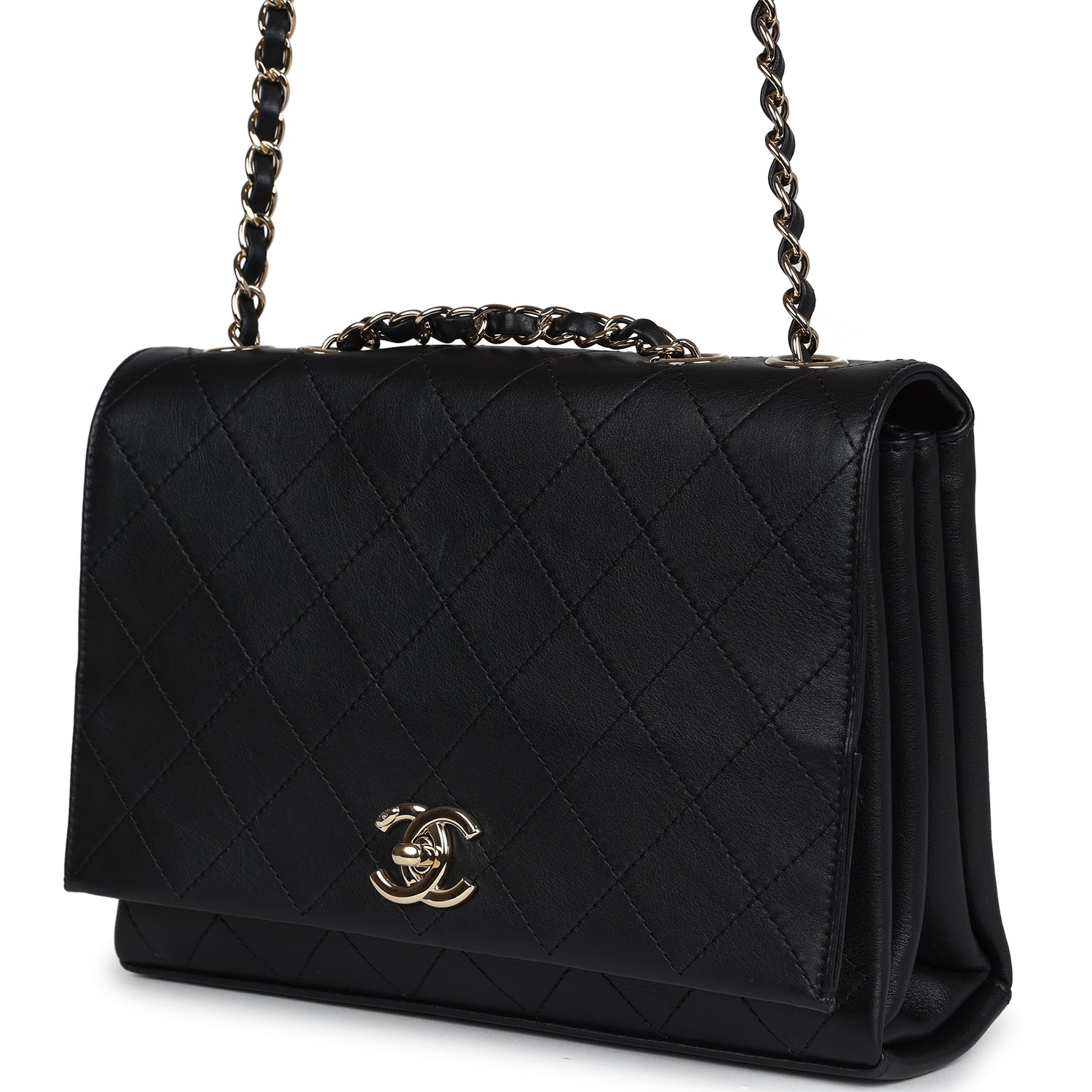 New Chanel Flap Bag Black Calfskin Light Gold Hardware