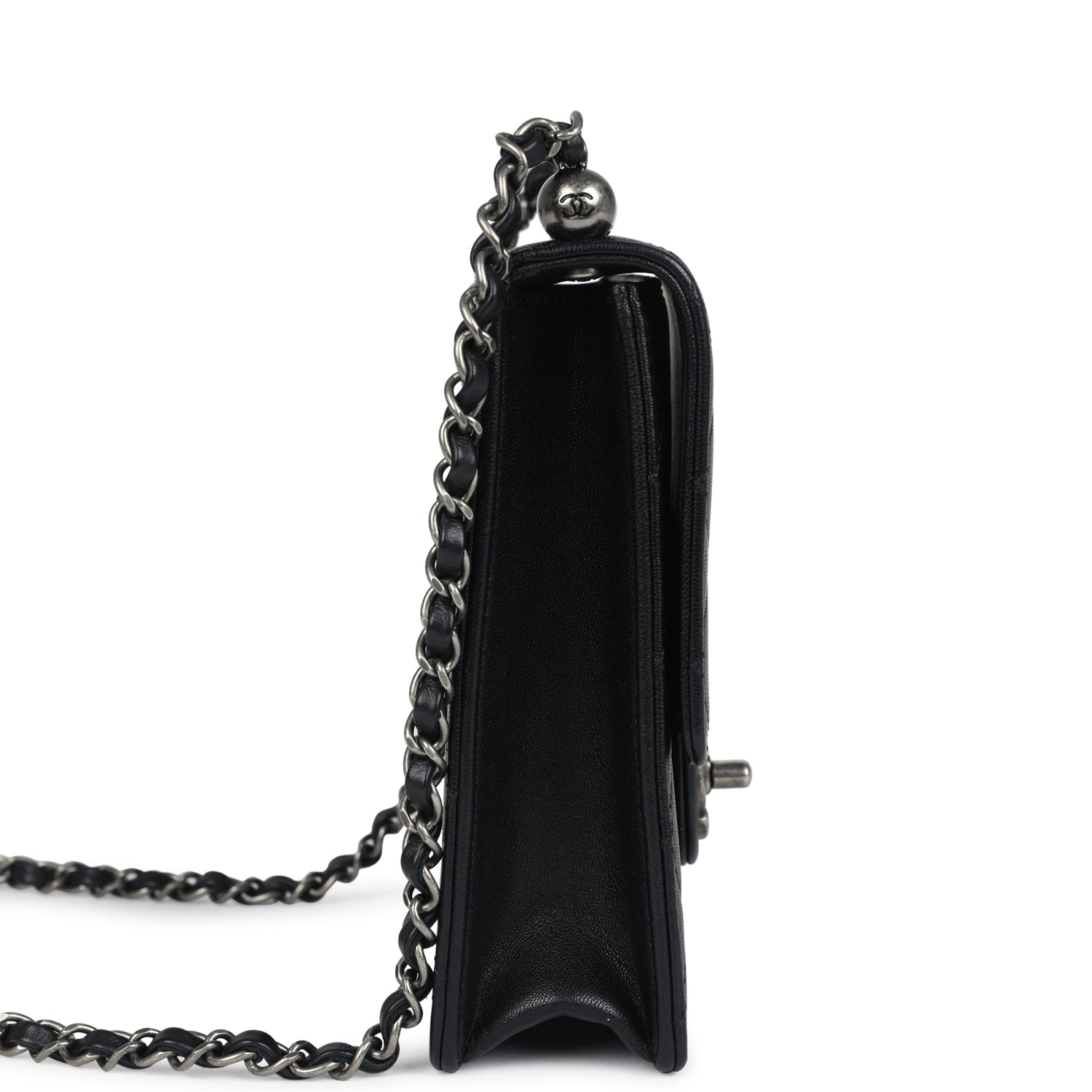 New Chanel Chic Pearls Flap Bag Black Calfskin Aged Ruthenium Hardware