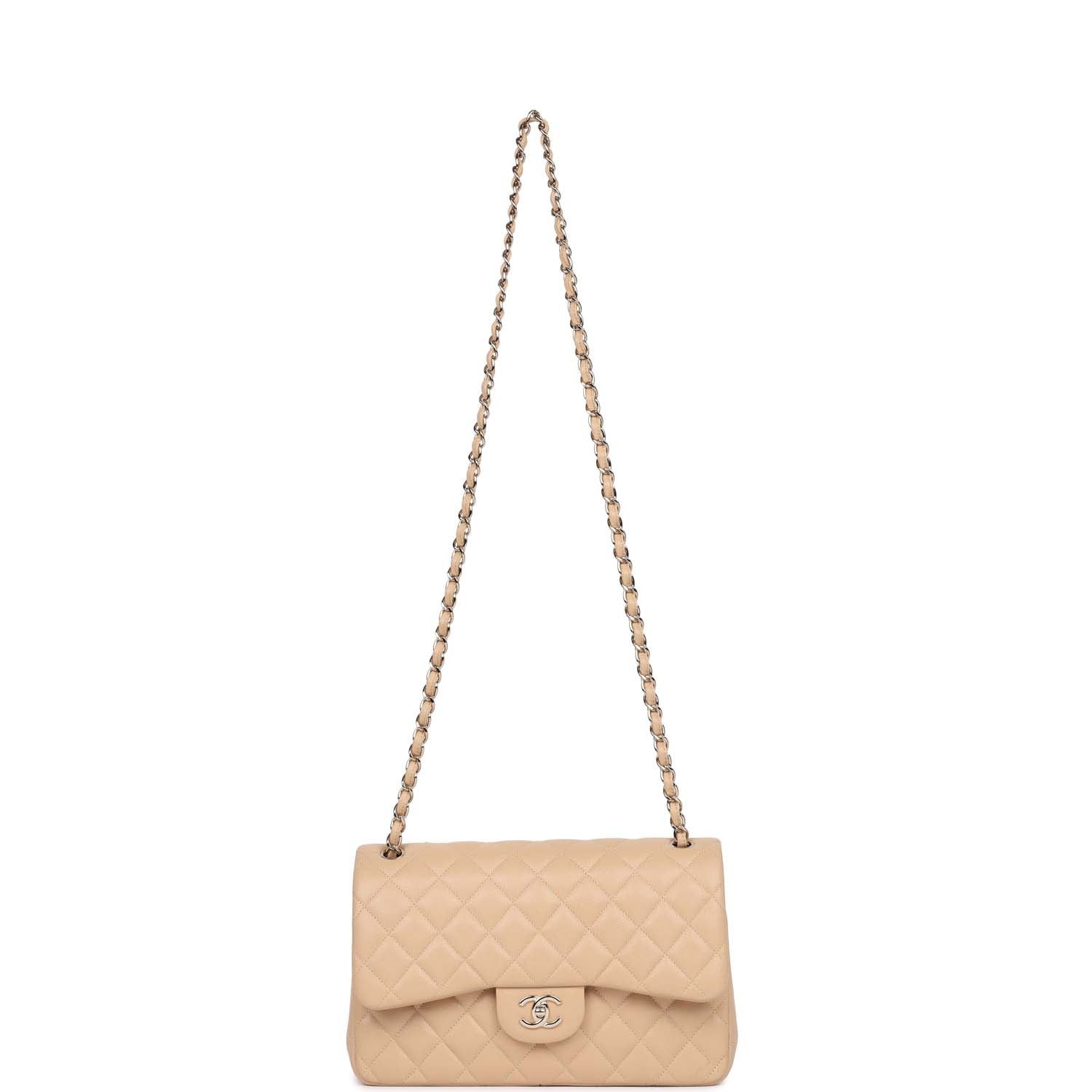 New Chanel Jumbo Classic Double Flap Bag Light Beige Caviar Gold Hardware