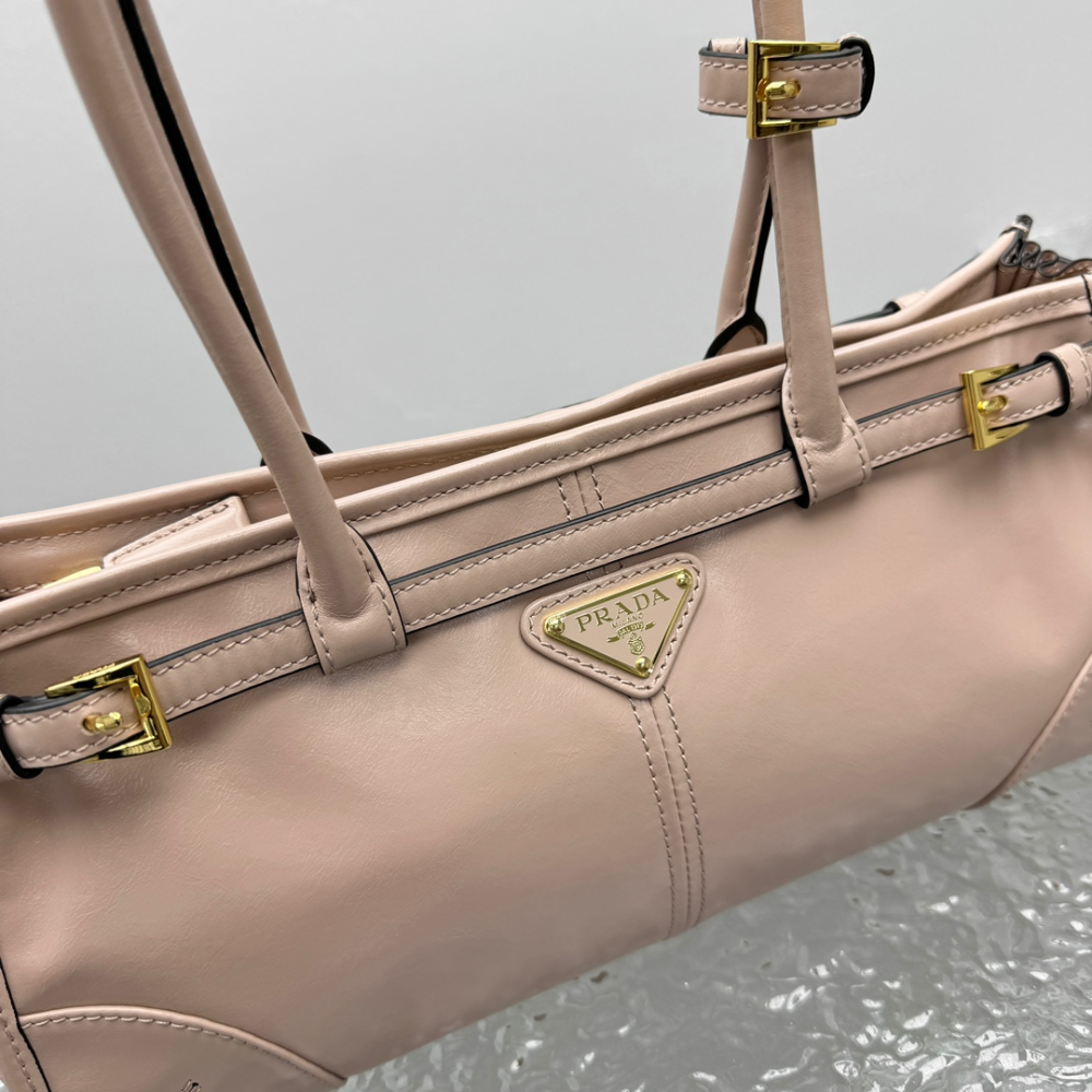 Prada Large Raffia Striped Tote Bag (Tan/Pink)