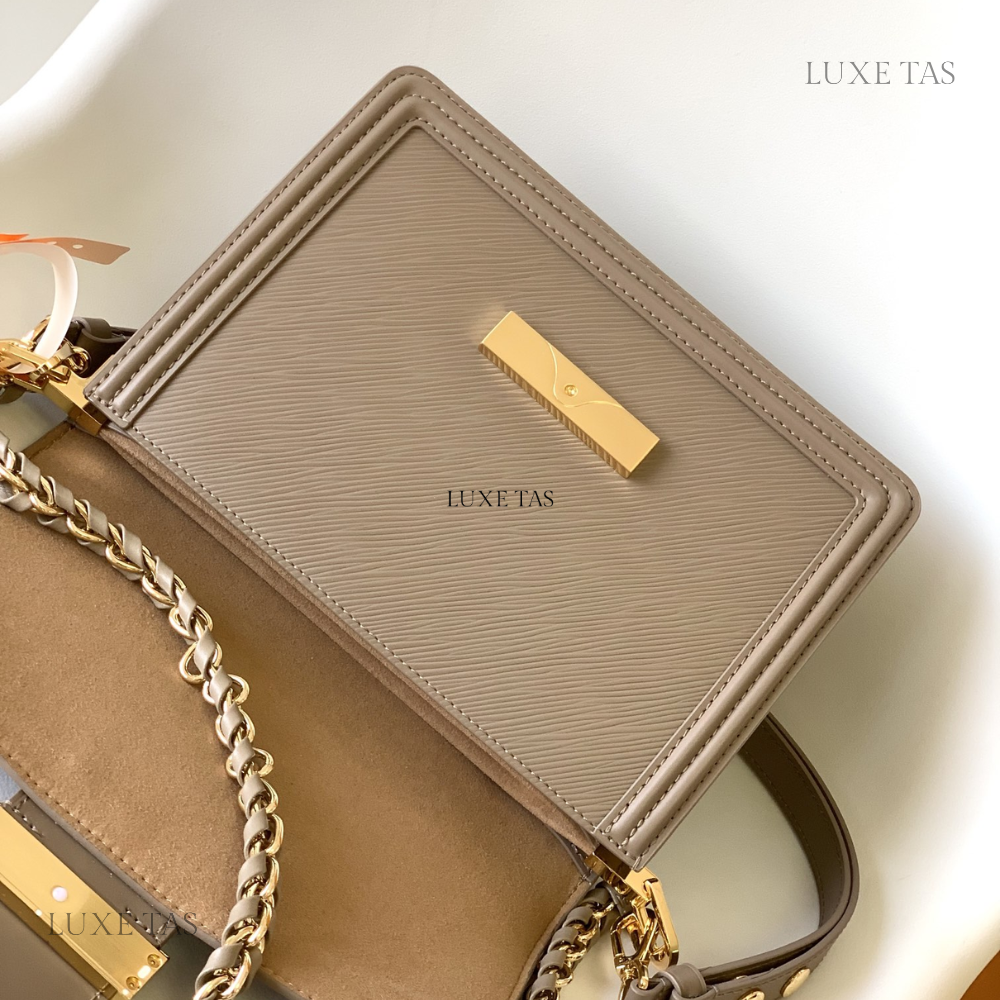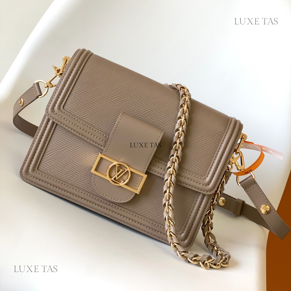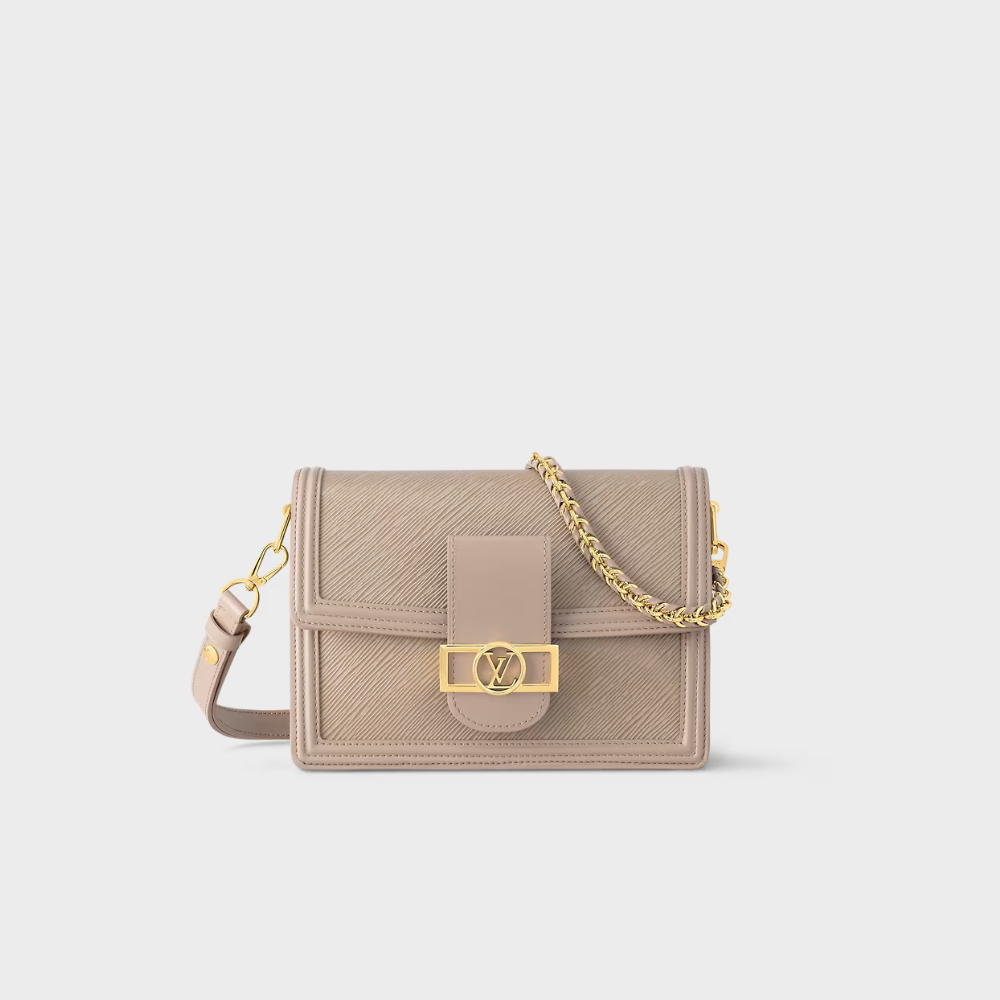 Crafted from Epi leather with gold-color hardware accents, the Dauphine MM handbag boasts a signature magnetic lock featuring the iconic LV Circle in a rectangle design. Its embossed pattern on the Epi leather is elegantly contrasted by the smooth cowhide trim. Offering versatility, the bag comes with a detachable and adjustable leather smart strap, along with a braided chain, providing various carry options to suit different styles and occasions.