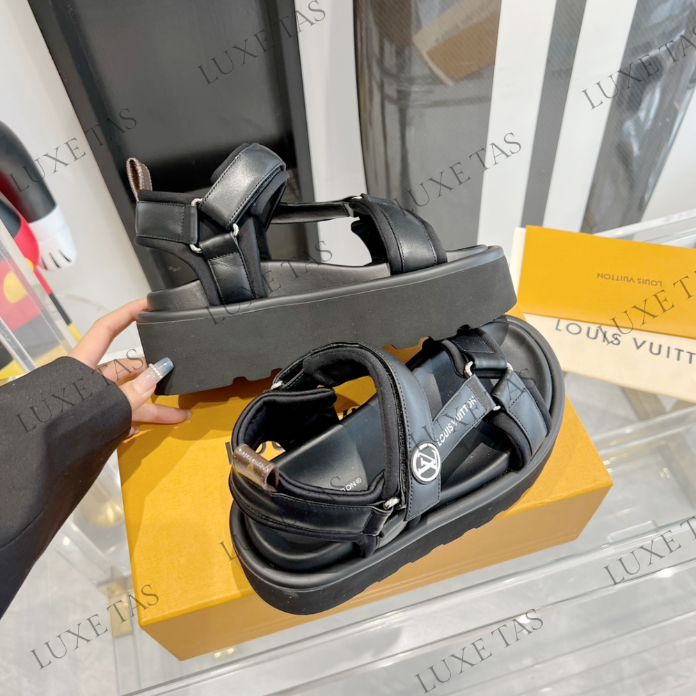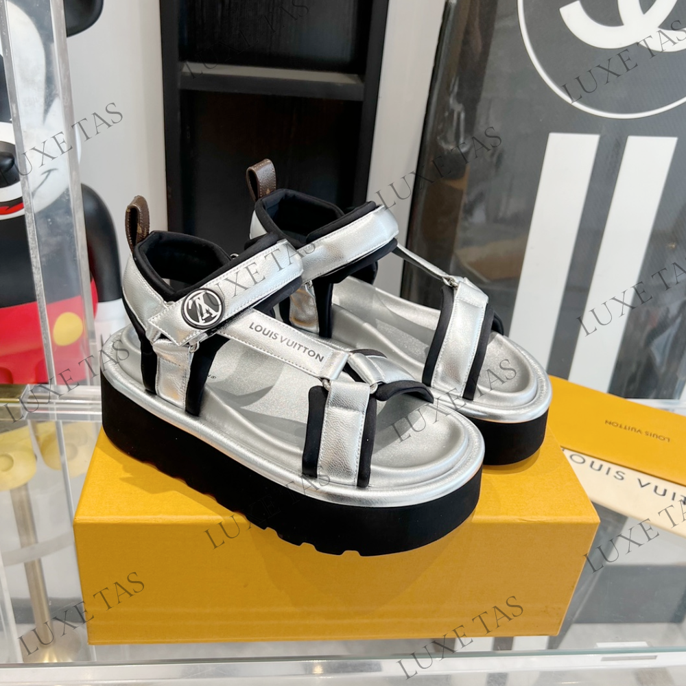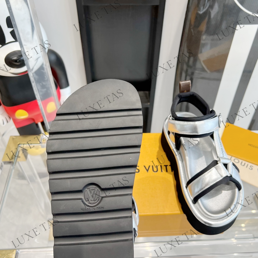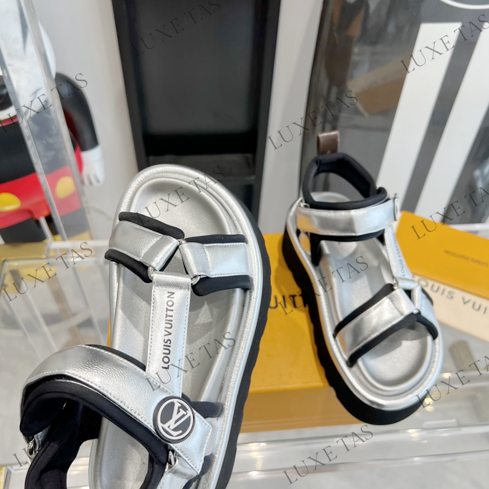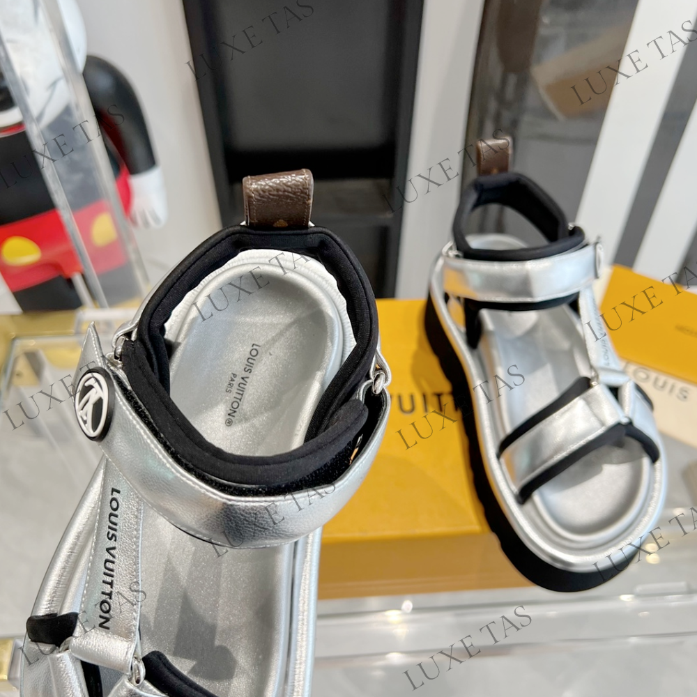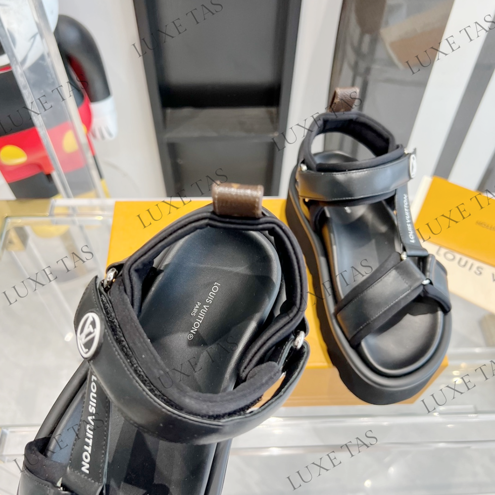 Discover the Pool Pillow flatform comfort sandal, crafted from luxurious lambskin for unrivaled softness. This trendy and sporty model showcases an adjustable velcro strap adorned with the iconic L*V Circle signature. The standout feature is the 4-cm flatform sole, crafted from lightweight micro material, ensuring effortless comfort. With an anatomic footbed, this sandal offers the perfect blend of style and support.