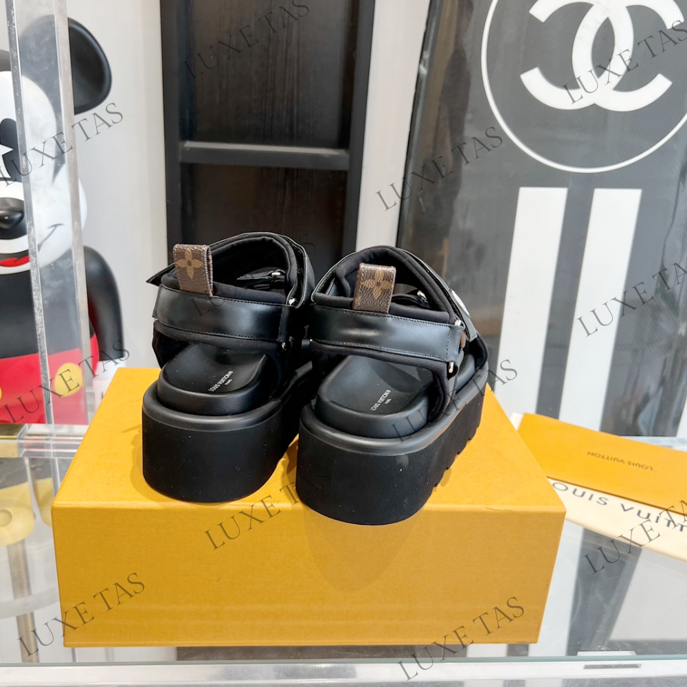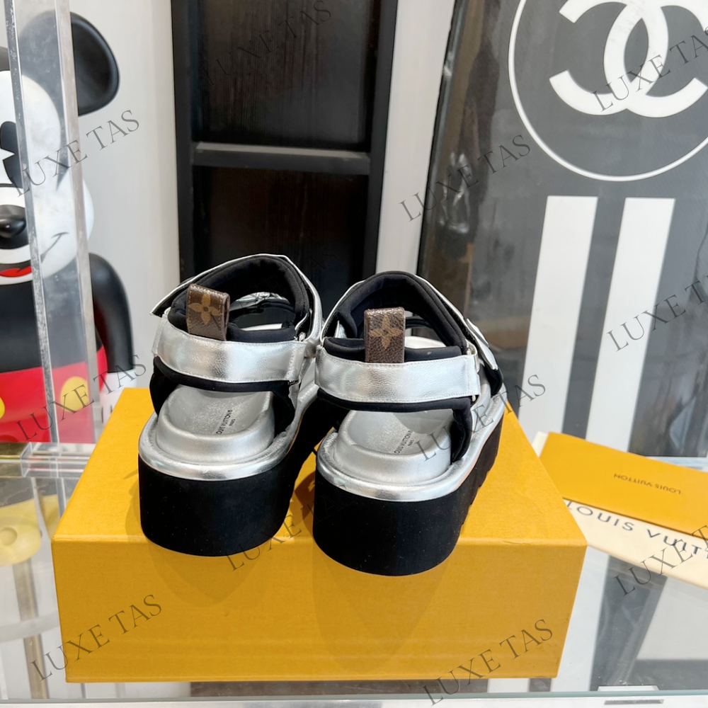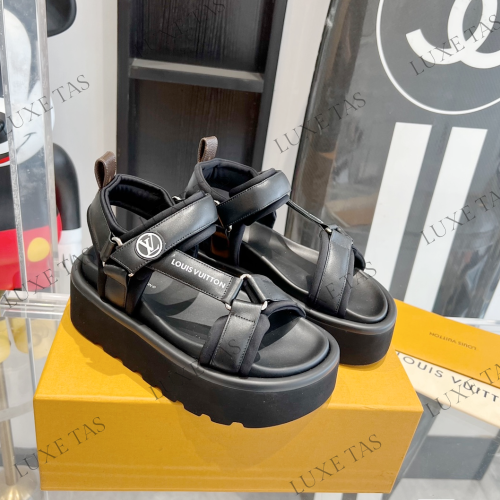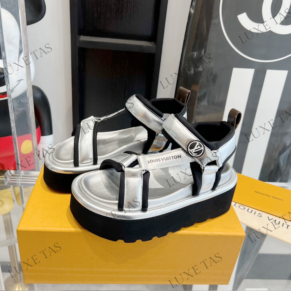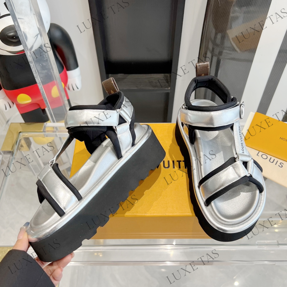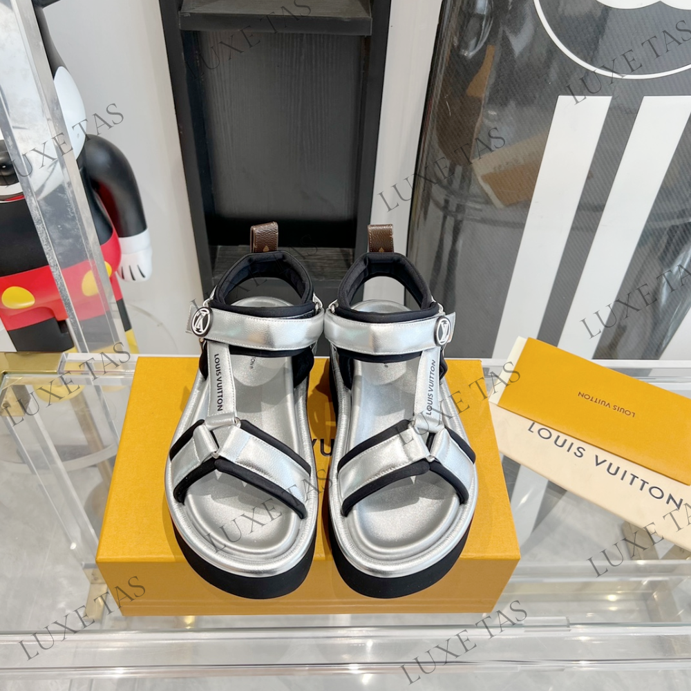 Discover the Pool Pillow flatform comfort sandal, crafted from luxurious lambskin for unrivaled softness. This trendy and sporty model showcases an adjustable velcro strap adorned with the iconic L*V Circle signature. The standout feature is the 4-cm flatform sole, crafted from lightweight micro material, ensuring effortless comfort. With an anatomic footbed, this sandal offers the perfect blend of style and support.