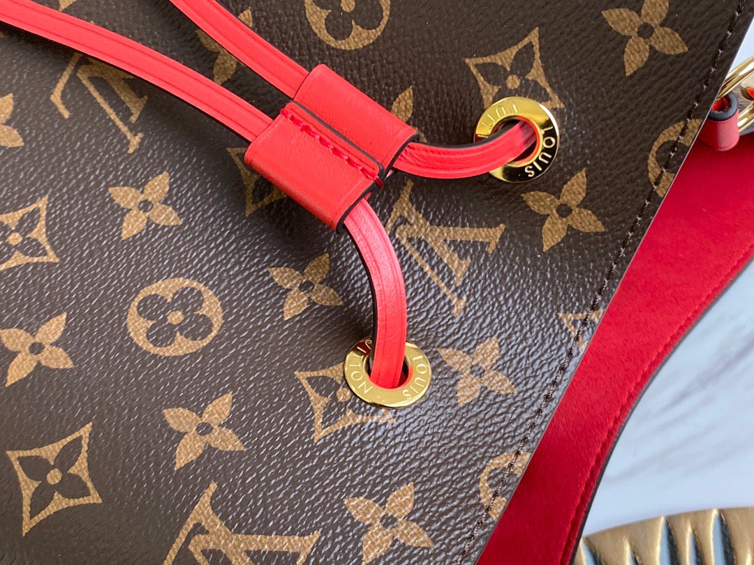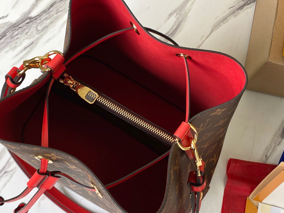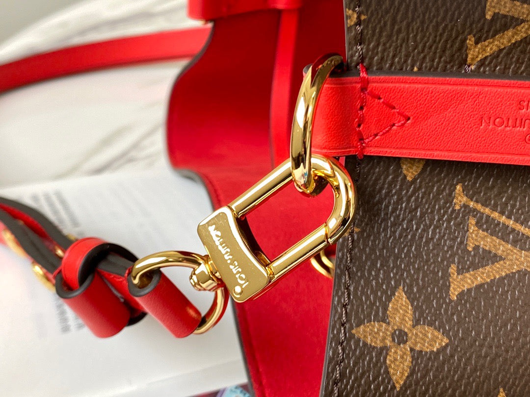 The NéoNoé bucket bag is a classic and iconic design from the House of L*V. The original design was intended for transporting Champagne bottles with elegance, and this modern version in Monogram canvas boasts a sophisticated shape with vibrant leather trim and a bonded lining to match. The versatile and adjustable strap allows for shoulder or cross-body wear, making it a perfect choice for any occasion..