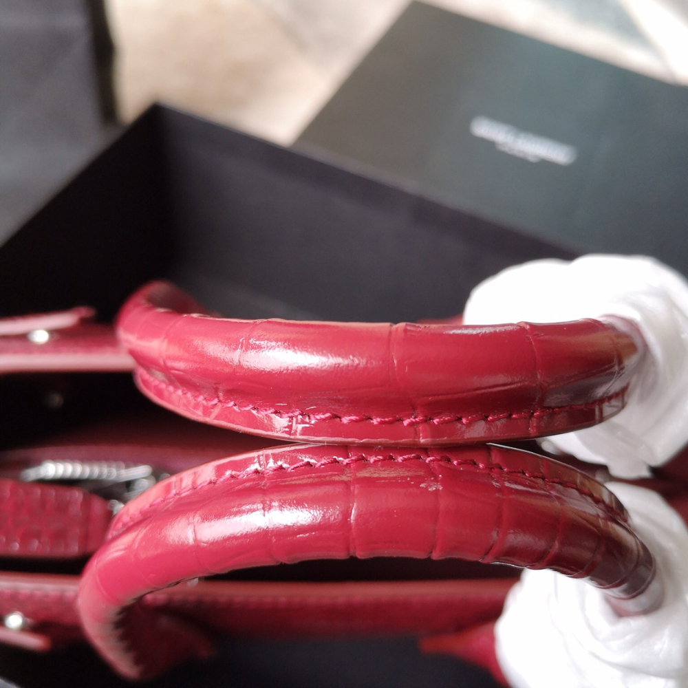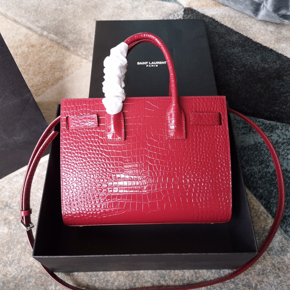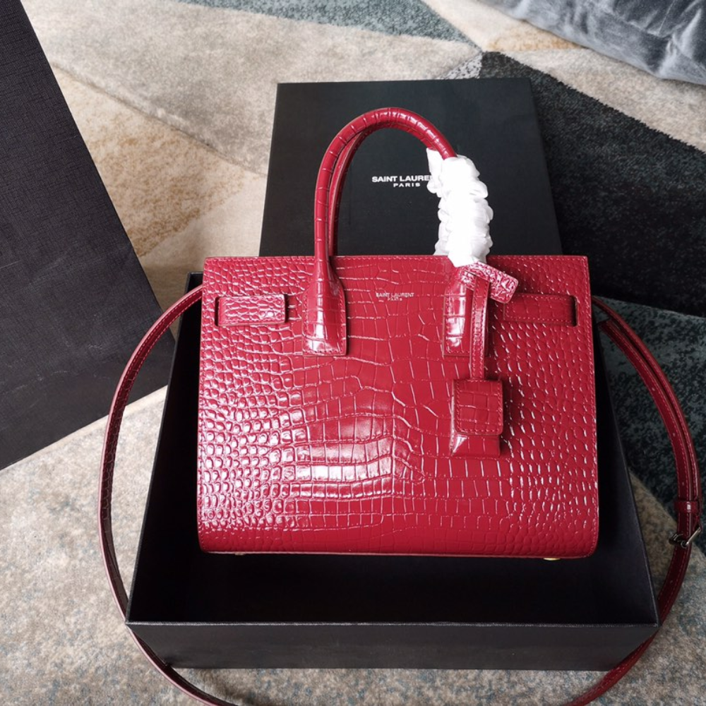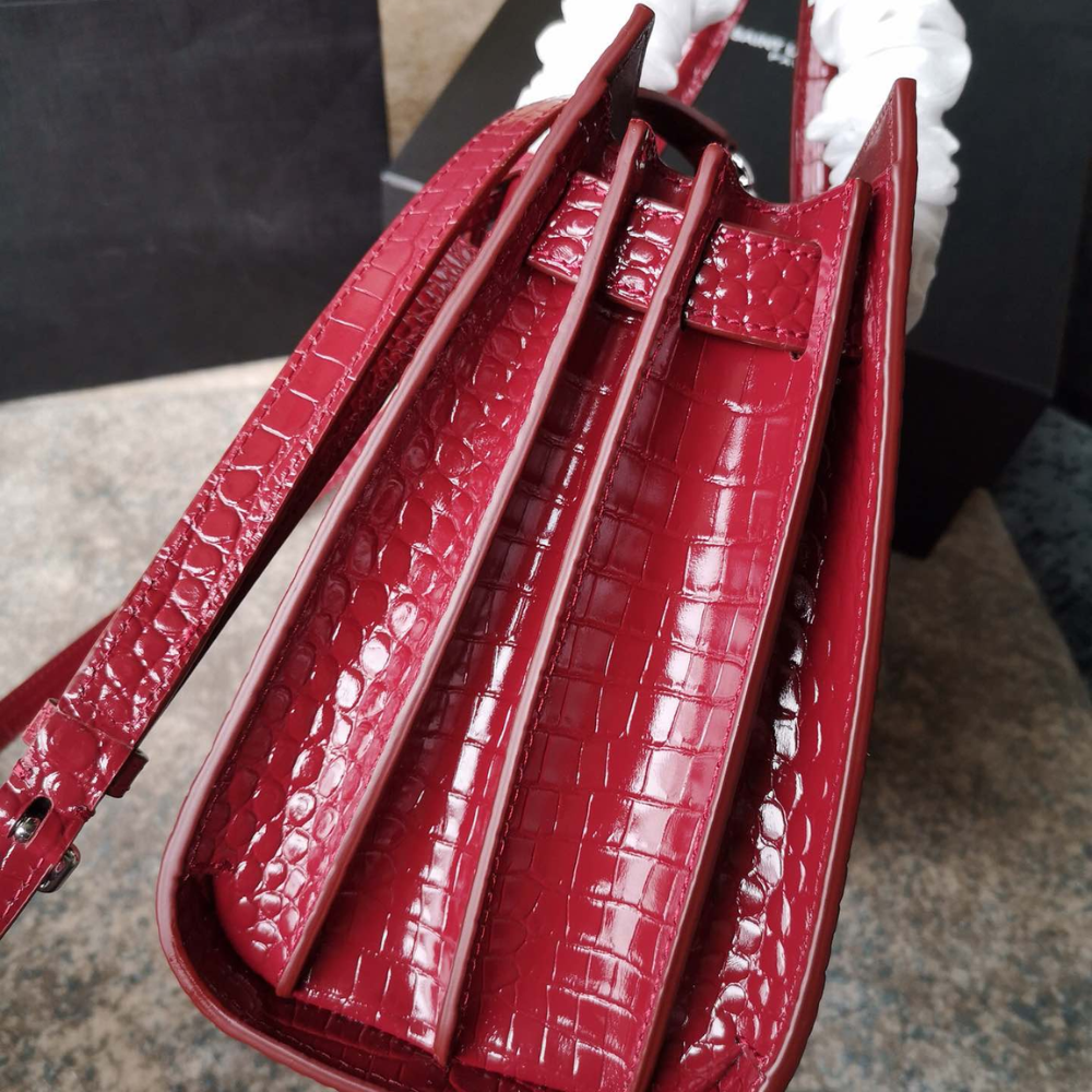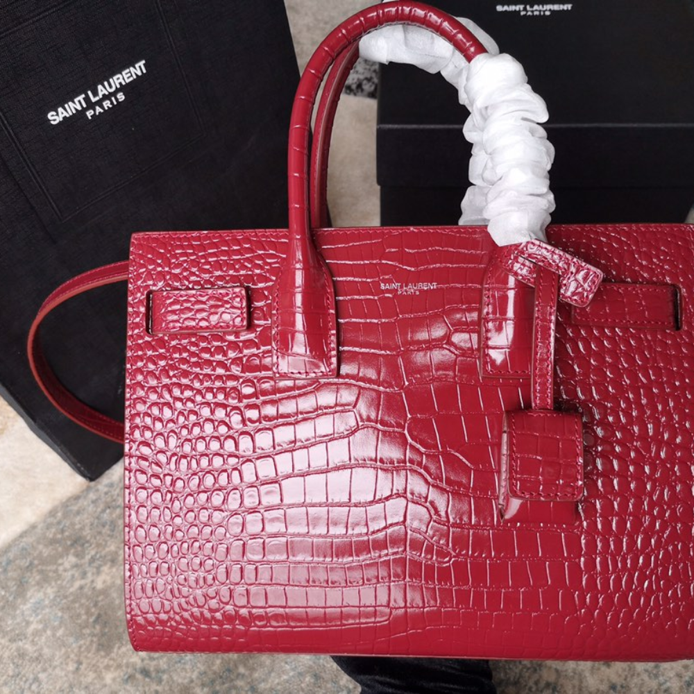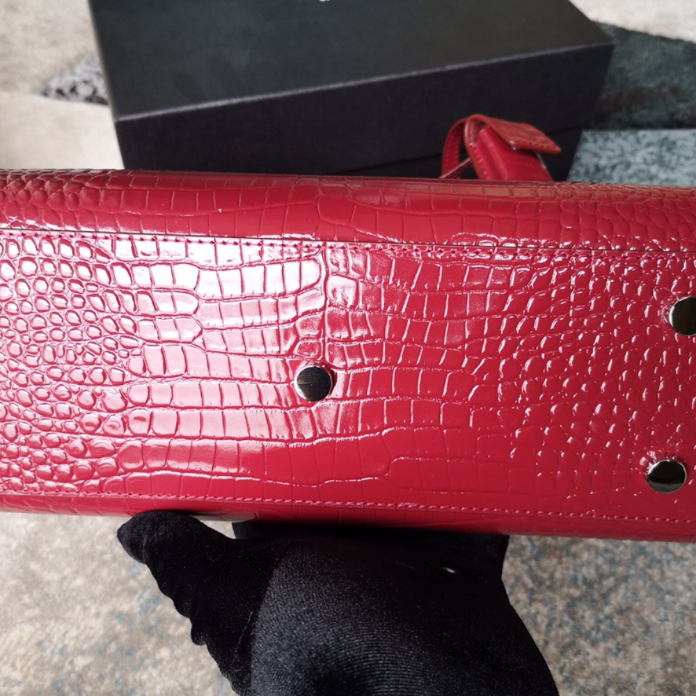 Sac De Jour B.a.b.y In Embossed Crocodile Leather Red Leather Handbag for Women
