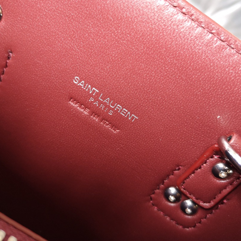 Regular price $2,750.00 Sale price $410.00 Save $2,340.00Brand - Saint LaurentModel - Color - RedMaterial - LeatherInclusions - Dimensions - W 24 cm x H 17 cm x D 1 cmSerial number - HPP412674.4.0316Country of origin - ItalyCondition - AB - good condition.Outside condition - stainInside condition - goodHandle condition - goodCorner condition - goodMetal fittings condition - discolorationSize - One Size