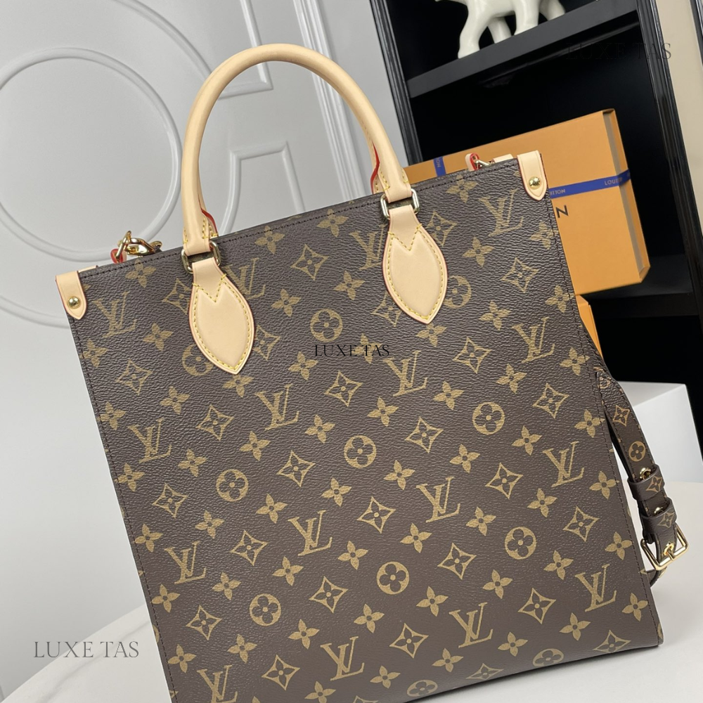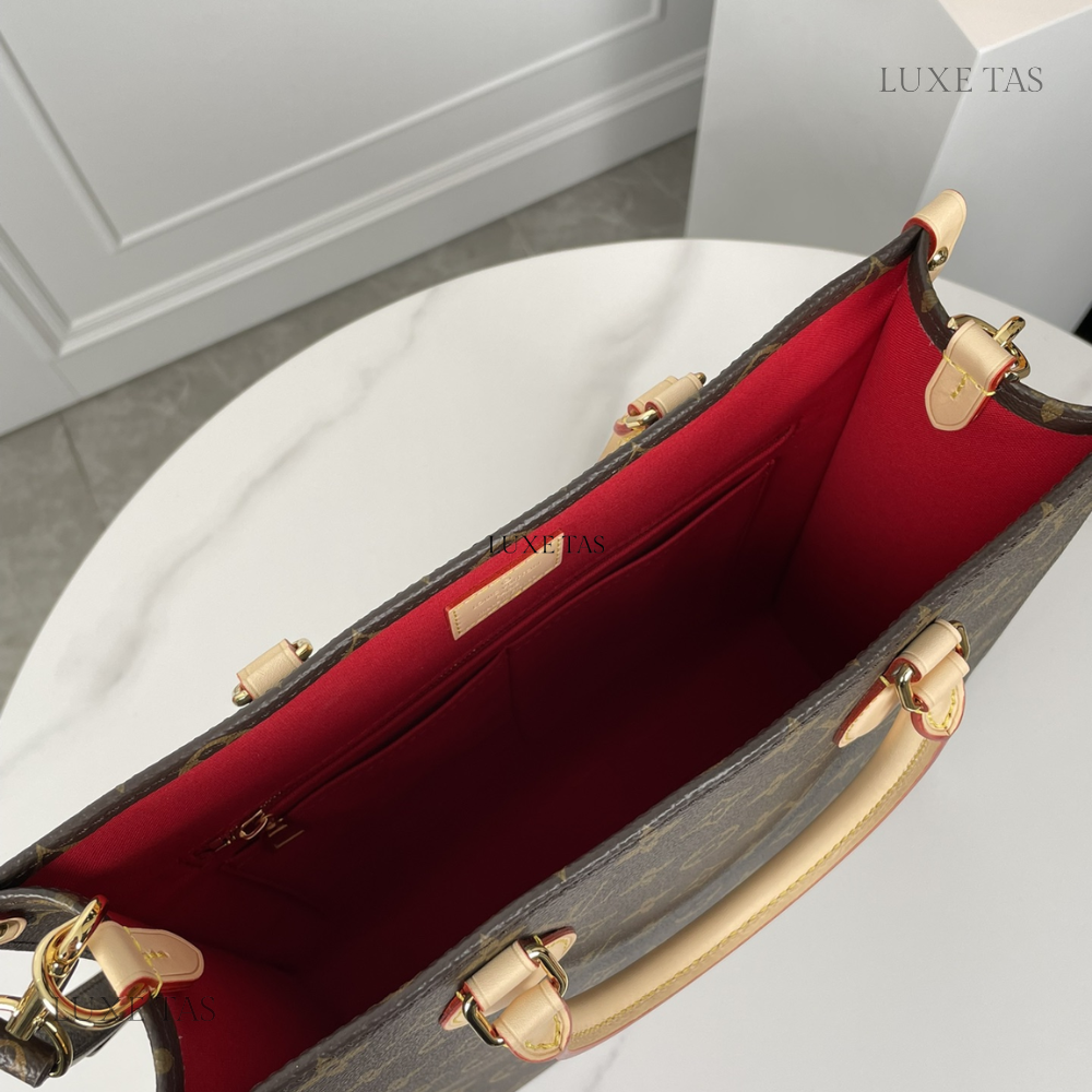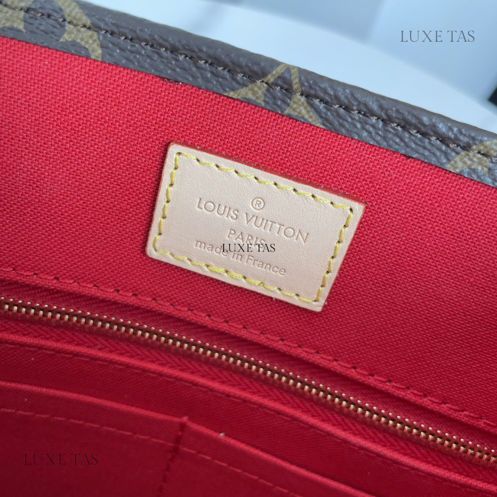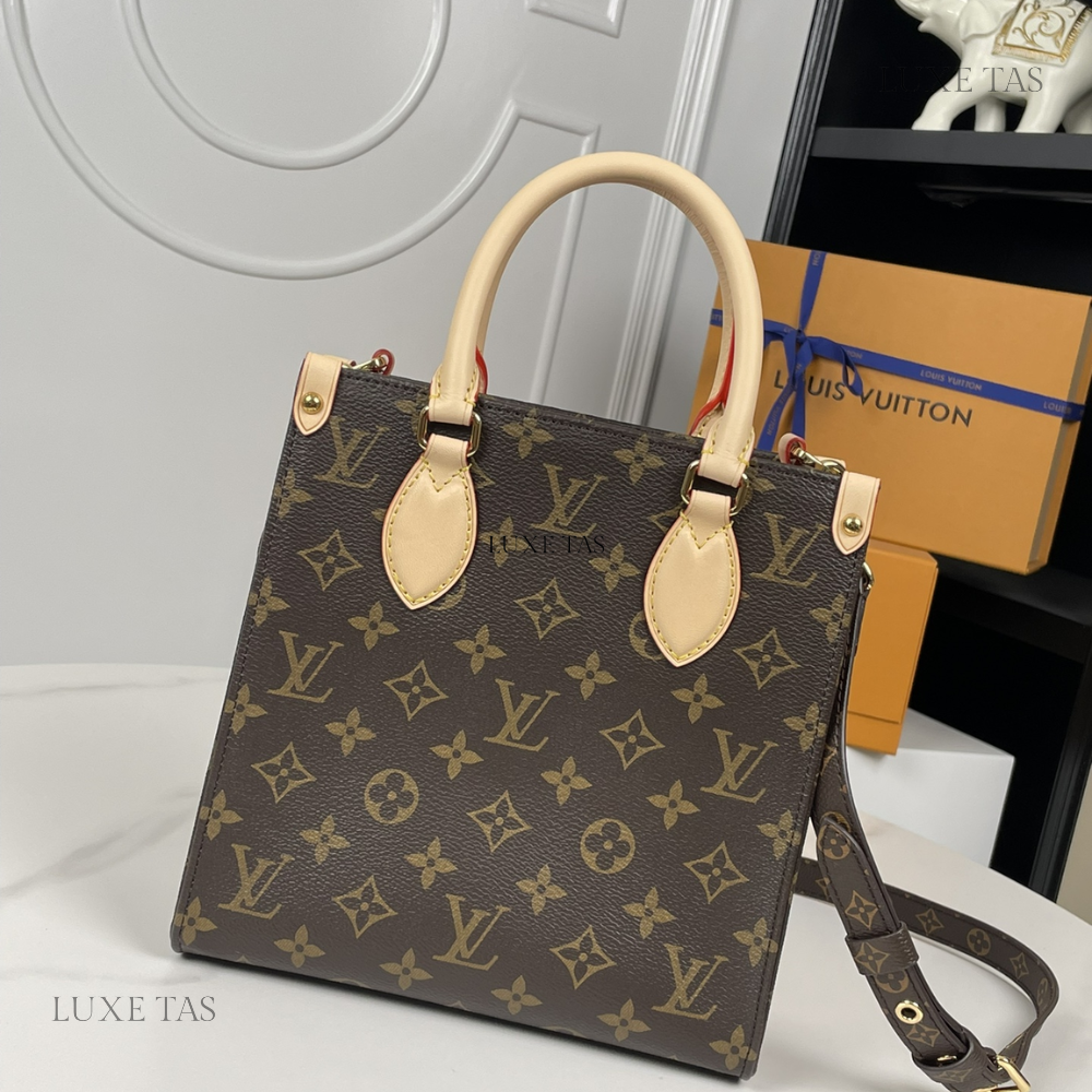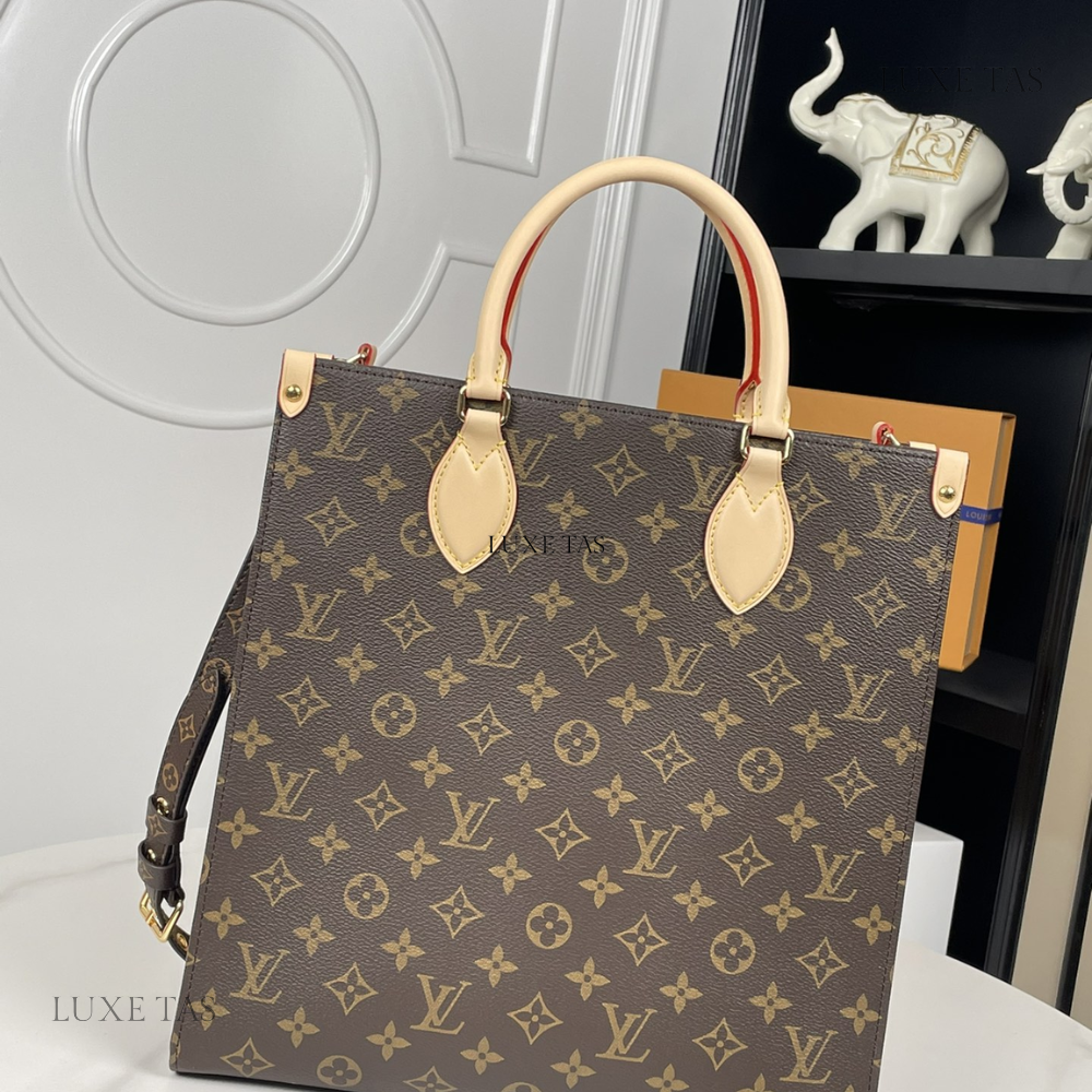 L*V brings a contemporary twist to its timeless Sac Plat with the Sac Plat PM handbag, tailored to suit modern lifestyles. Crafted from Monogram canvas with natural leather accents, its interior boasts a vibrant red lining and features a zipped pocket along with two flat pockets for organization. With convenient top handles and a detachable shoulder strap, it offers versatile carrying options—whether handheld, over the shoulder, or cross-body.