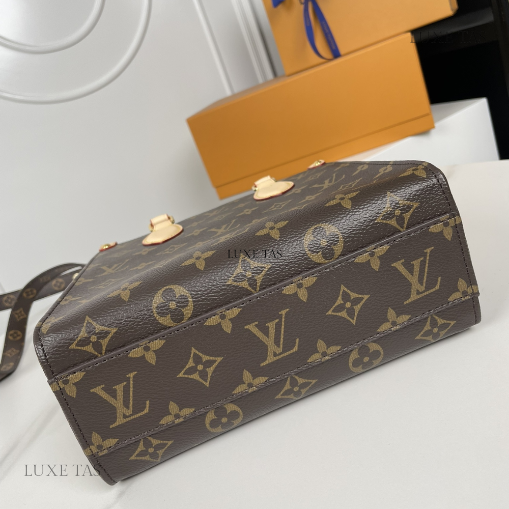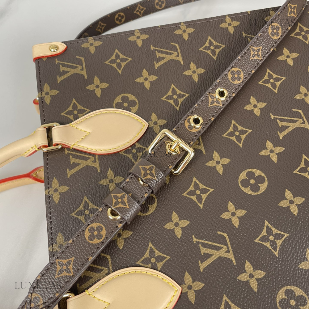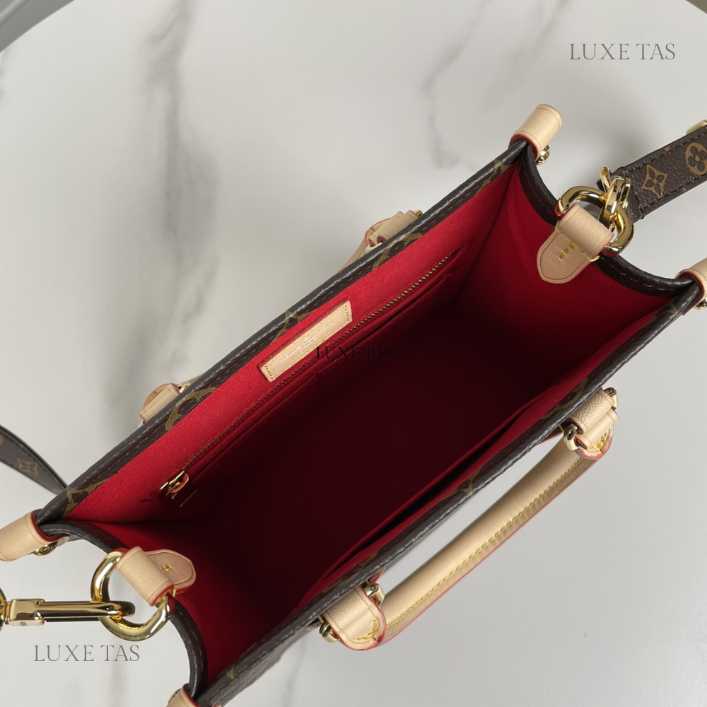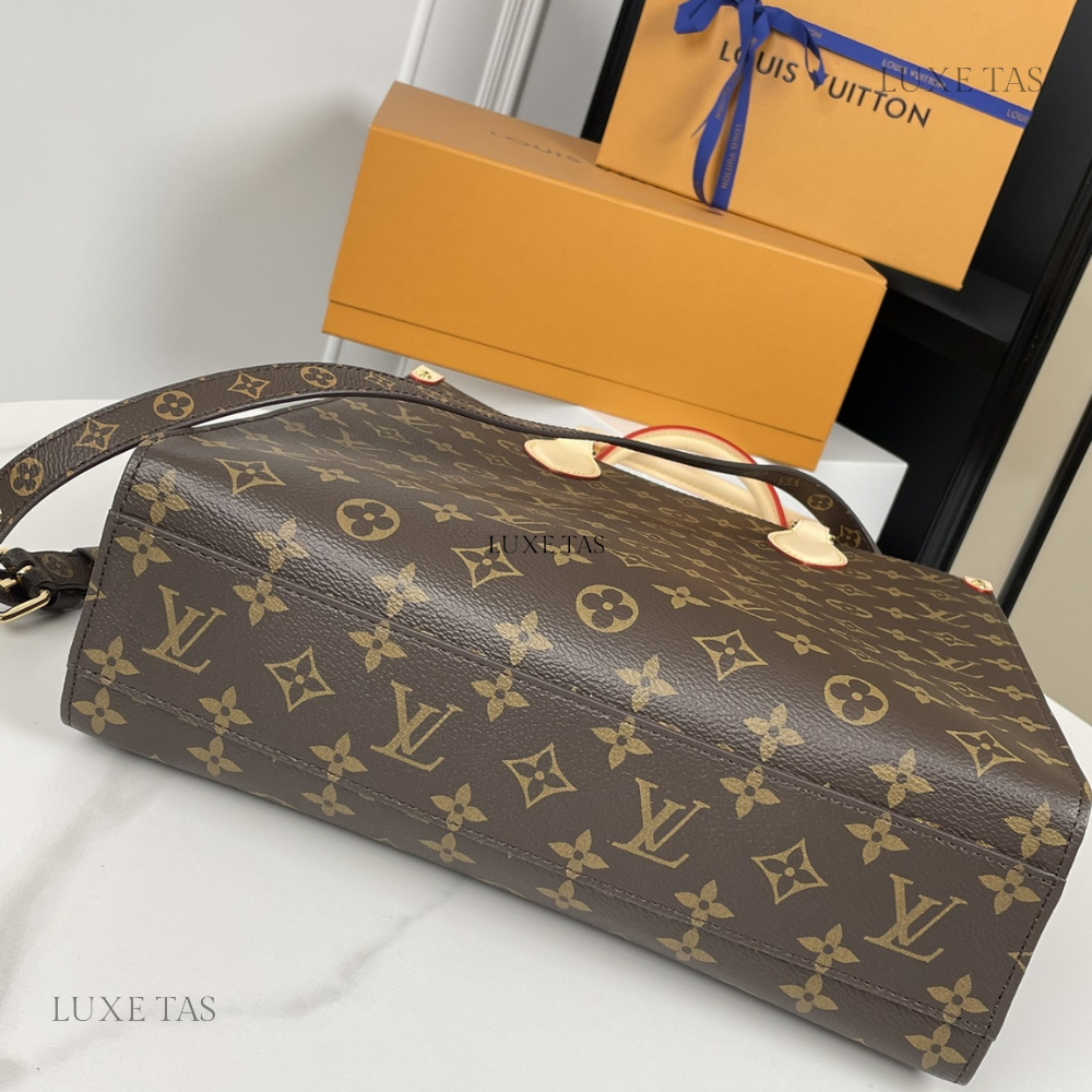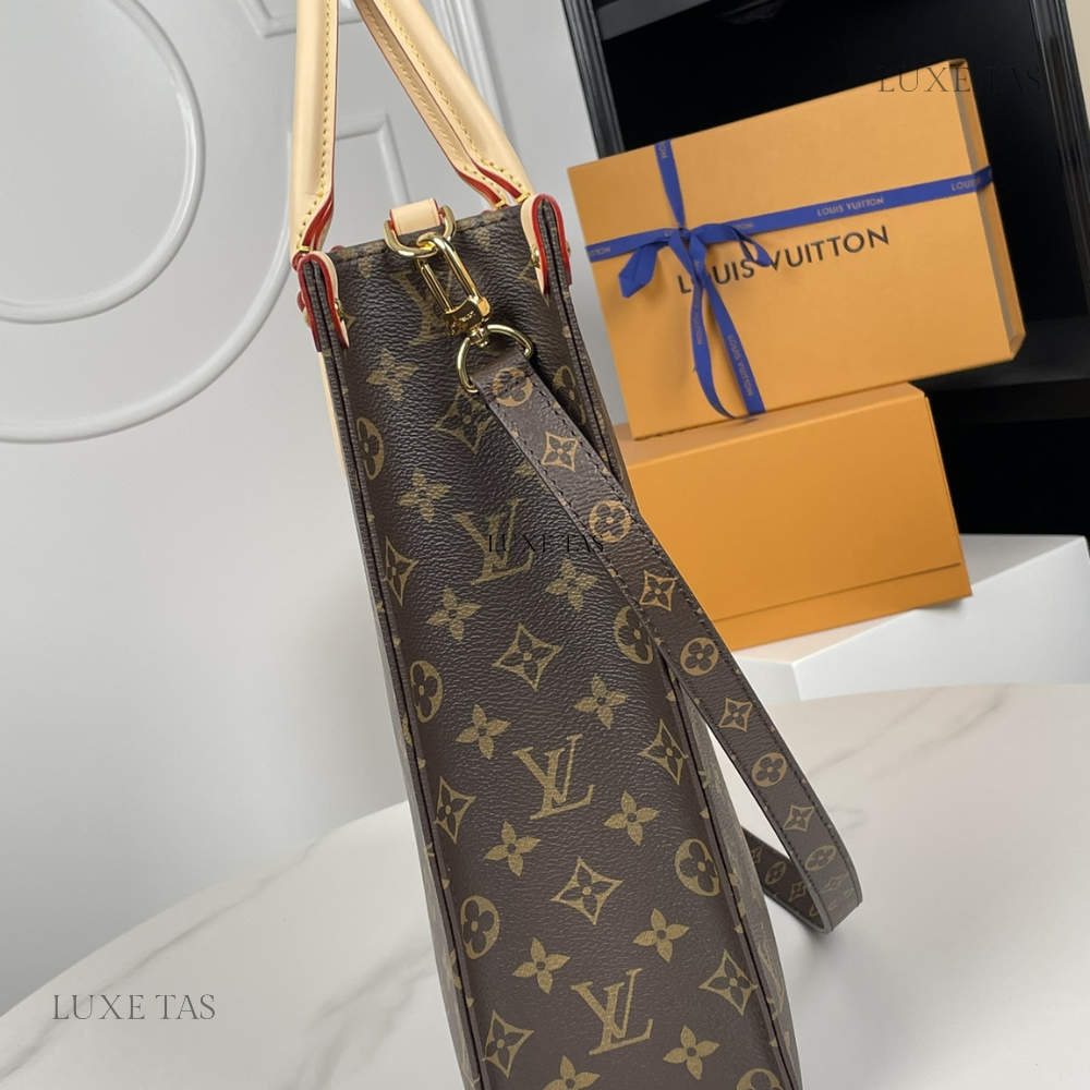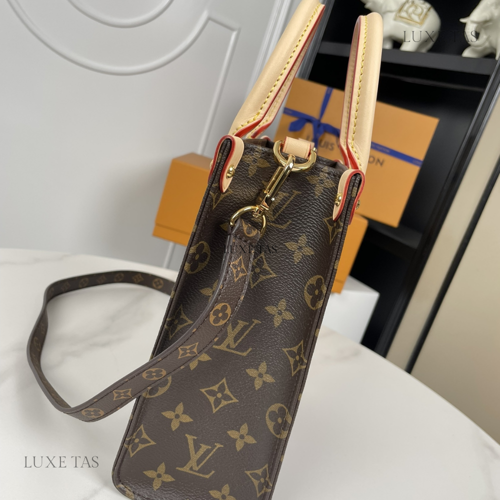 L*V brings a contemporary twist to its timeless Sac Plat with the Sac Plat PM handbag, tailored to suit modern lifestyles. Crafted from Monogram canvas with natural leather accents, its interior boasts a vibrant red lining and features a zipped pocket along with two flat pockets for organization. With convenient top handles and a detachable shoulder strap, it offers versatile carrying options—whether handheld, over the shoulder, or cross-body.