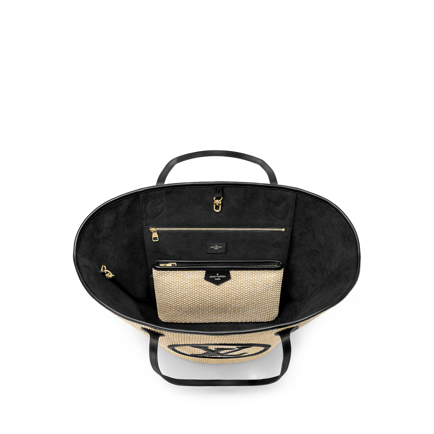 - Removable zipped raffia pouch