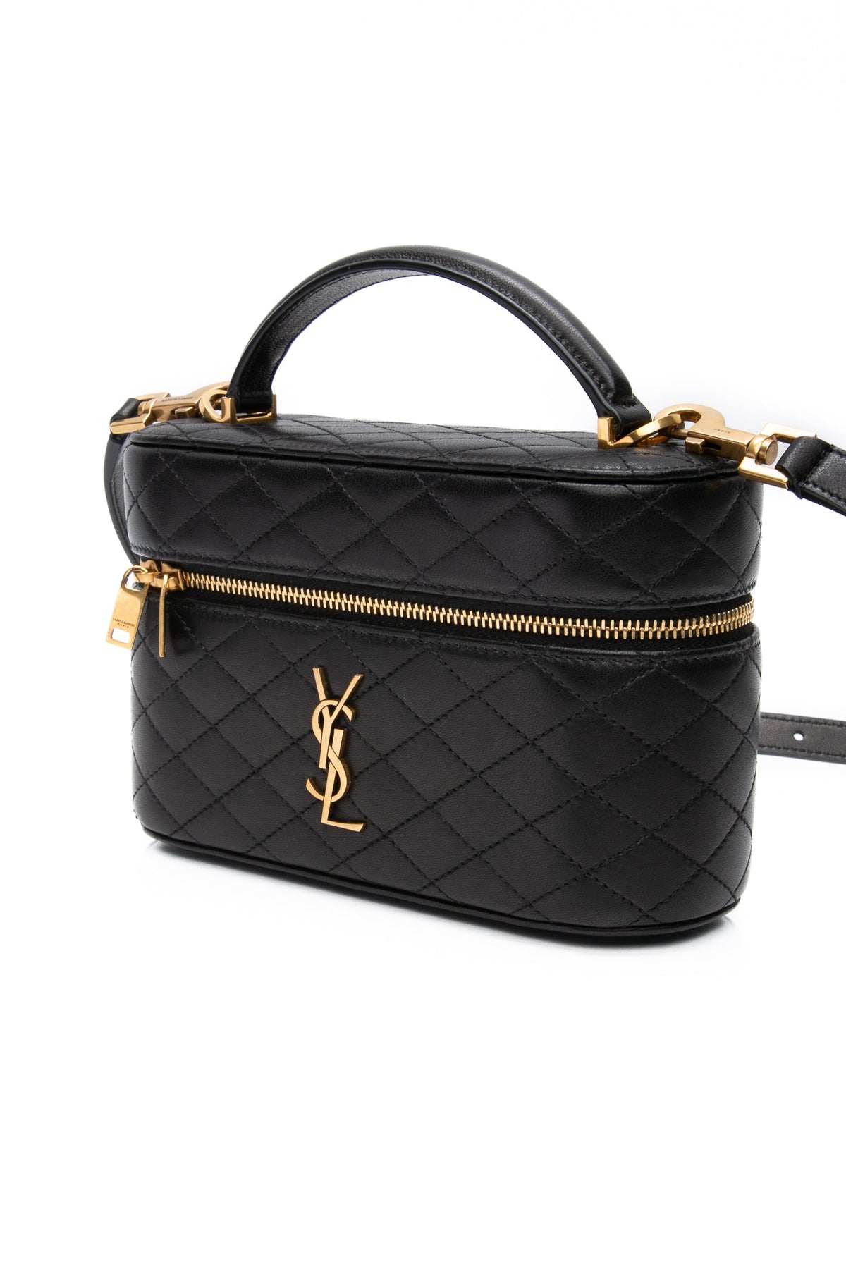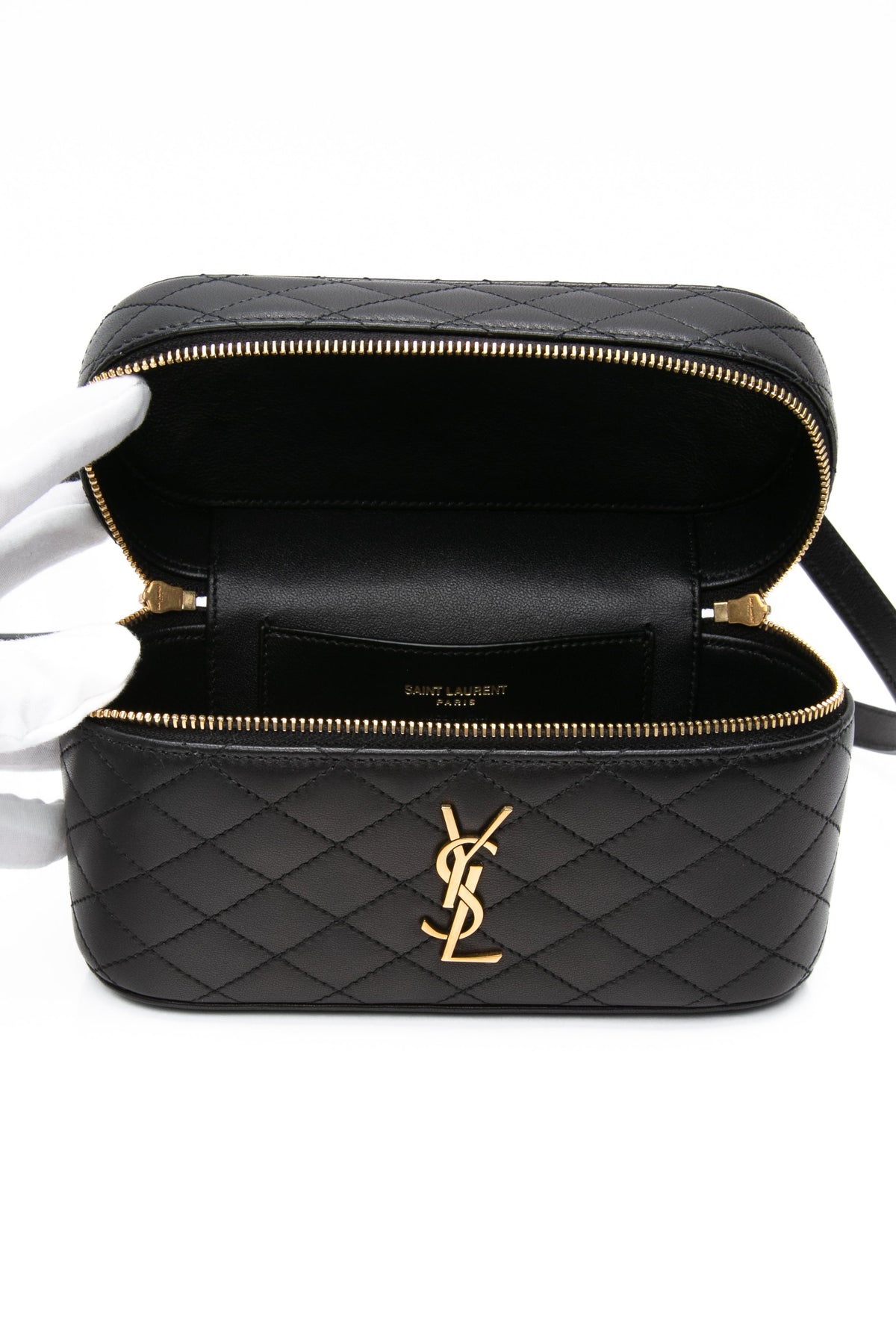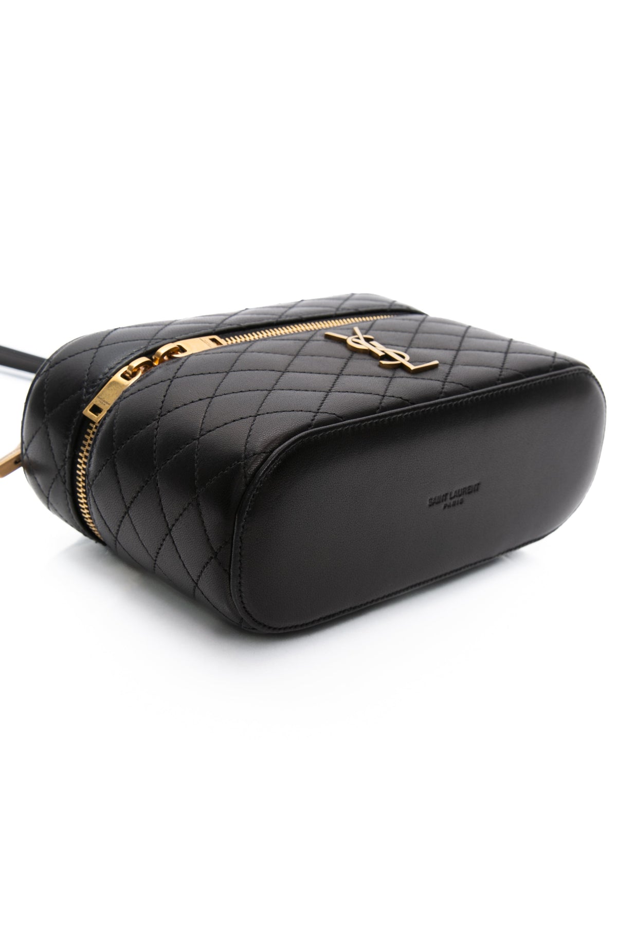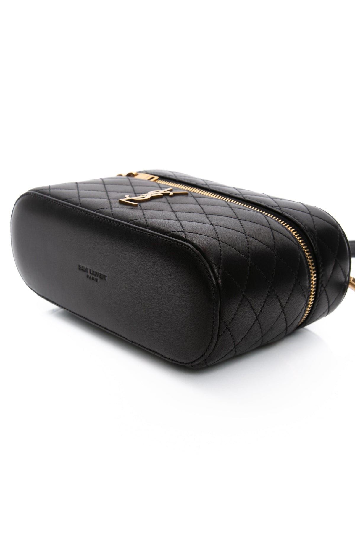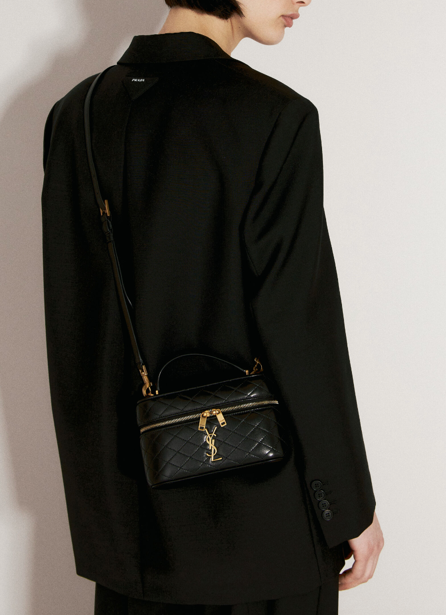 SAINT LAURENT Black Lambskin Quilted Gaby Mini Vanity Case Crossbody Bag