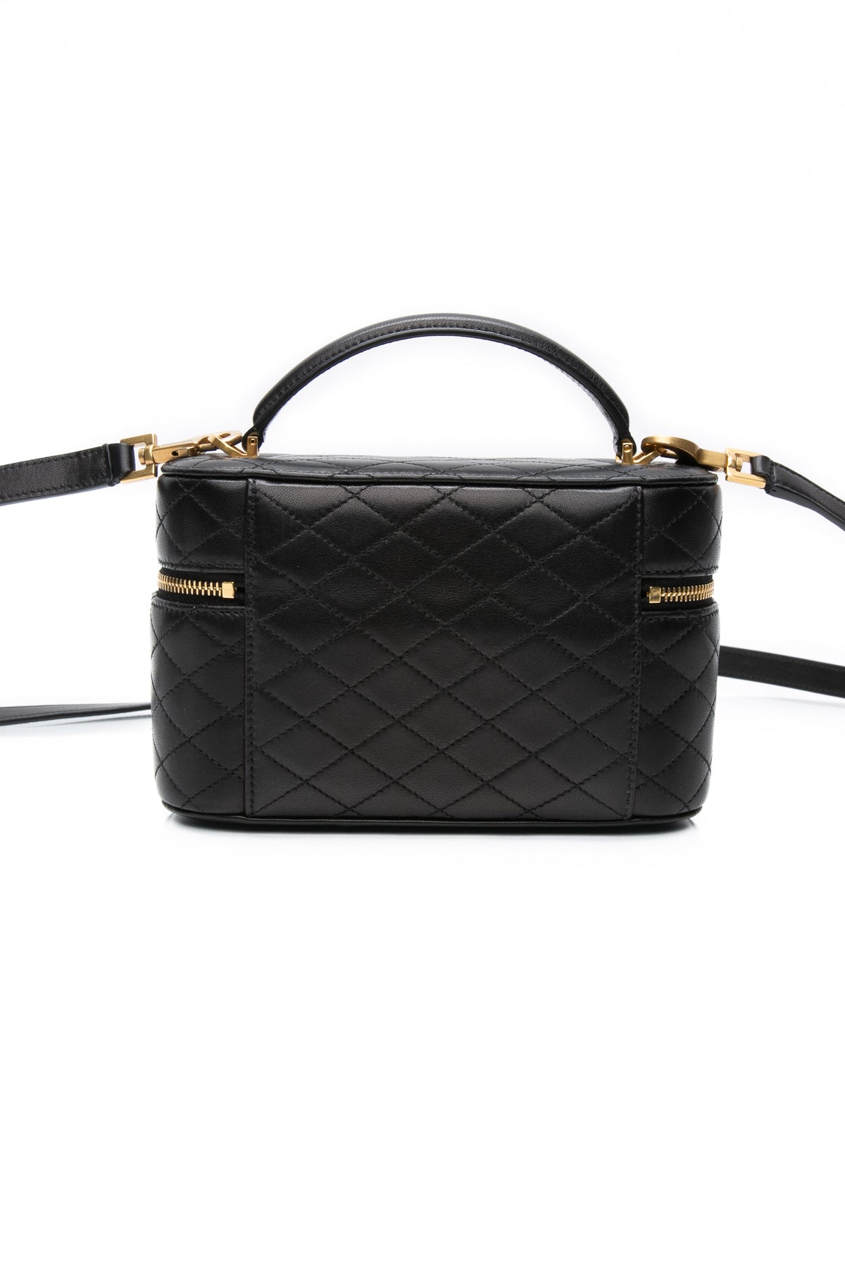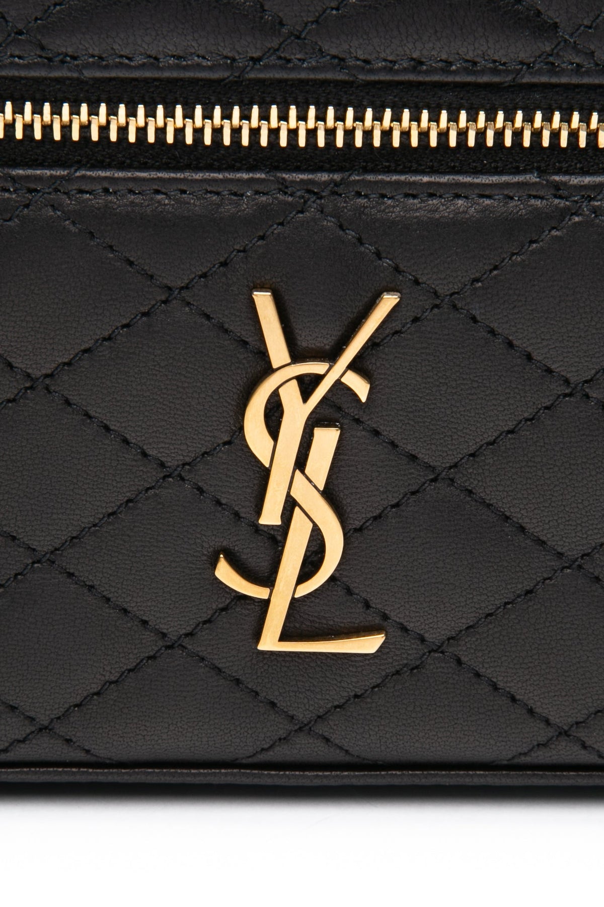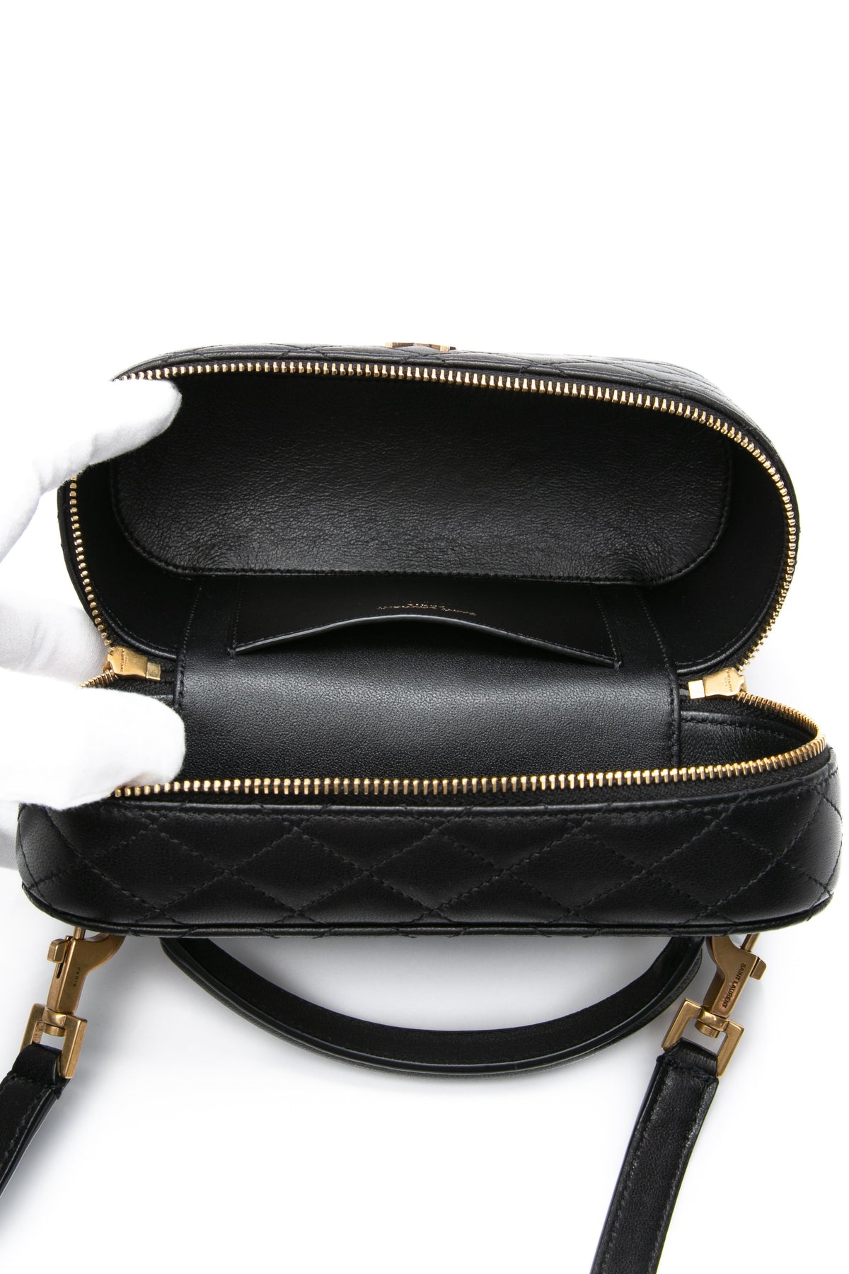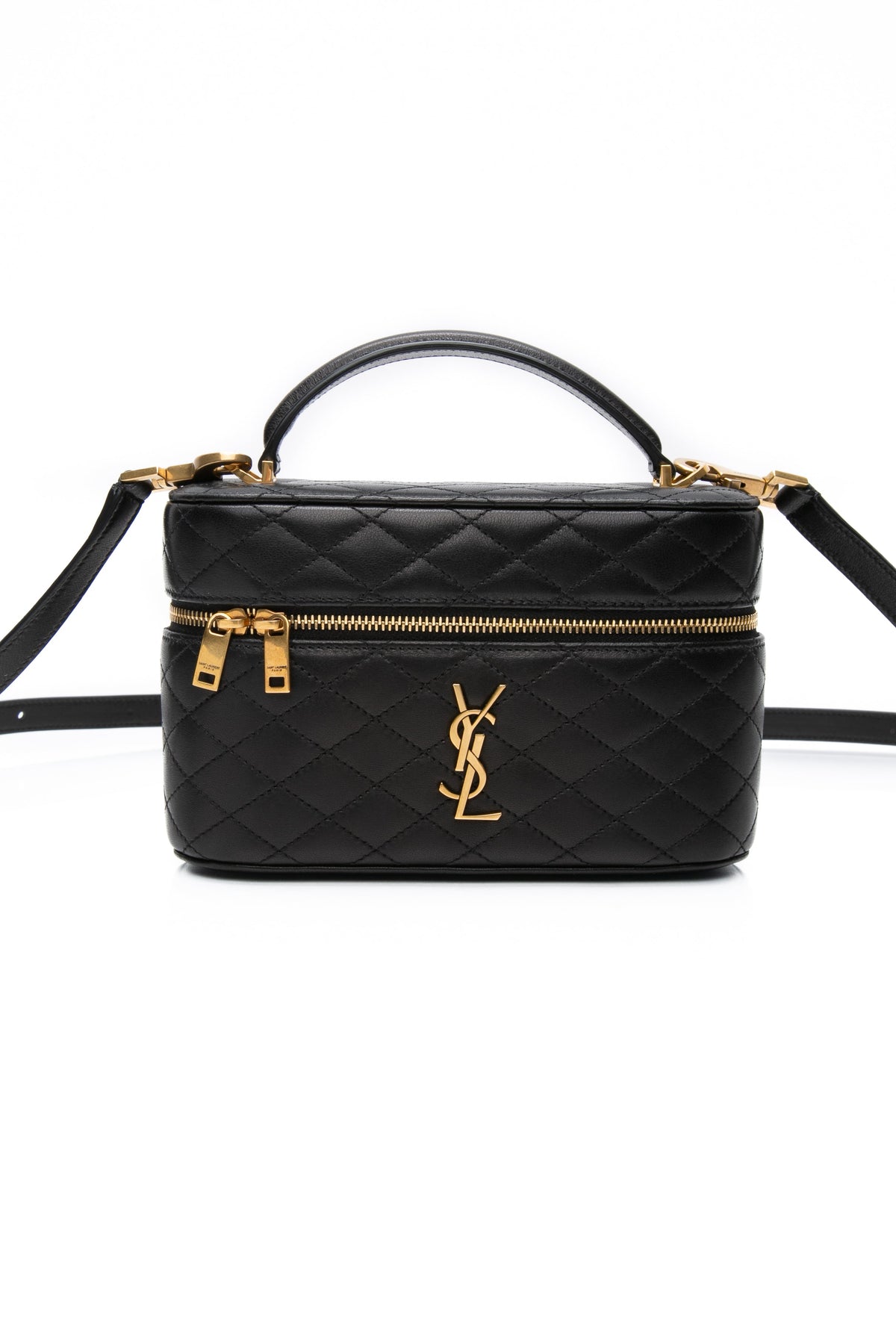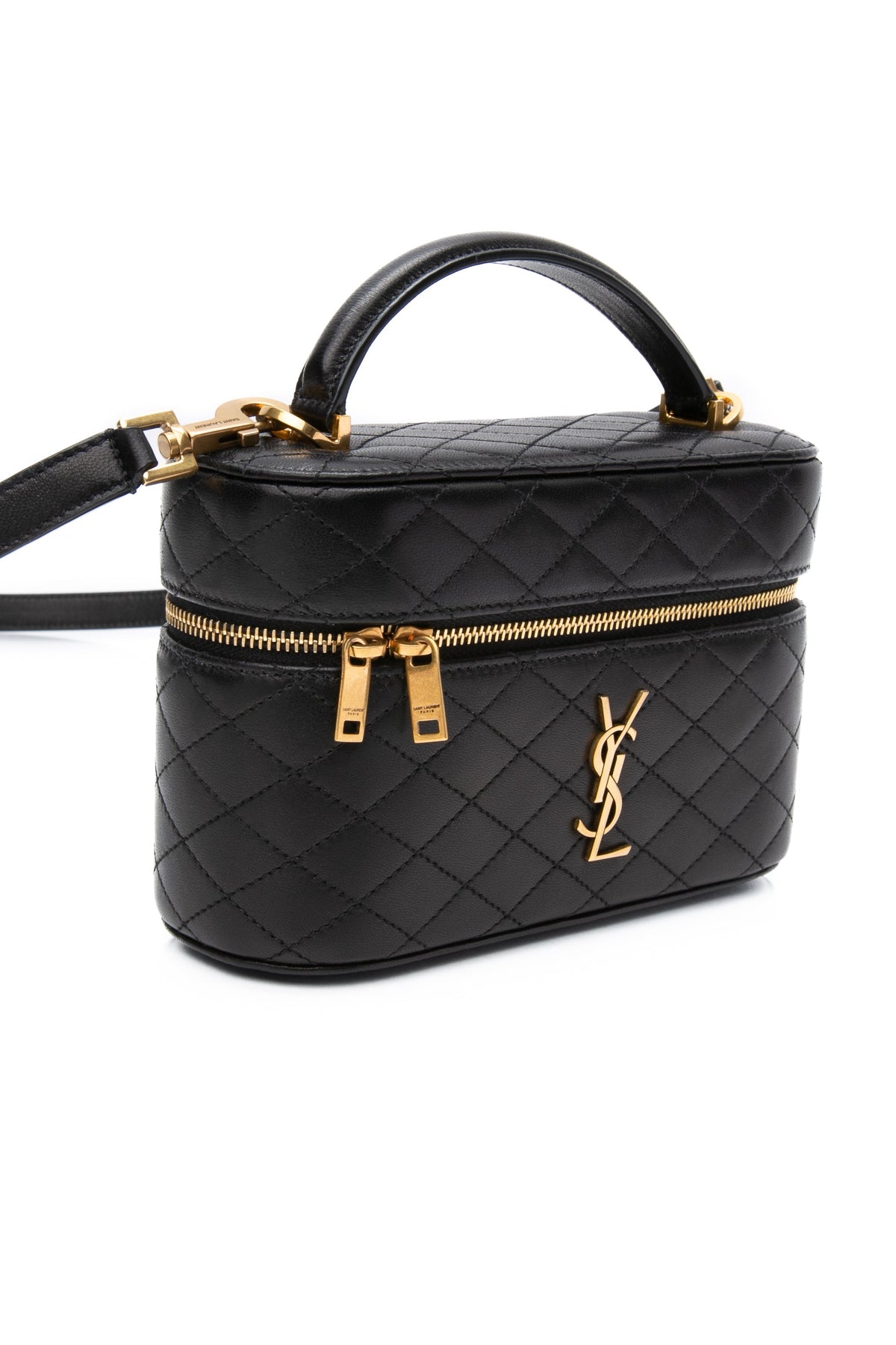 SAINT LAURENT Black Lambskin Quilted Gaby Mini Vanity Case Crossbody Bag