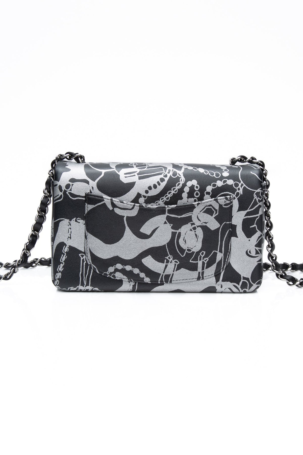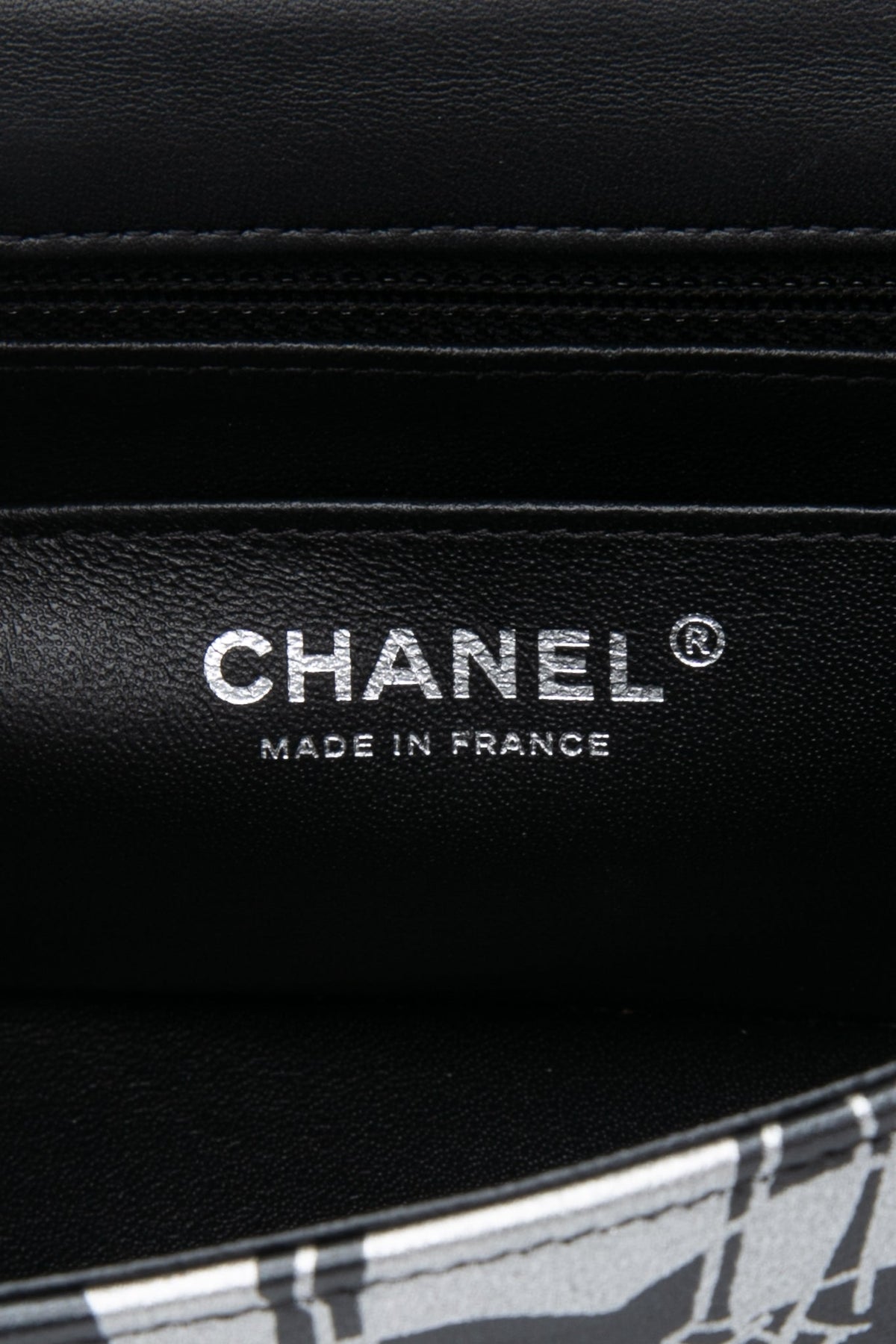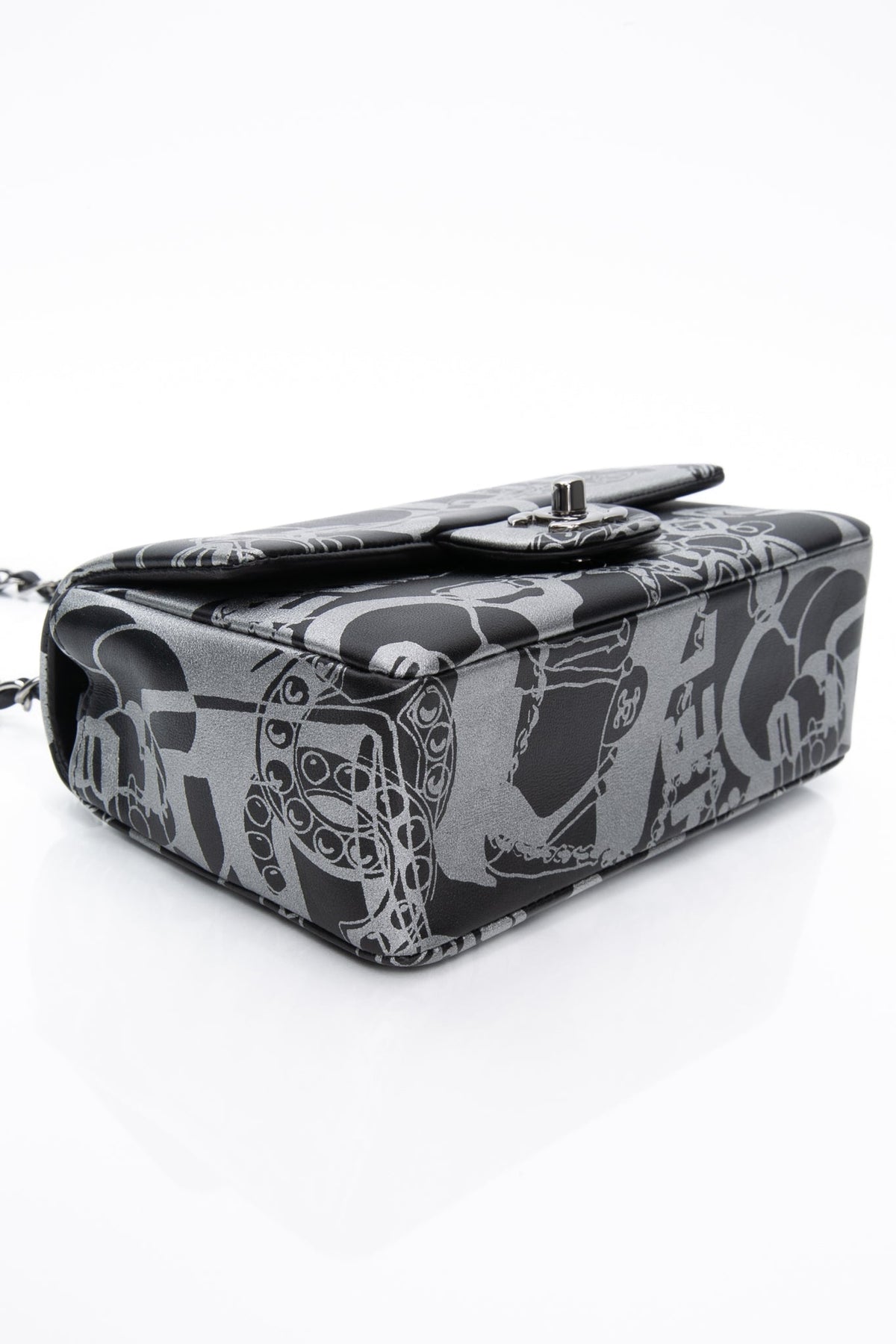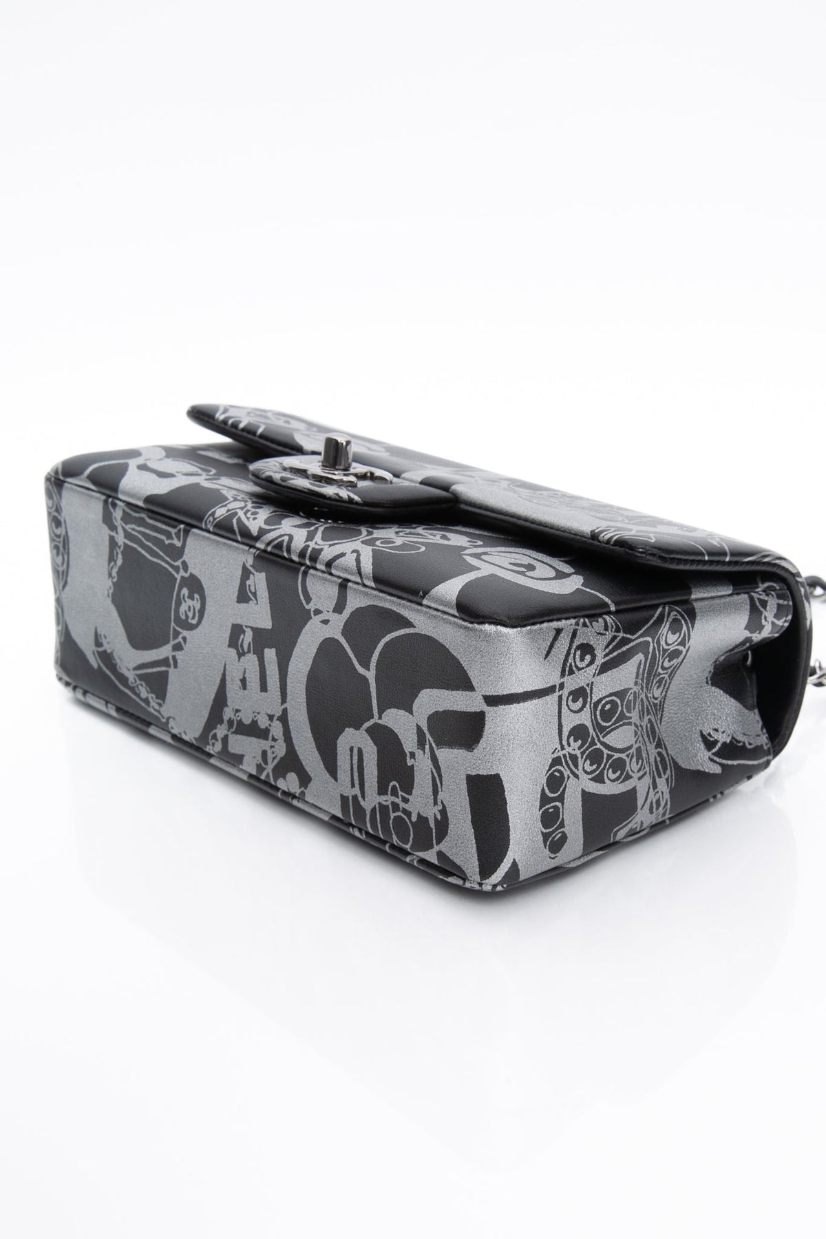 CHANEL 22C Black Silver Printed Lambskin Leather Rectangular Mini Flap Bag