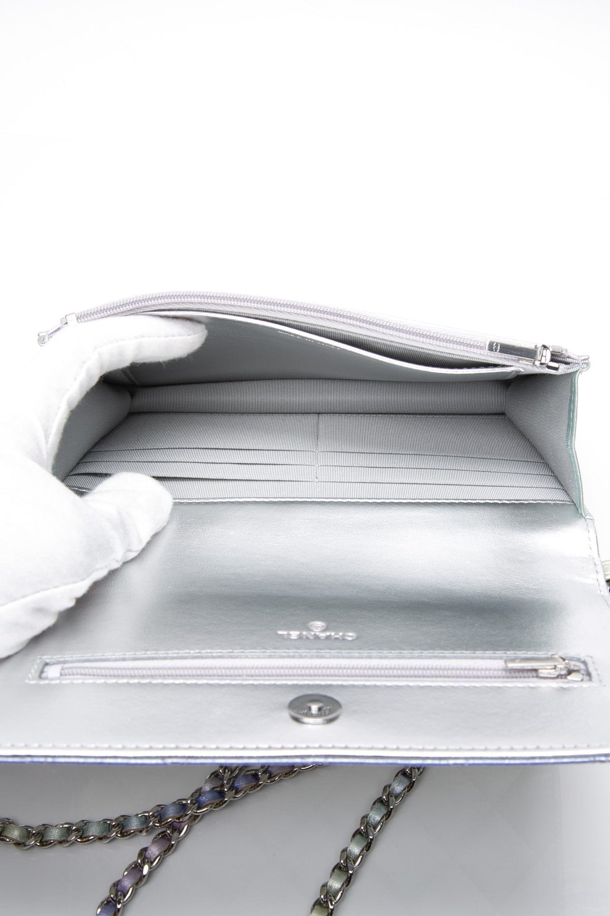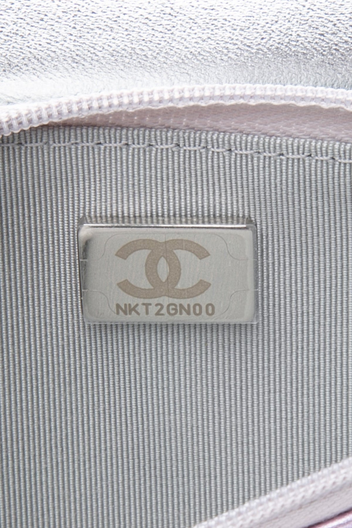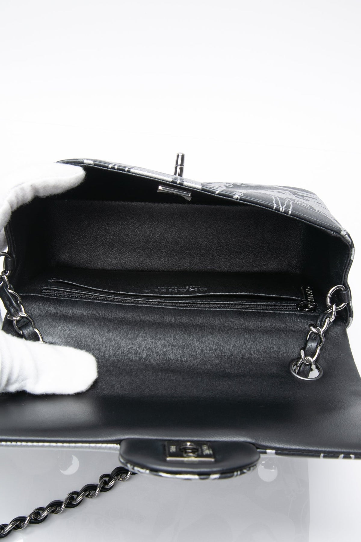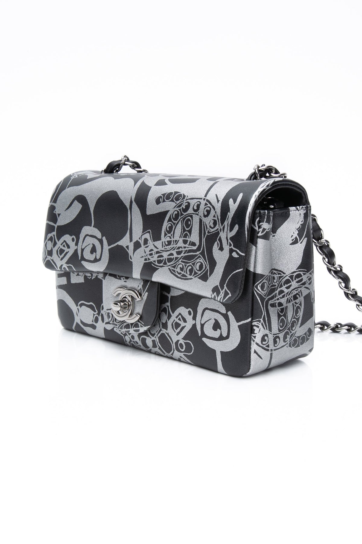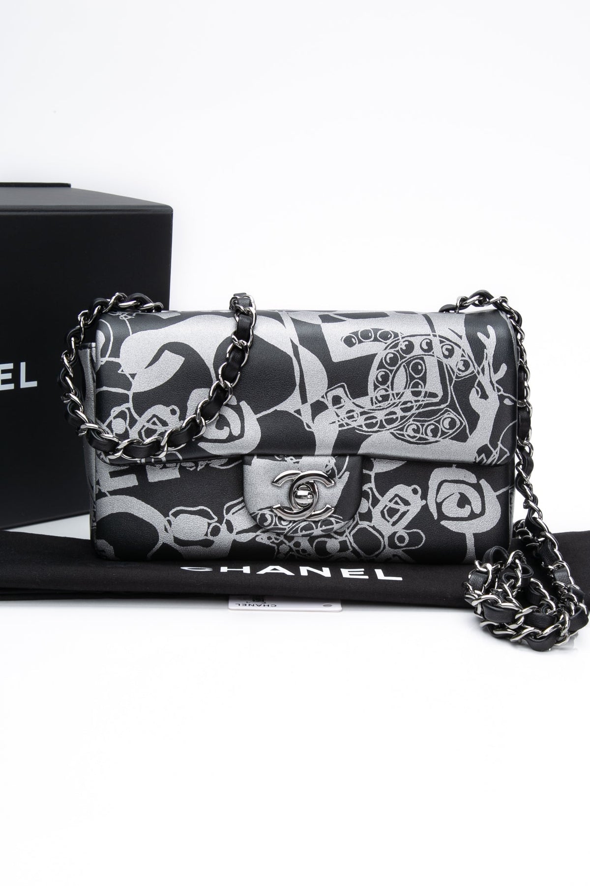 CHANEL 22C Black Silver Printed Lambskin Leather Rectangular Mini Flap Bag