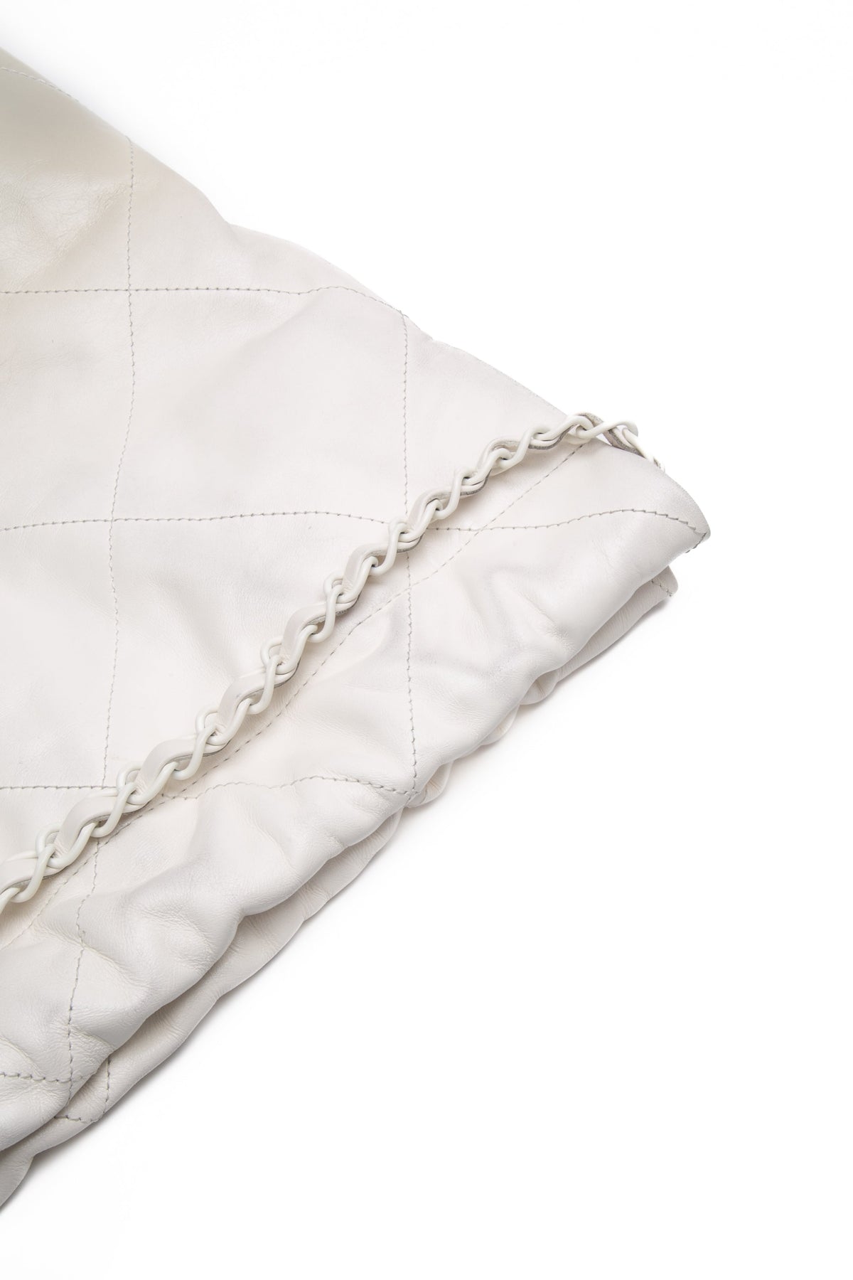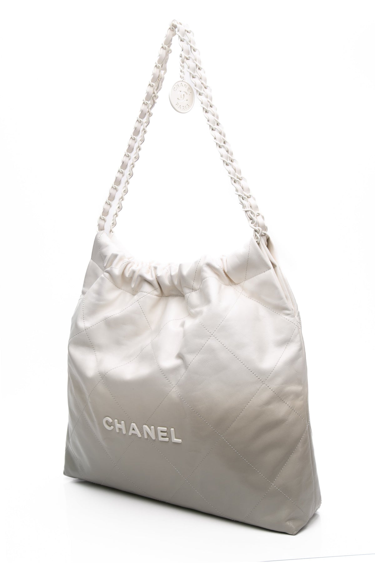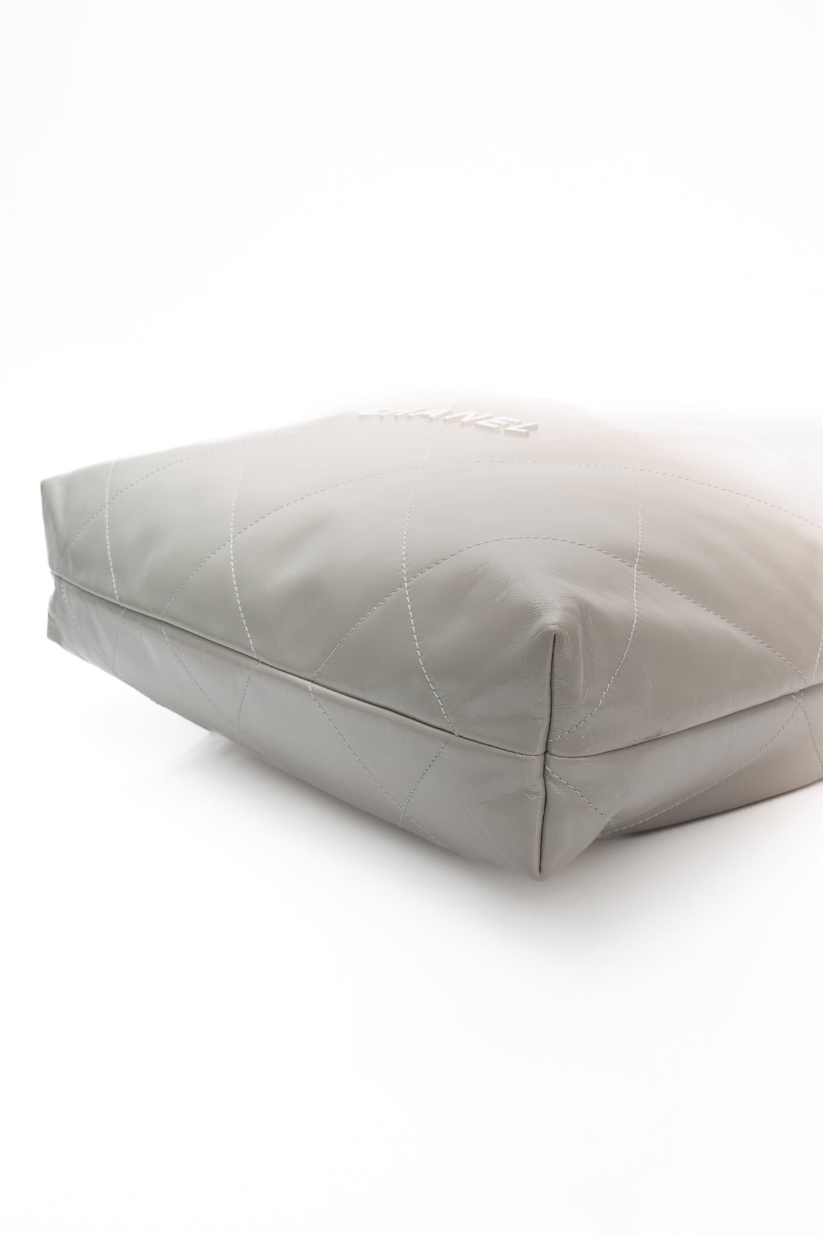 CHANEL 22 White Light Grey Calfskin Quilted Hobo Bag