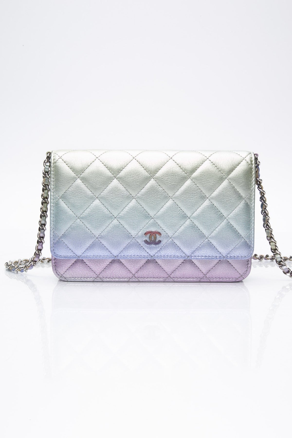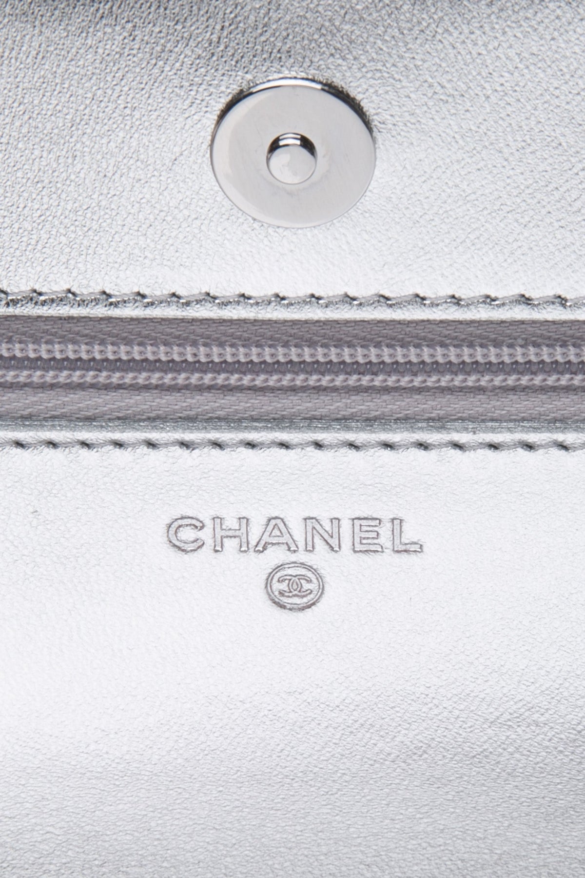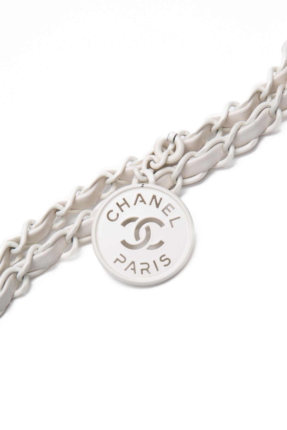 Regular price $1,810.00 Sale price $450.00 Save $1,360.00This chic shoulder bag is crafted of diamond-quilted lambskin leather in beige. The bag features a lambskin threaded light gold chain strap lining the edges of the bag with light gold Chanel CC charms. The top unzips to a beige fabric interior.