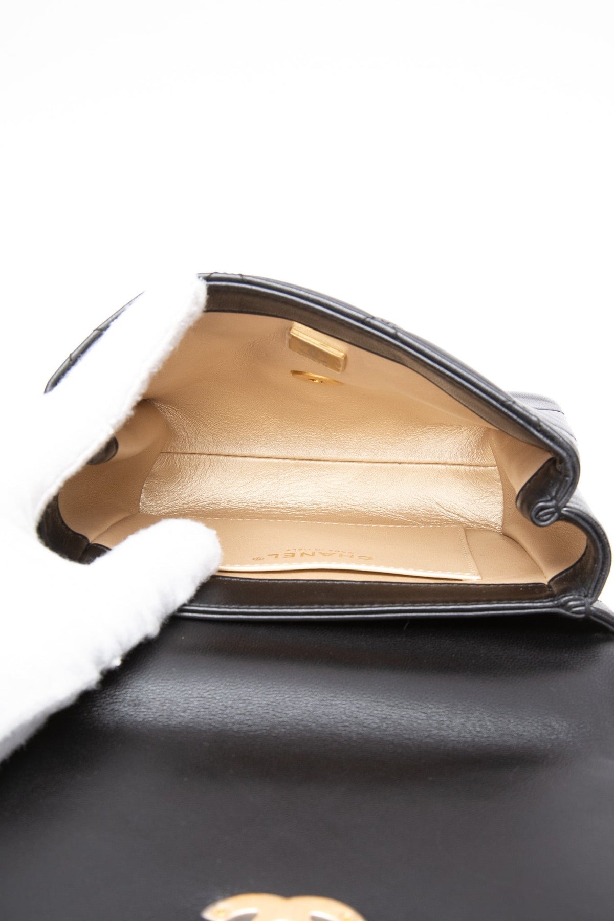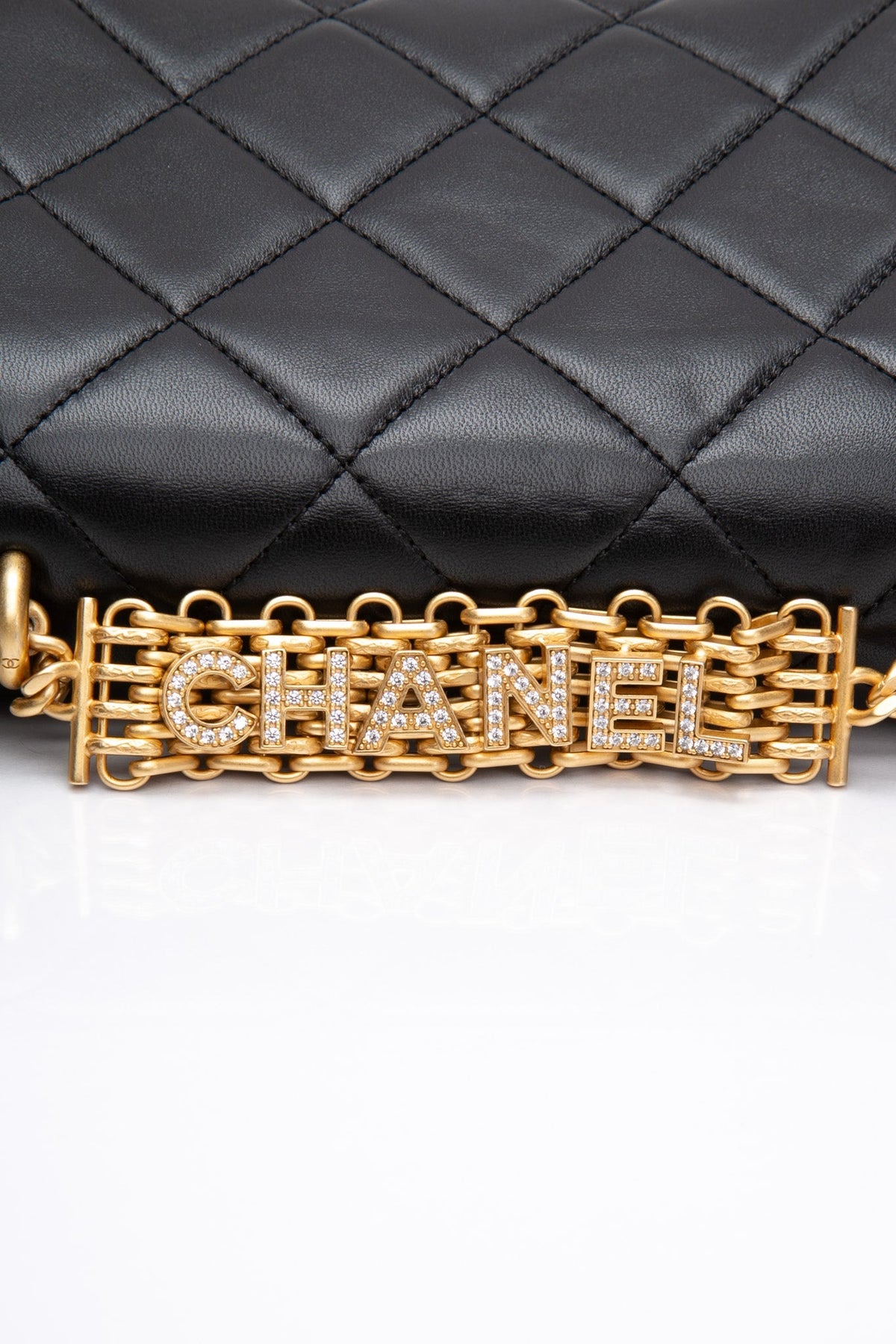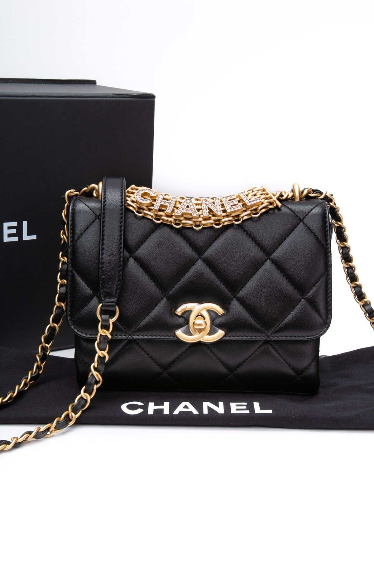 CHANEL 22S Black Lambskin Quilted Mini CC Crystal Logo Chain Flap Bag