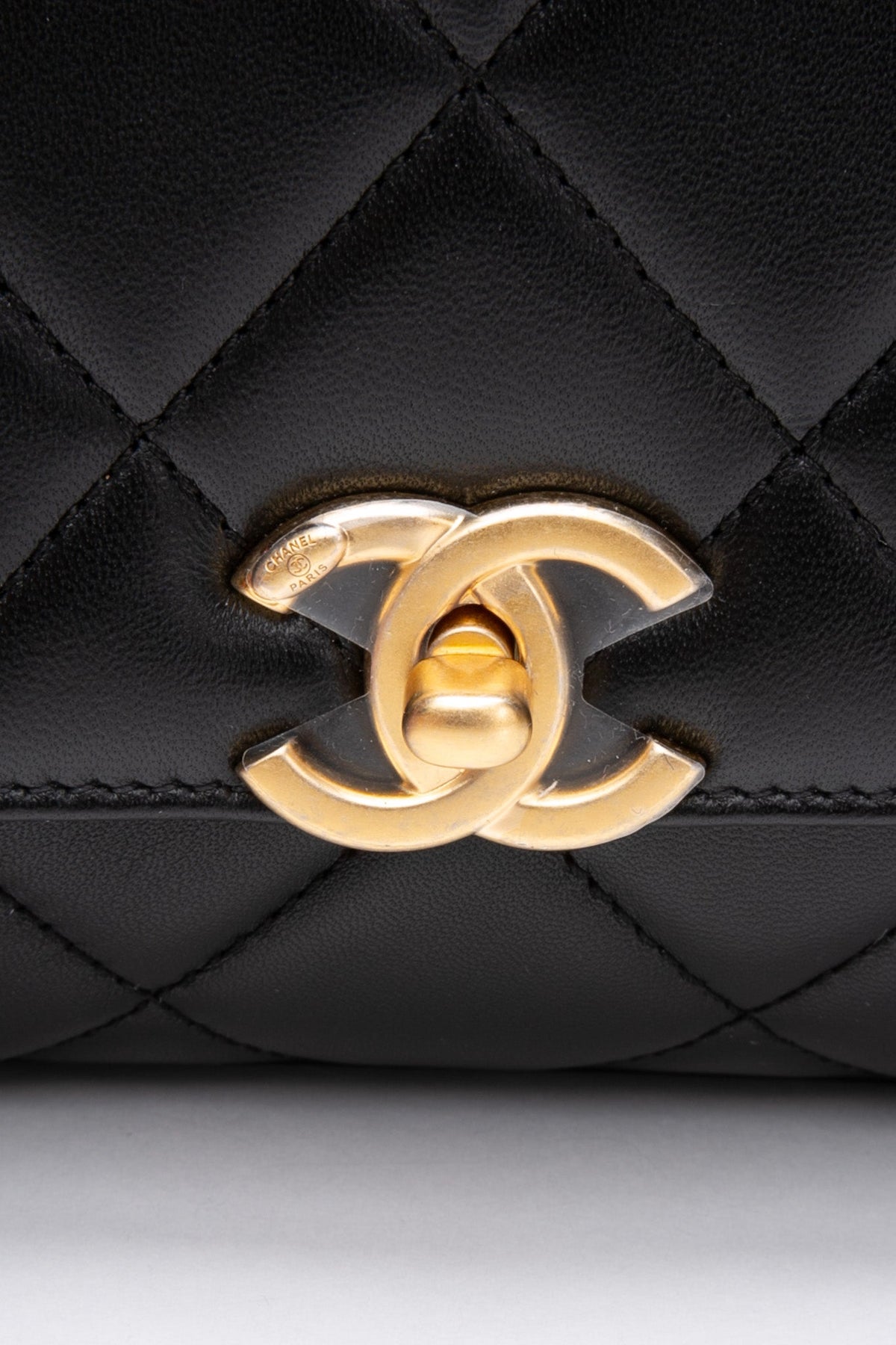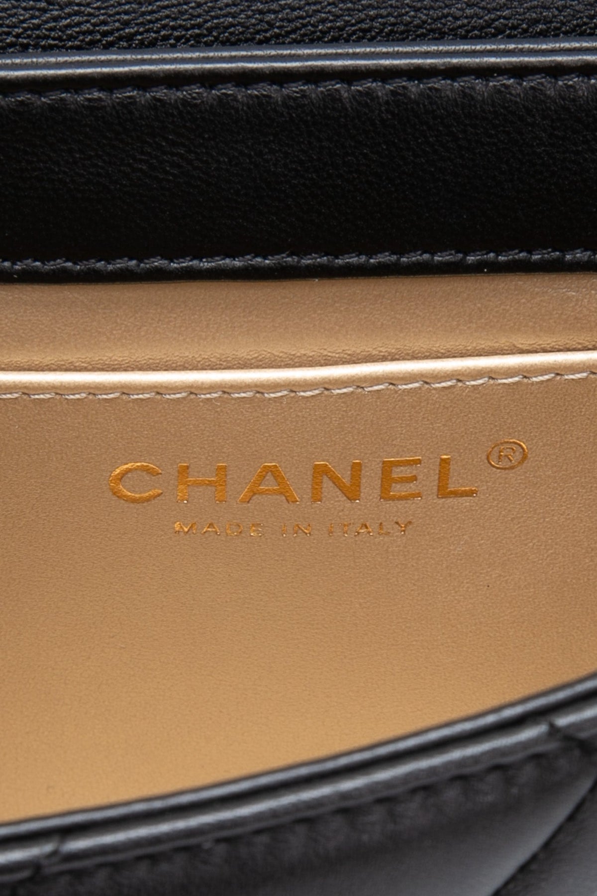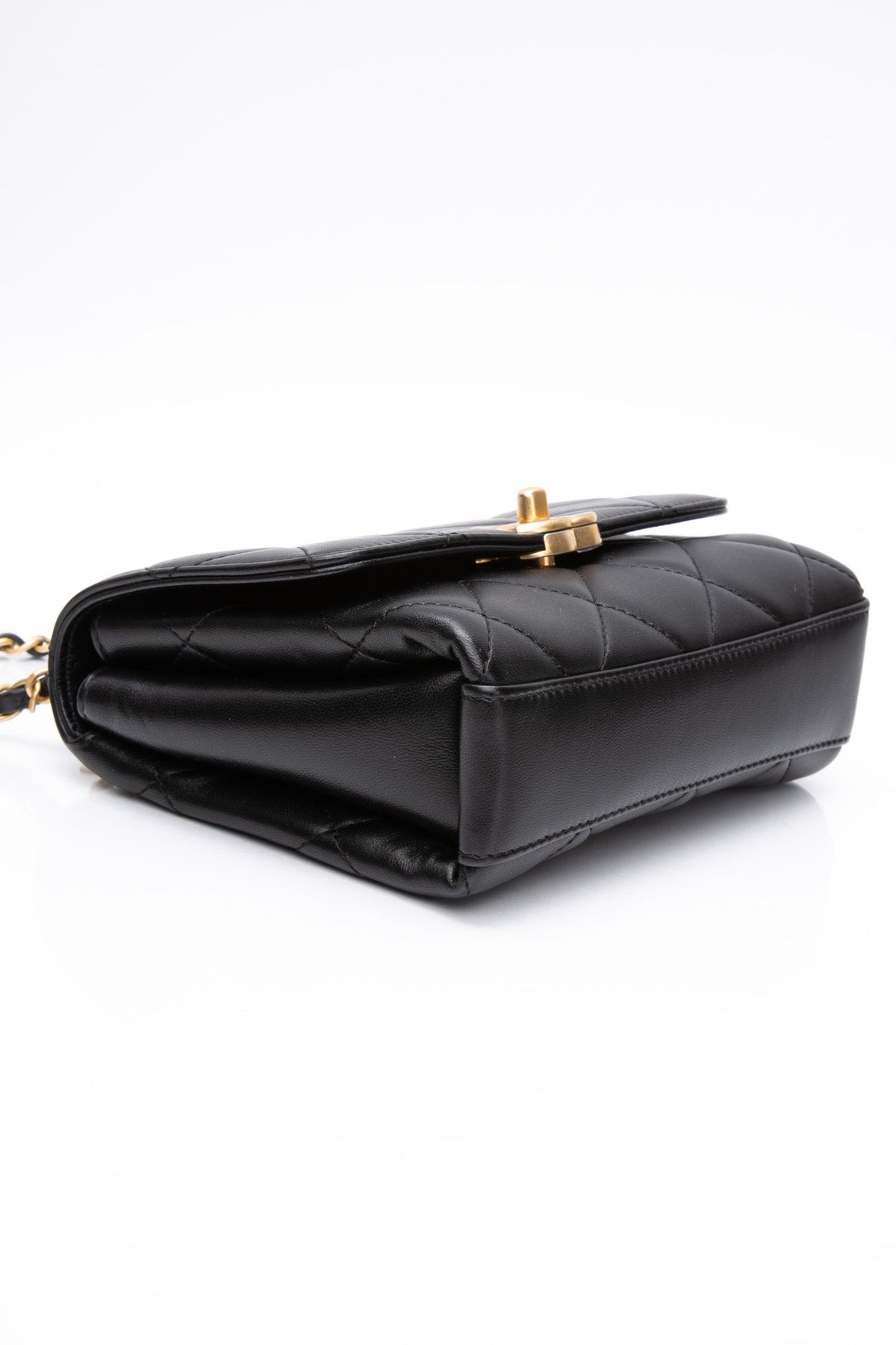 CHANEL 22S Black Lambskin Quilted Mini CC Crystal Logo Chain Flap Bag