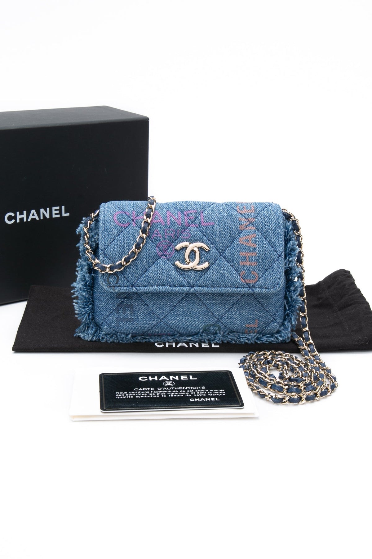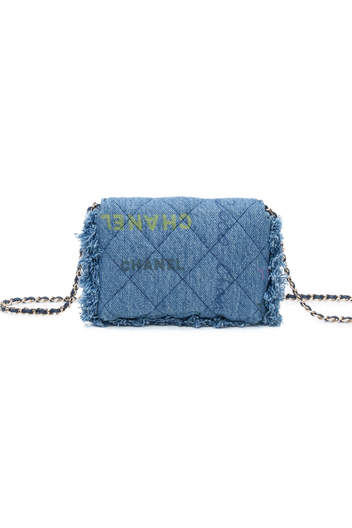 CHANEL 22P Blue Denim Micro Graffiti CC Logo Crossbody