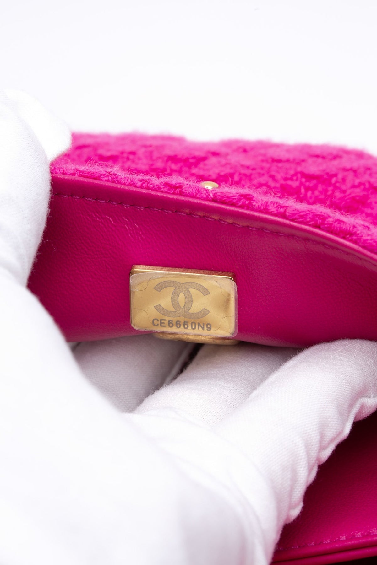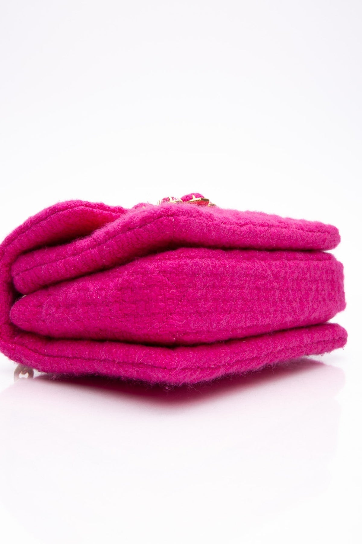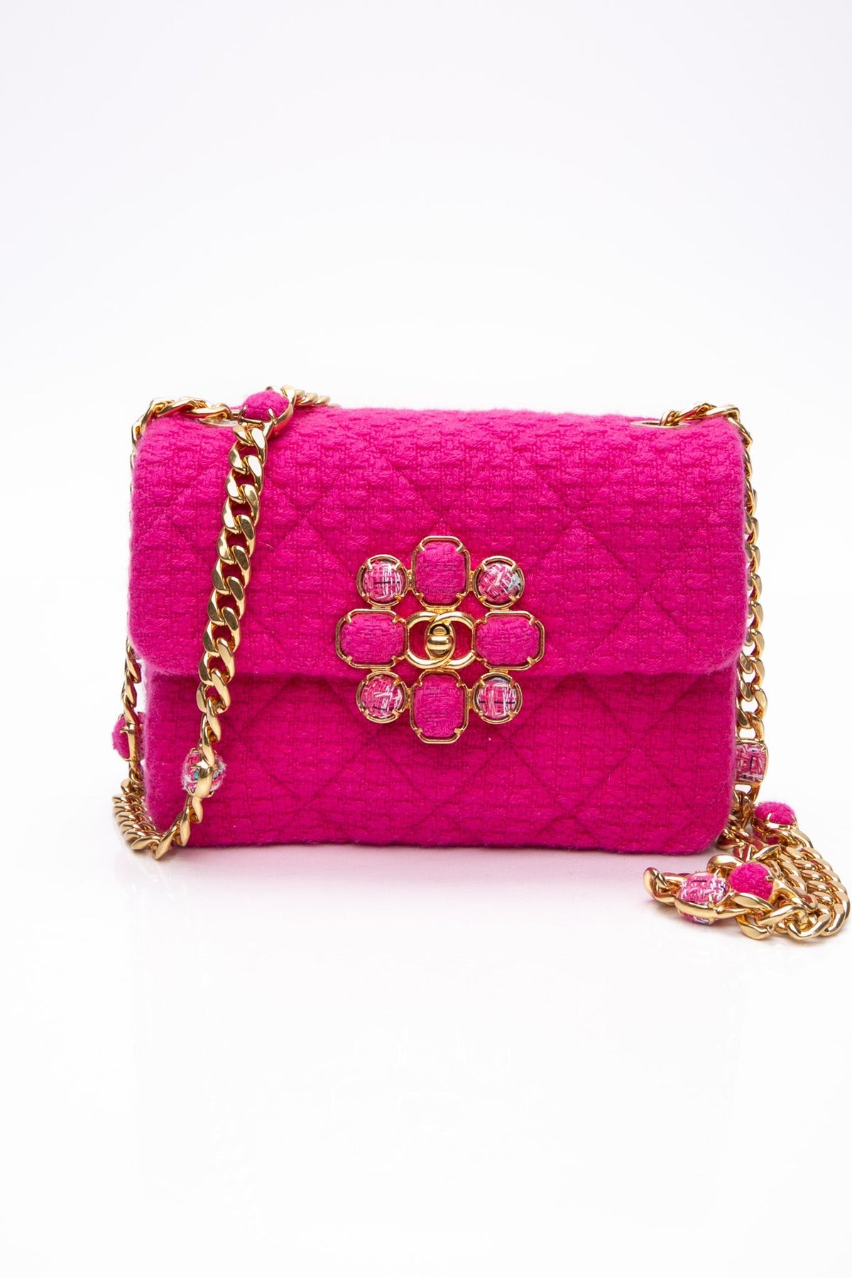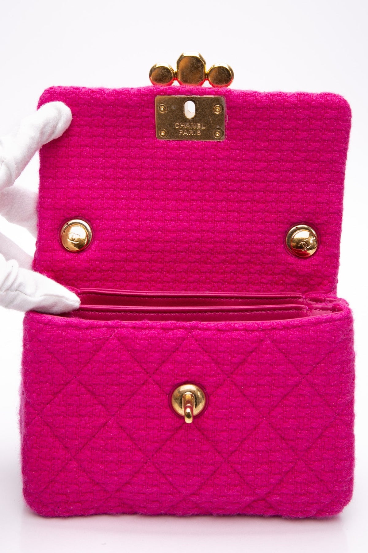 CHANEL 22K Fuchsia Tweed Quilted Mini Bijoux Flap Crossbody Bag