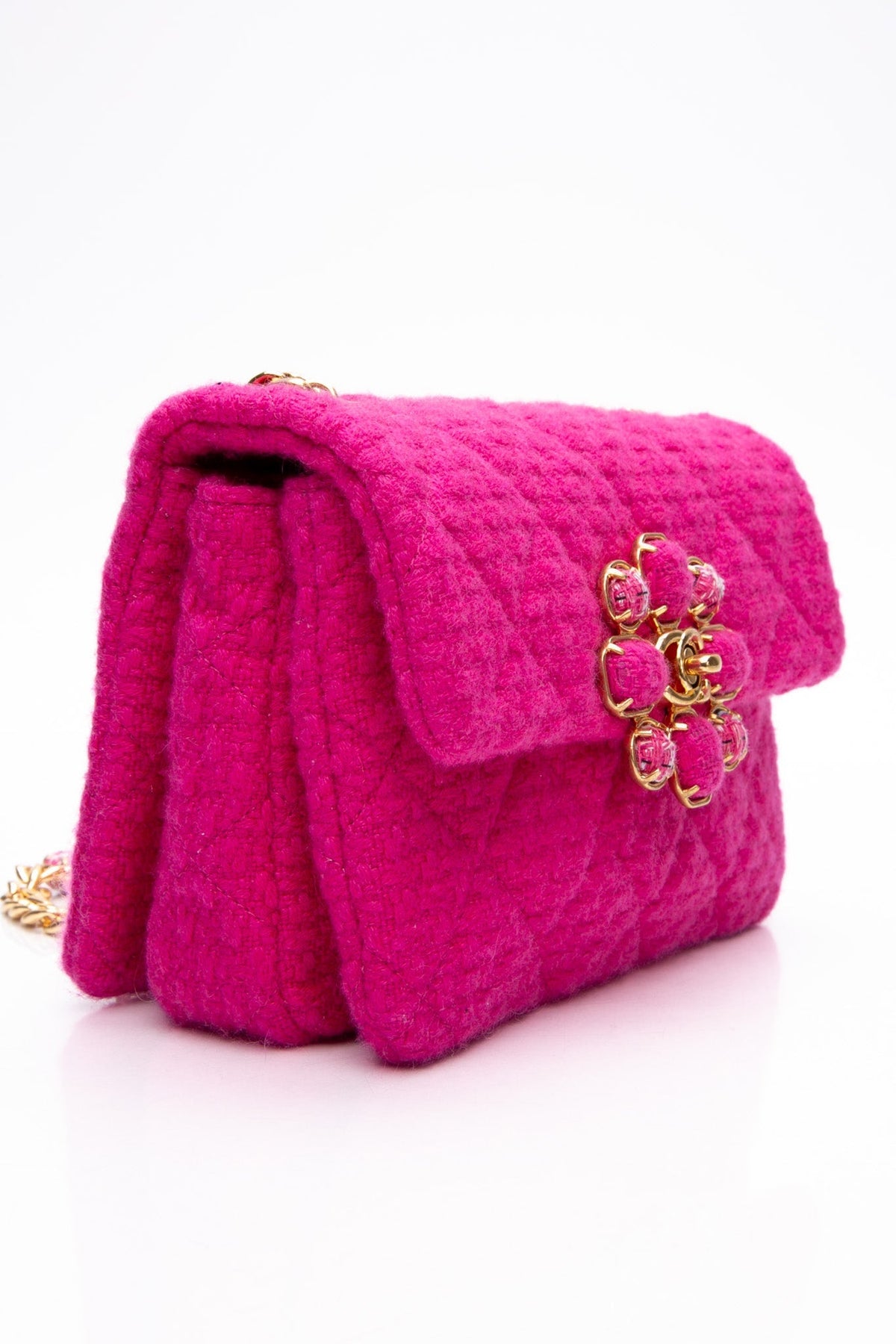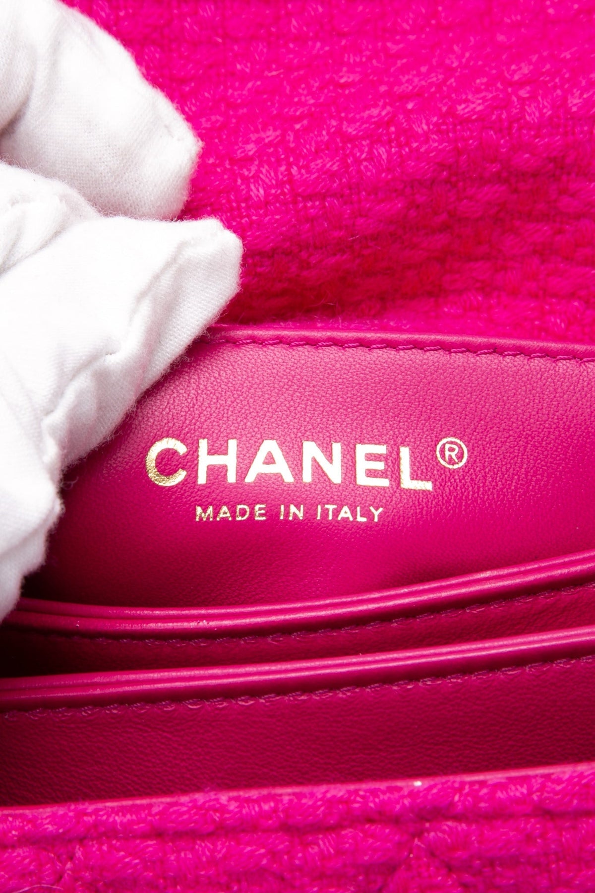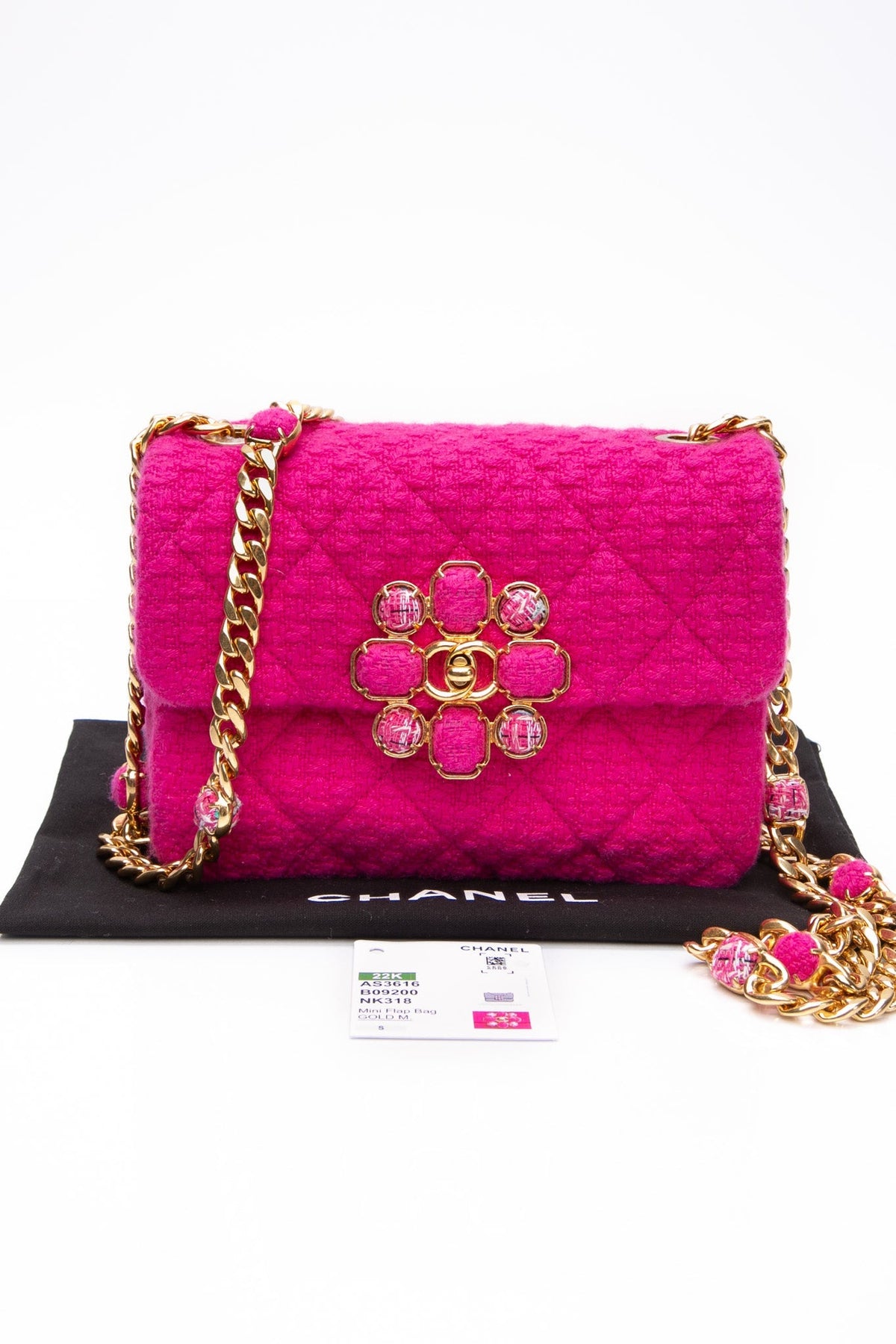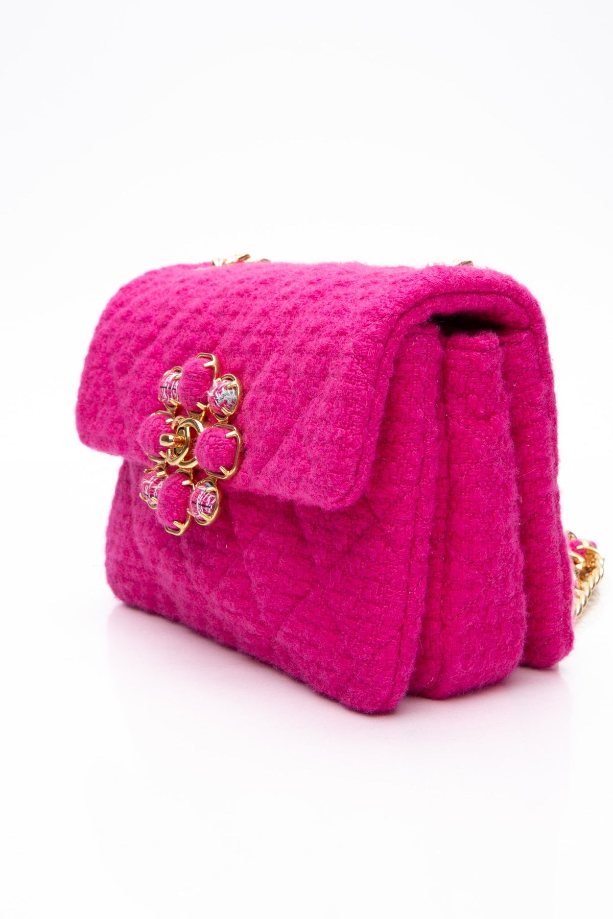 CHANEL 22K Fuchsia Tweed Quilted Mini Bijoux Flap Crossbody Bag