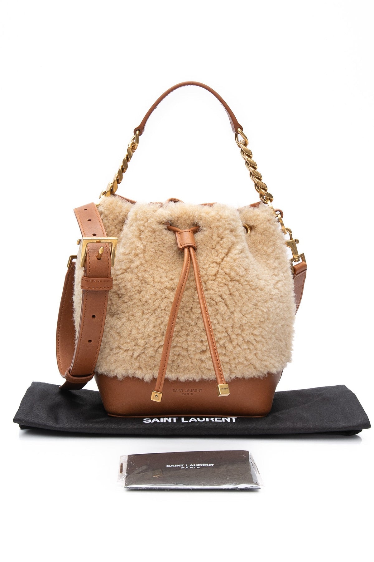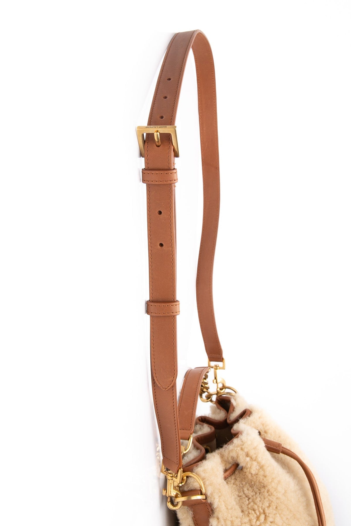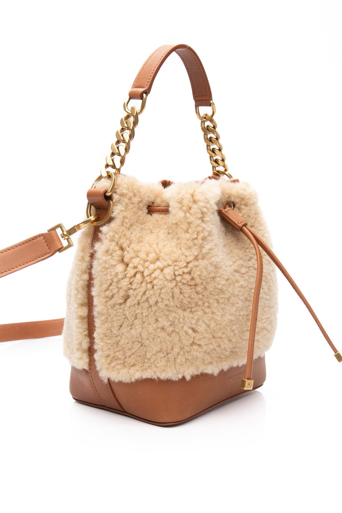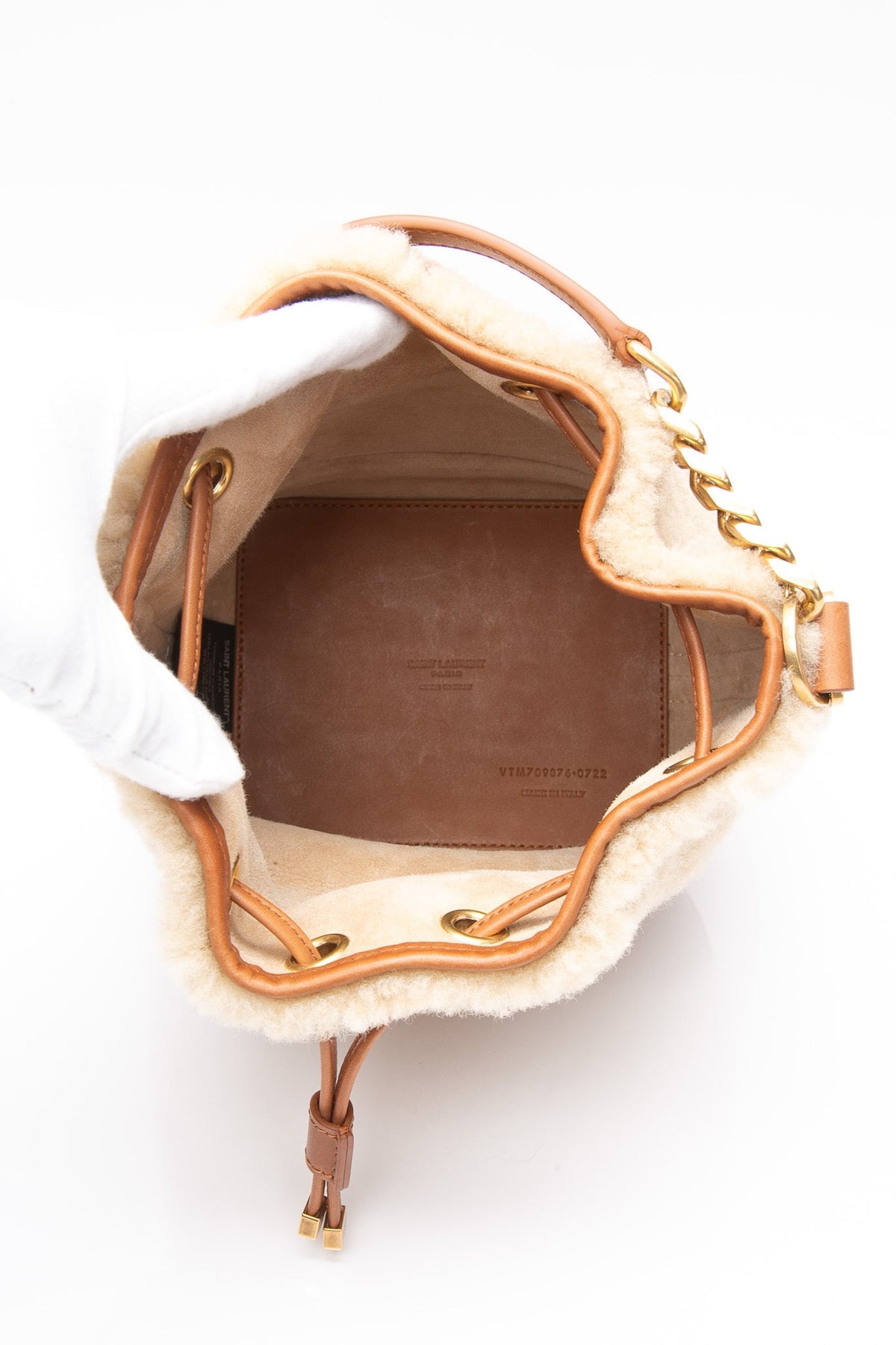 SAINT LAURENT Natural Beige Shearling Calfskin Small Emmanuelle Bucket Bag
