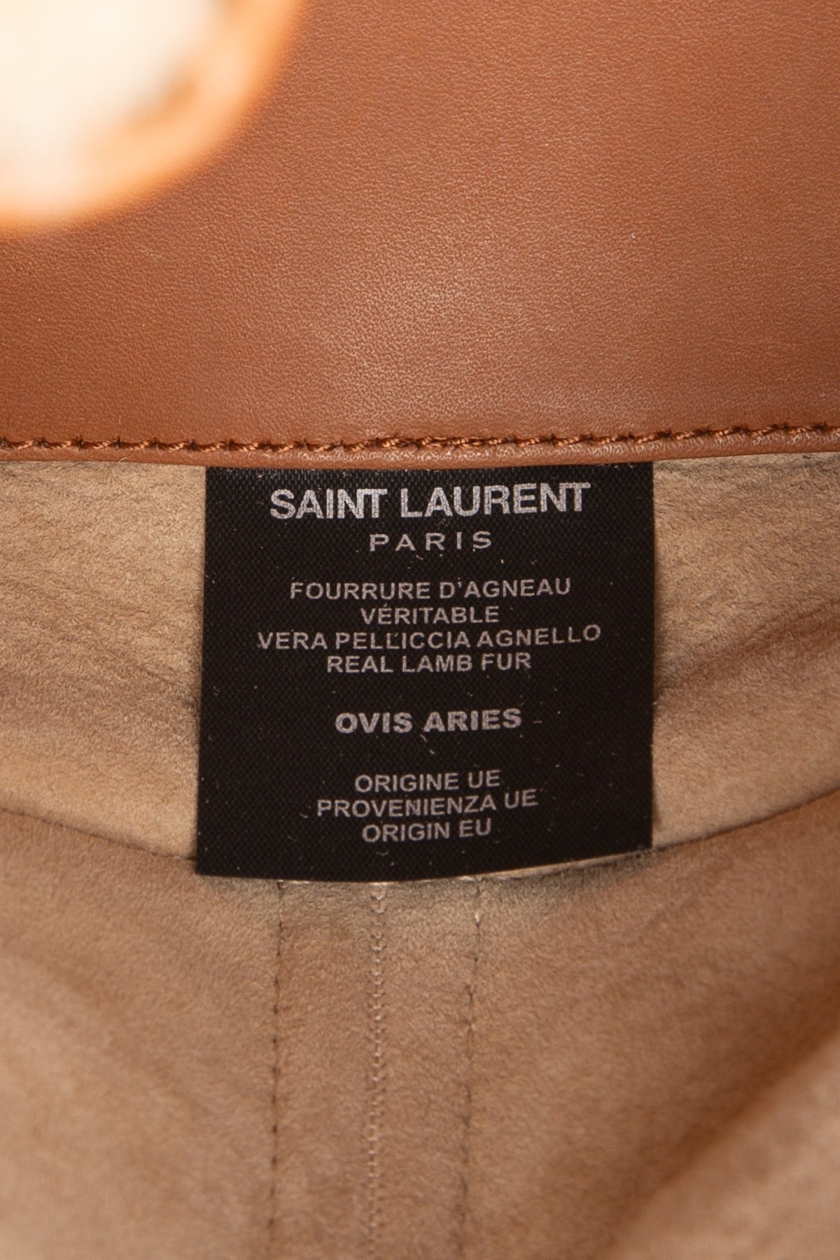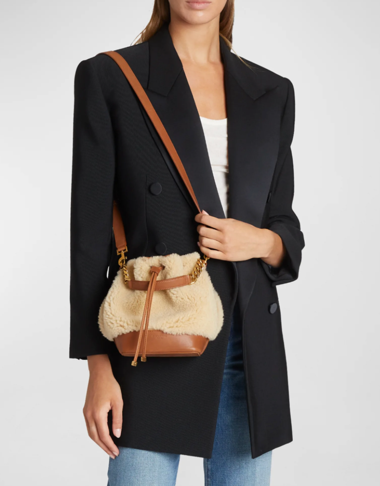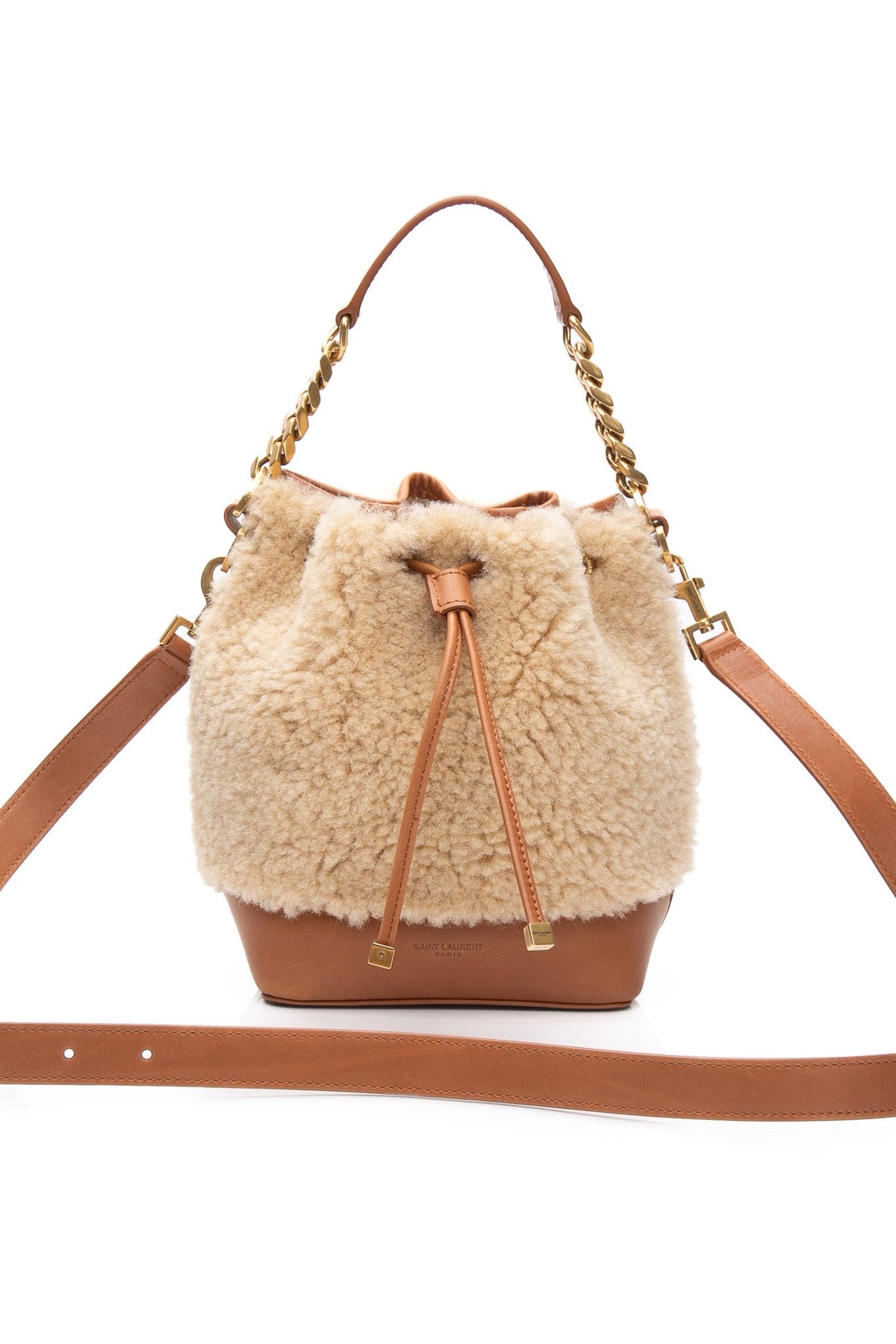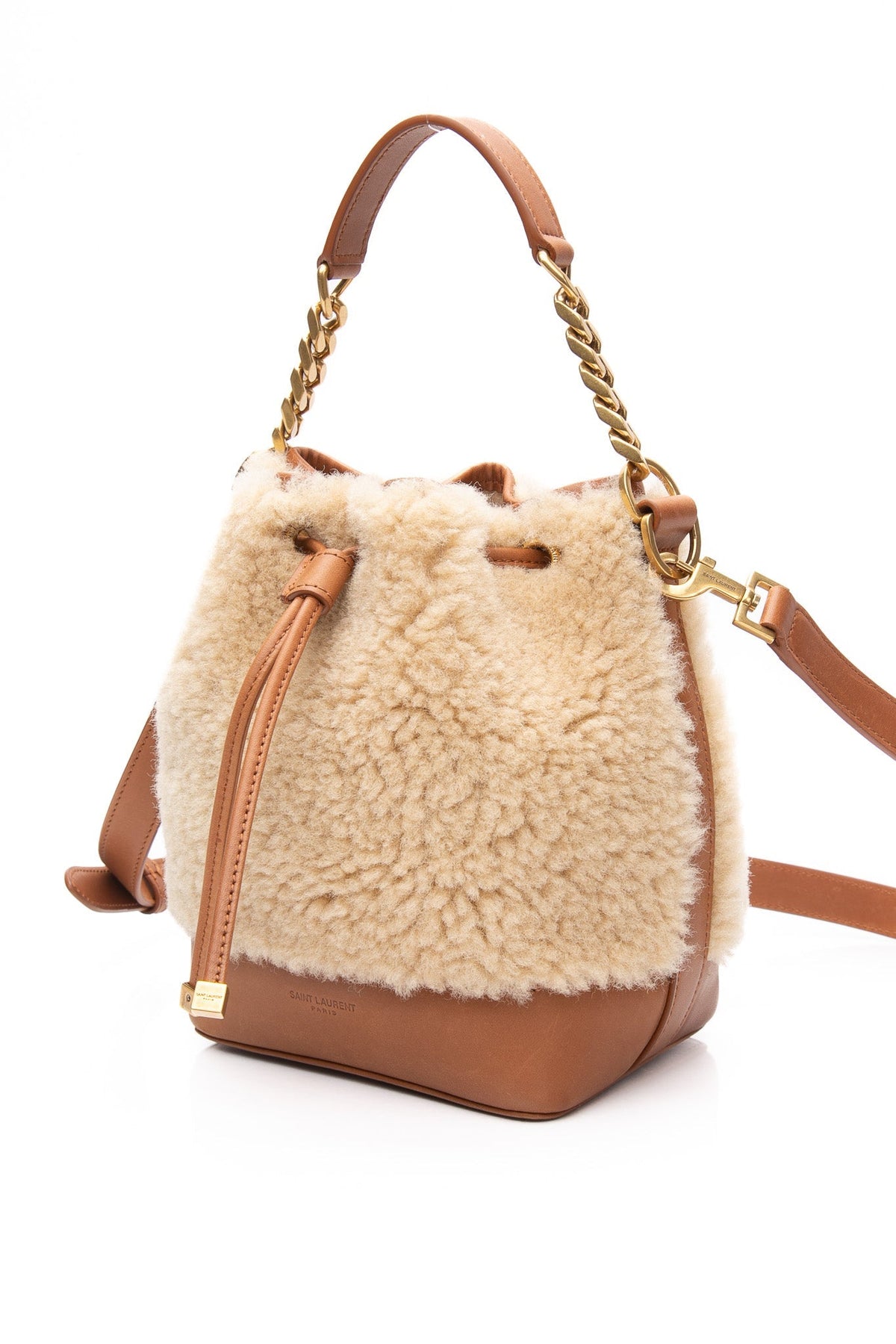 SAINT LAURENT Natural Beige Shearling Calfskin Small Emmanuelle Bucket Bag