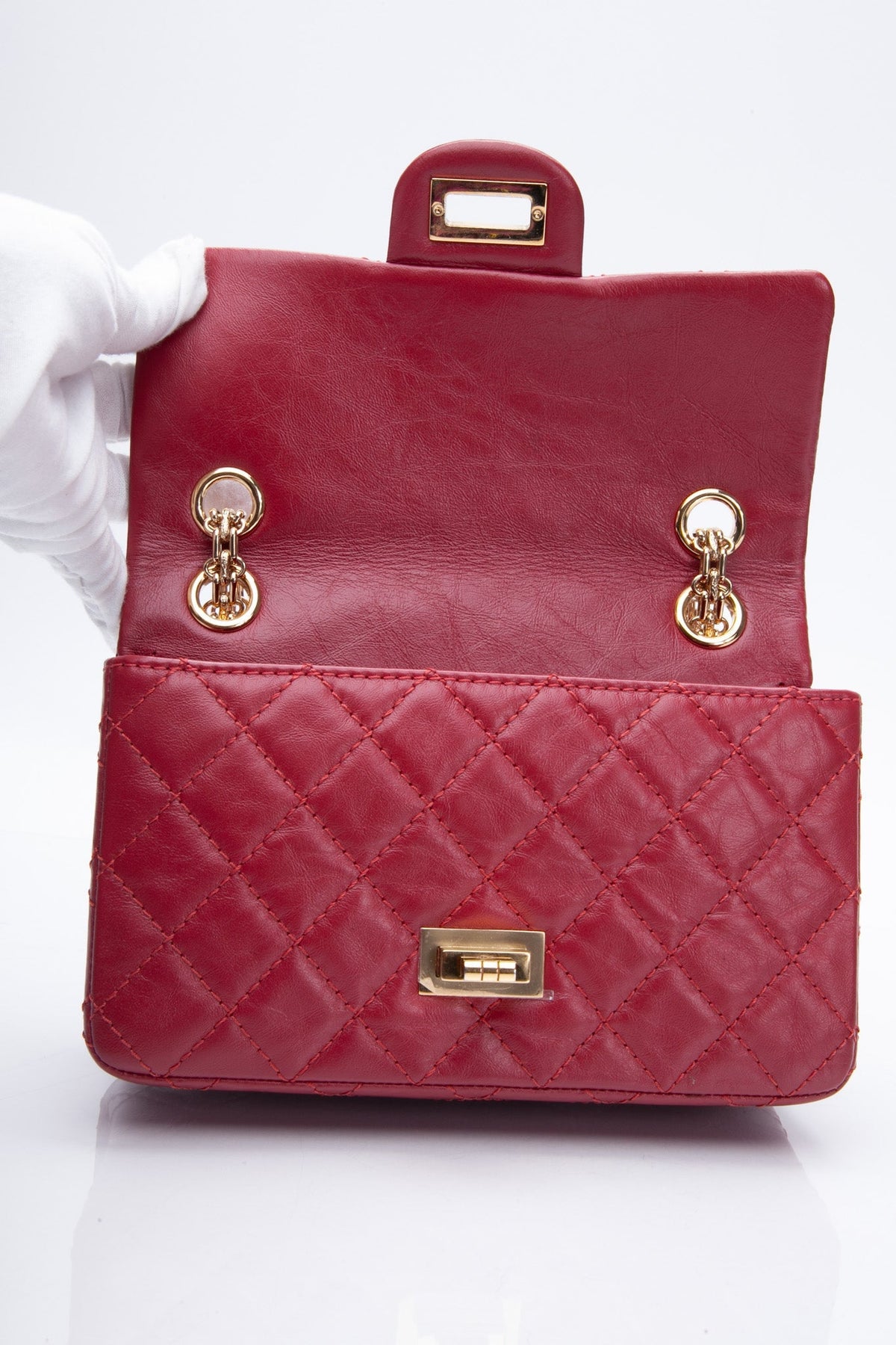 CHANEL Aged Calfskin Quilted 2.55 Reissue Mini Flap Red
