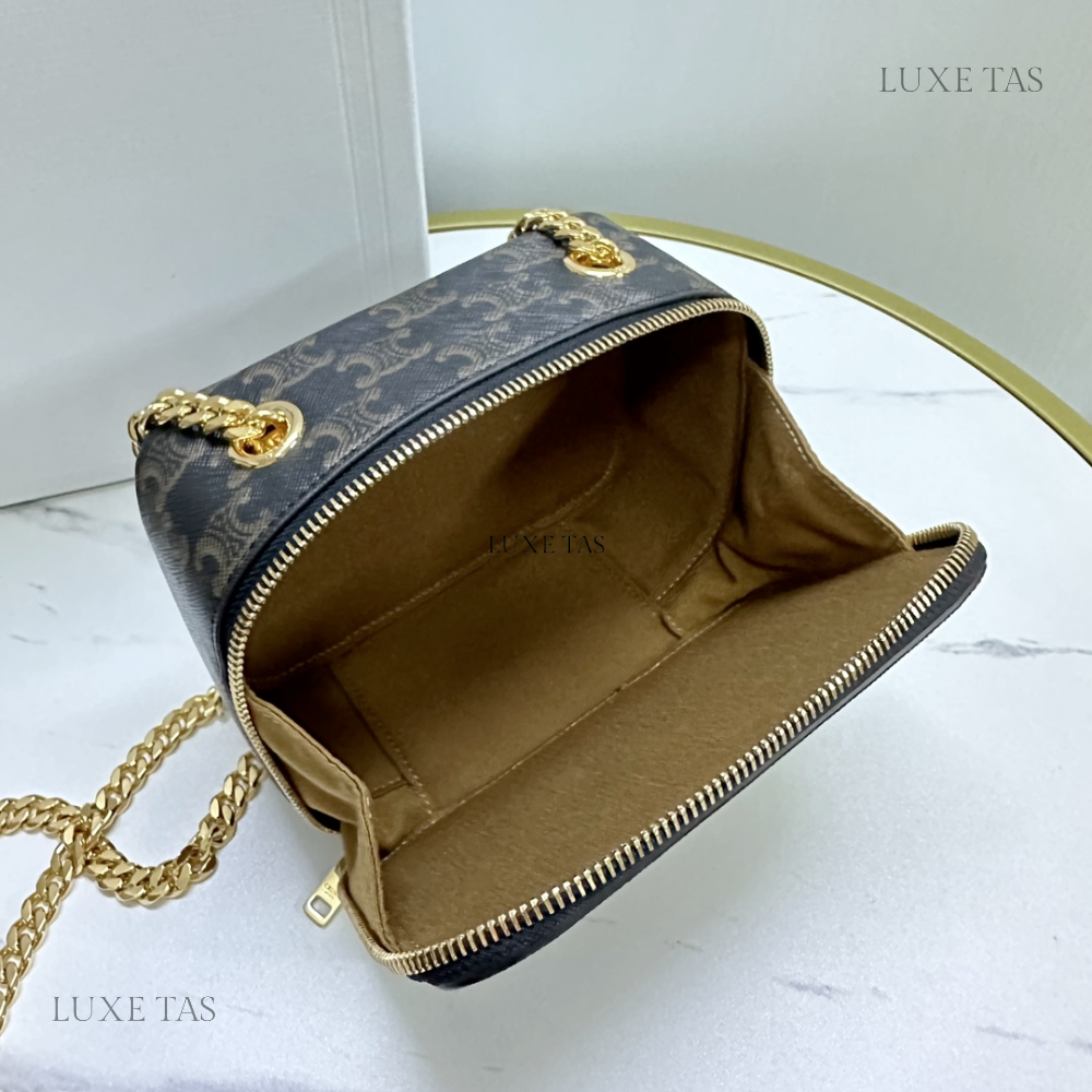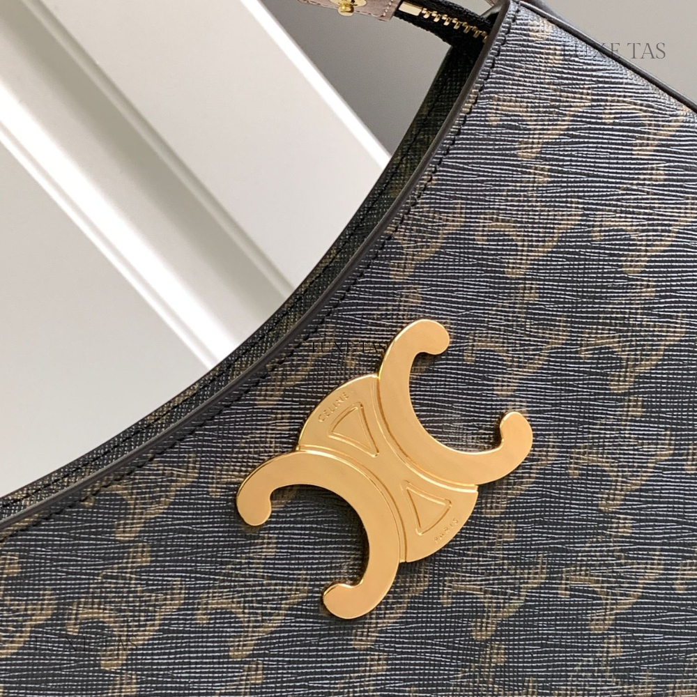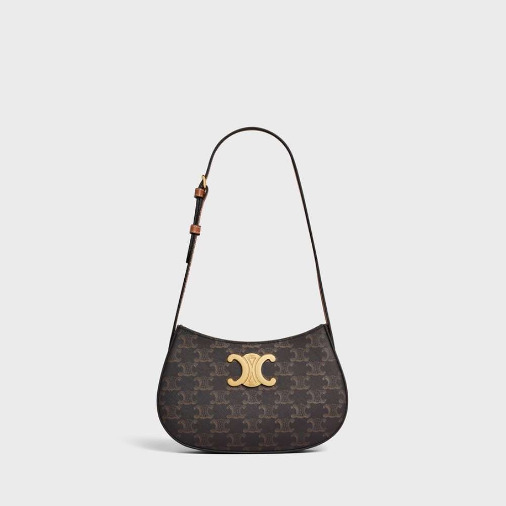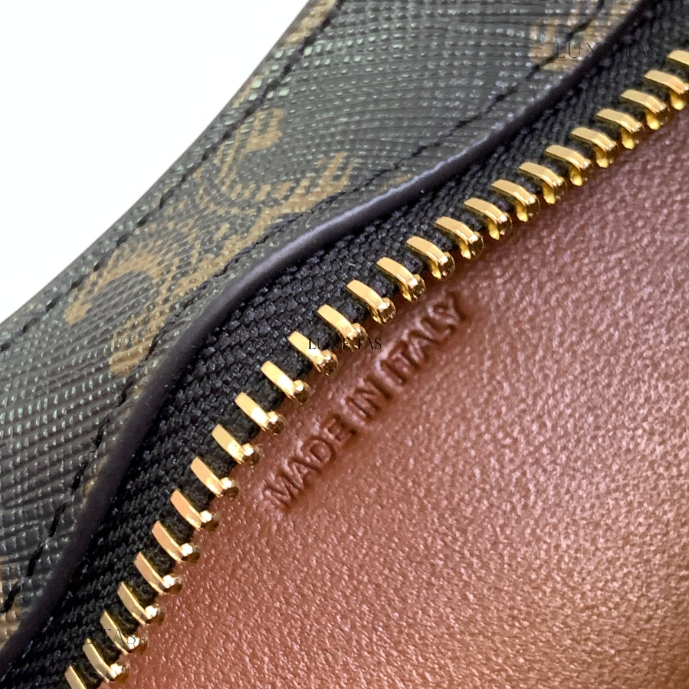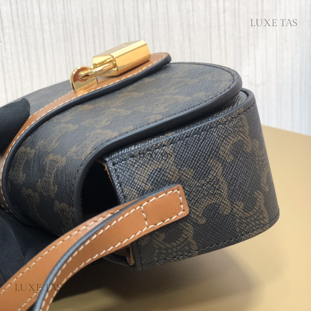 Elevate your style with our exquisite bag crafted from luxurious Triomphe canvas and lined with sumptuous lambskin for a touch of refinement. Enhanced with gleaming gold finishing, this bag exudes timeless elegance. Offering versatile carrying options, it can be worn cross-body or over the shoulder, ensuring both comfort and sophistication. The iconic Triomphe snap button closure adds a touch of charm and security to this classic accessory. Step out in style and make a statement with every step.