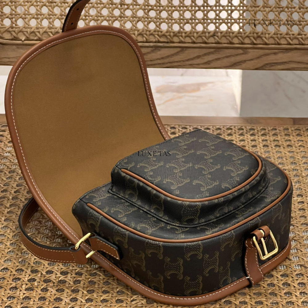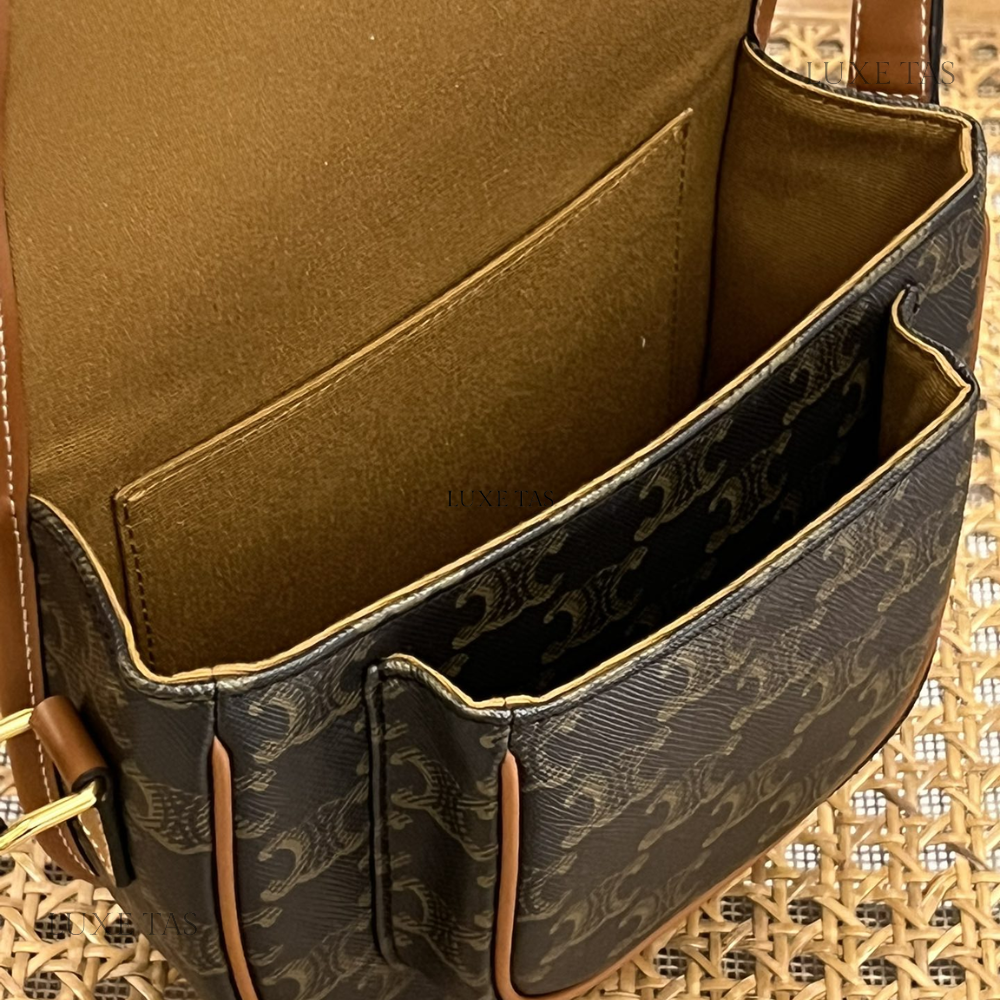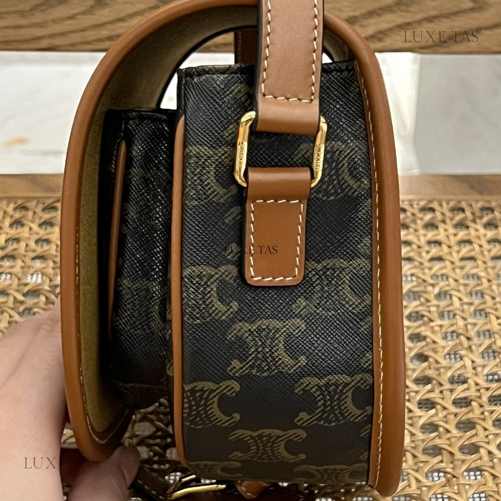 Tan Teen Victoire Bag In Triomphe Canvas Leather Crossbody Bag for Women
