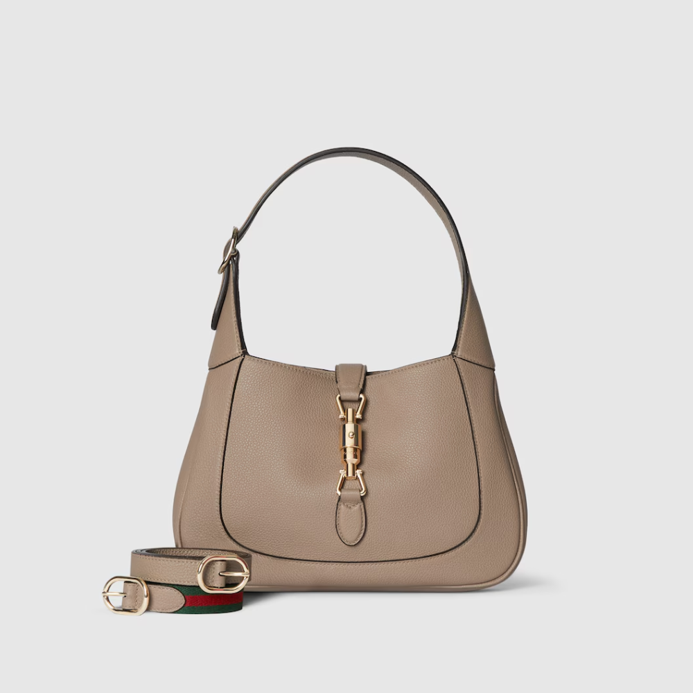 Refined and timeless, the Taupe Jackie 1961 Medium Leather Handbag blends elegance with versatility. Crafted in soft taupe leather, this crescent shoulder bag for women features a sleek silhouette and light gold-toned closure inspired by vintage design.