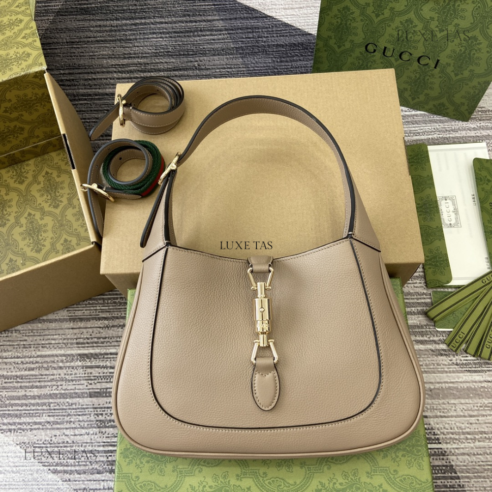 Taupe Jackie 1961 Medium Leather Handbag Classic Crescent Shoulder Bag for Women