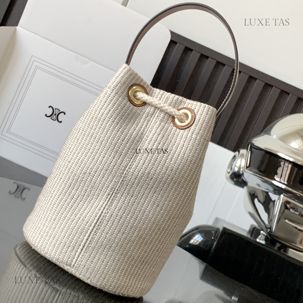 Teen Drawstring In Striped Textile And Calfskin Beige - Bucket Bag for Women