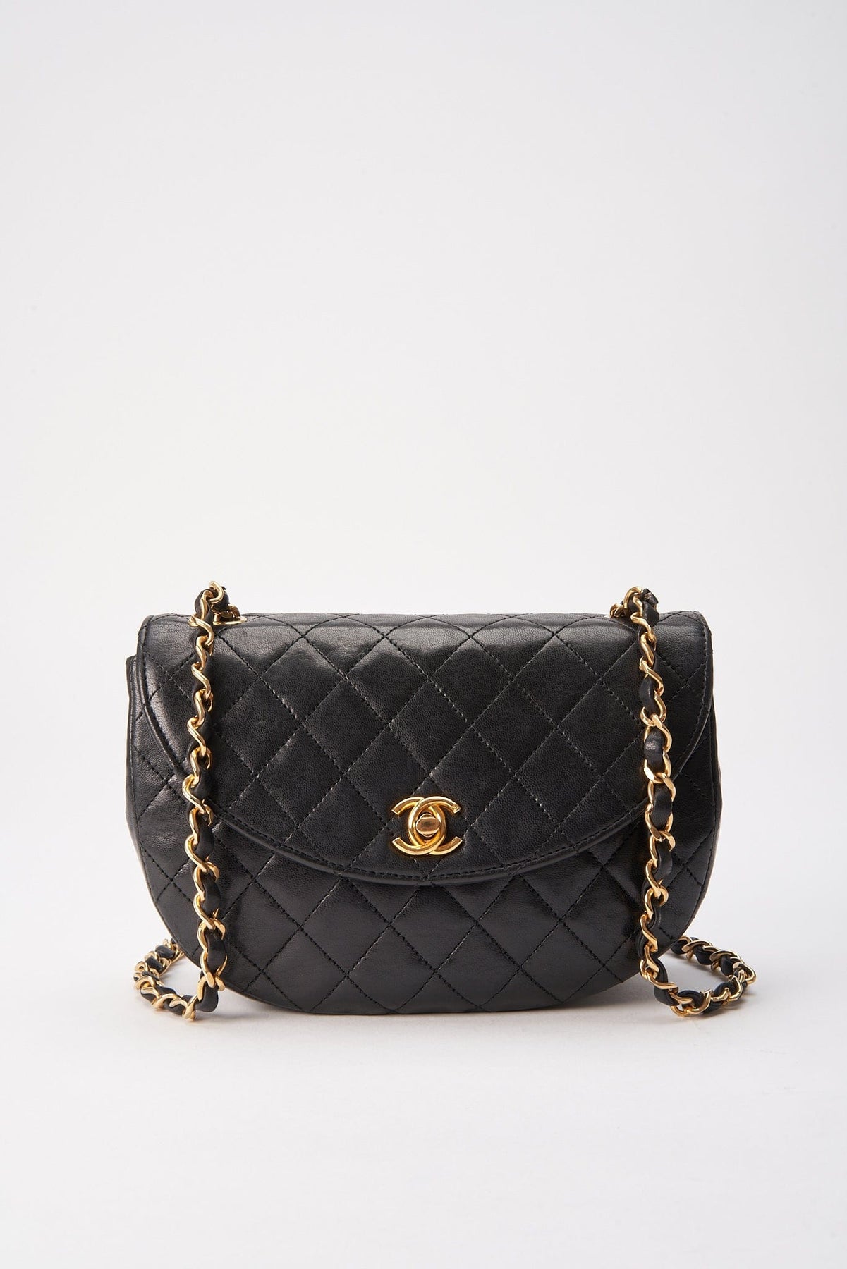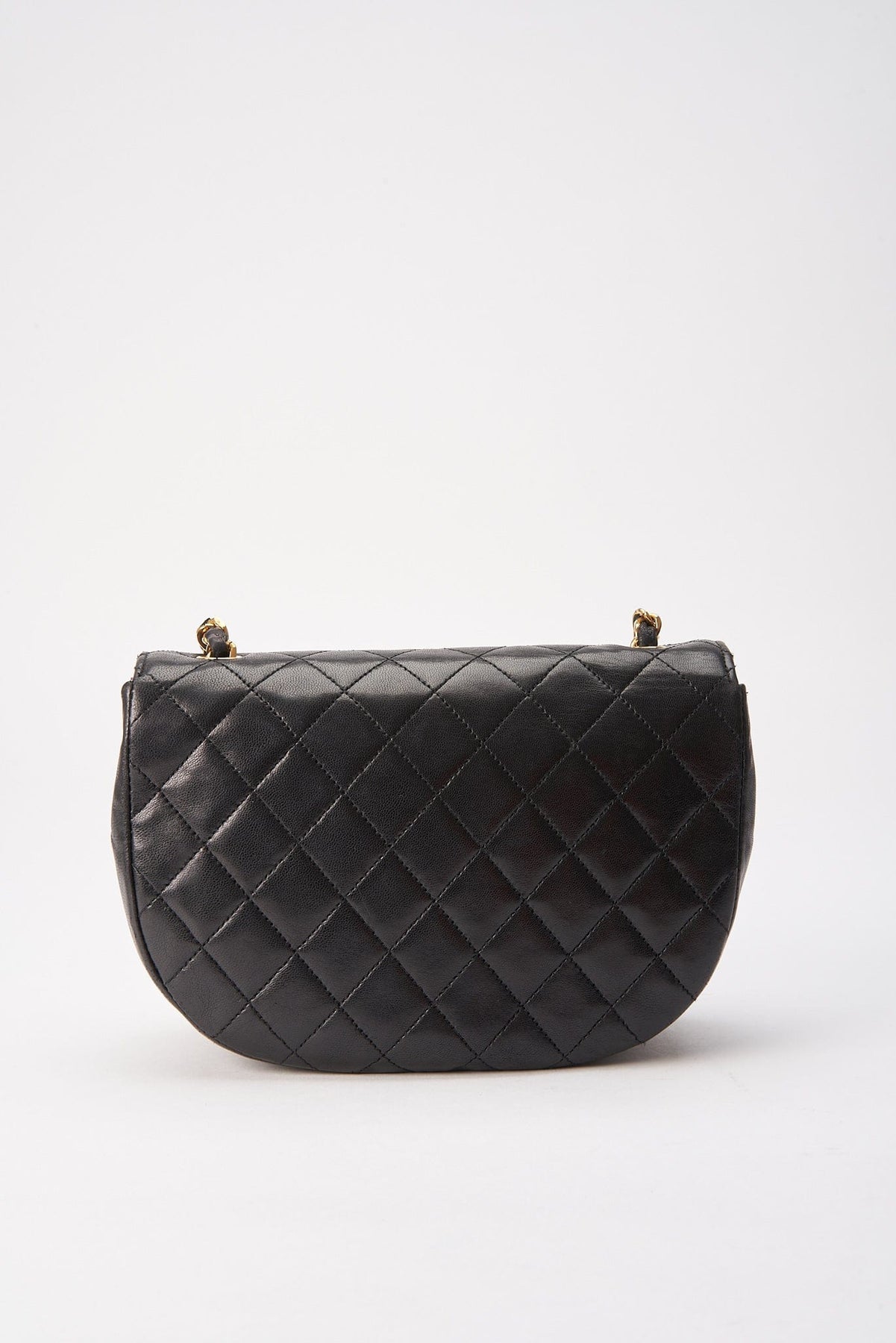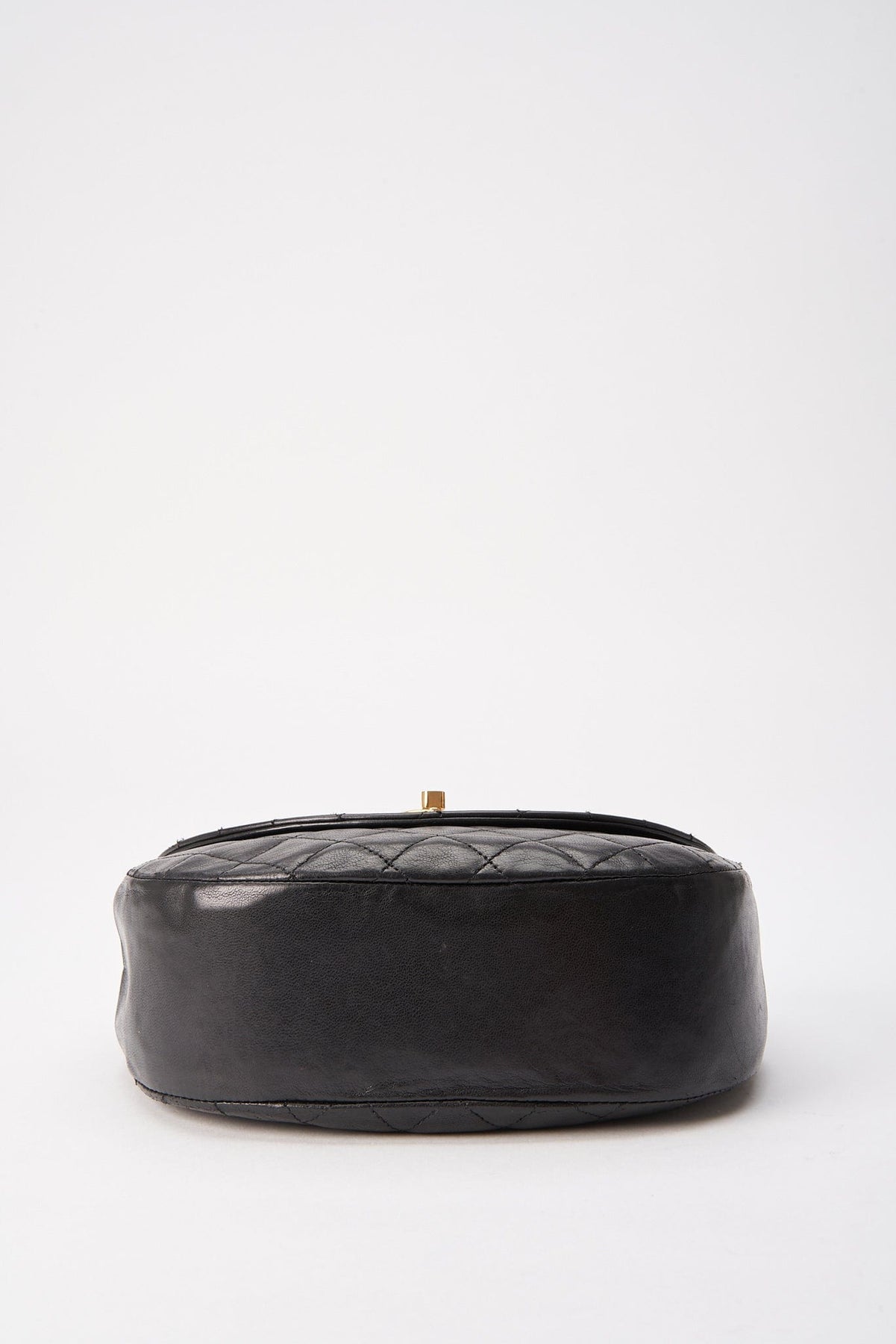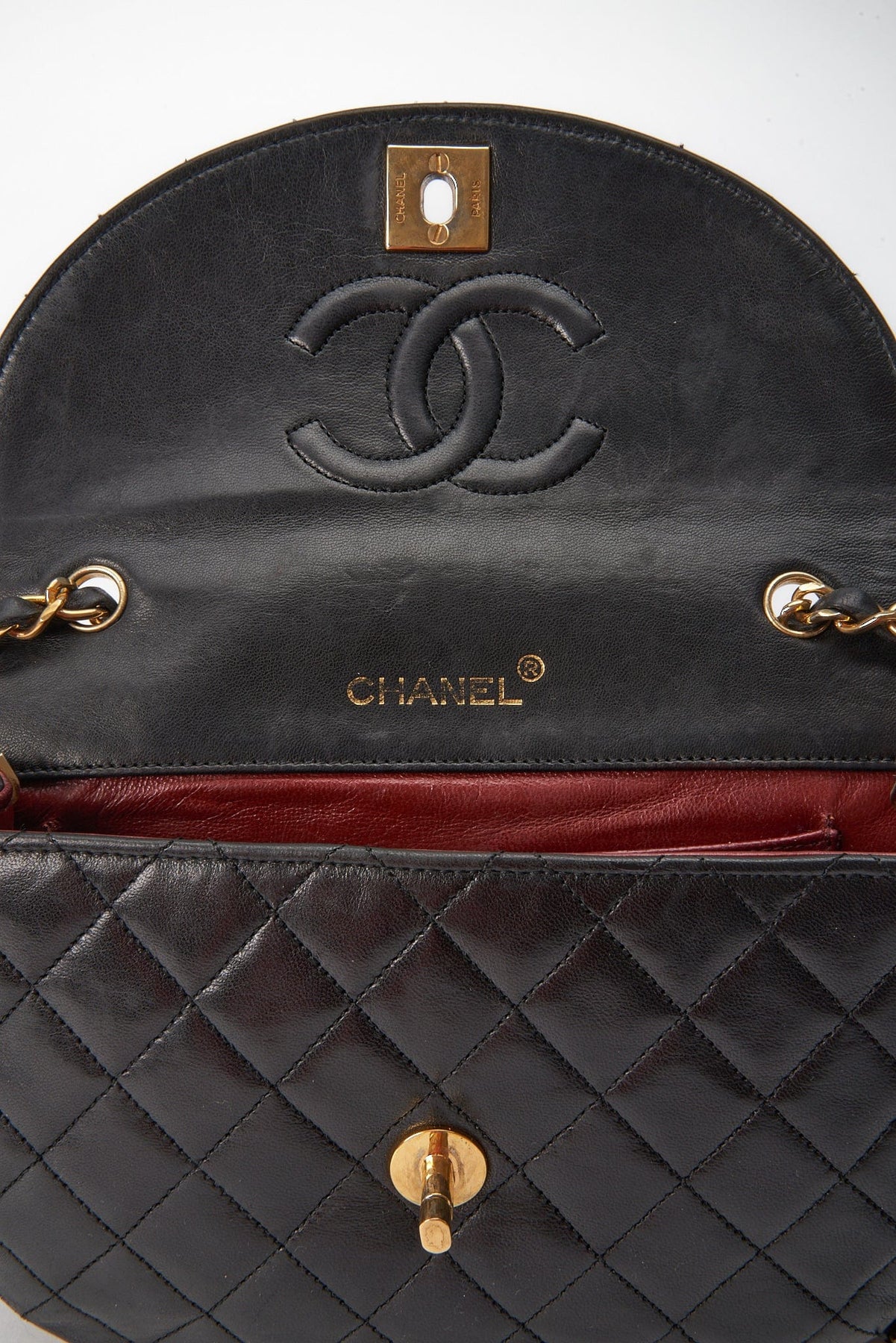 Vintage Chanel Black Half Moon Single Flap with 24k gold plated hardware