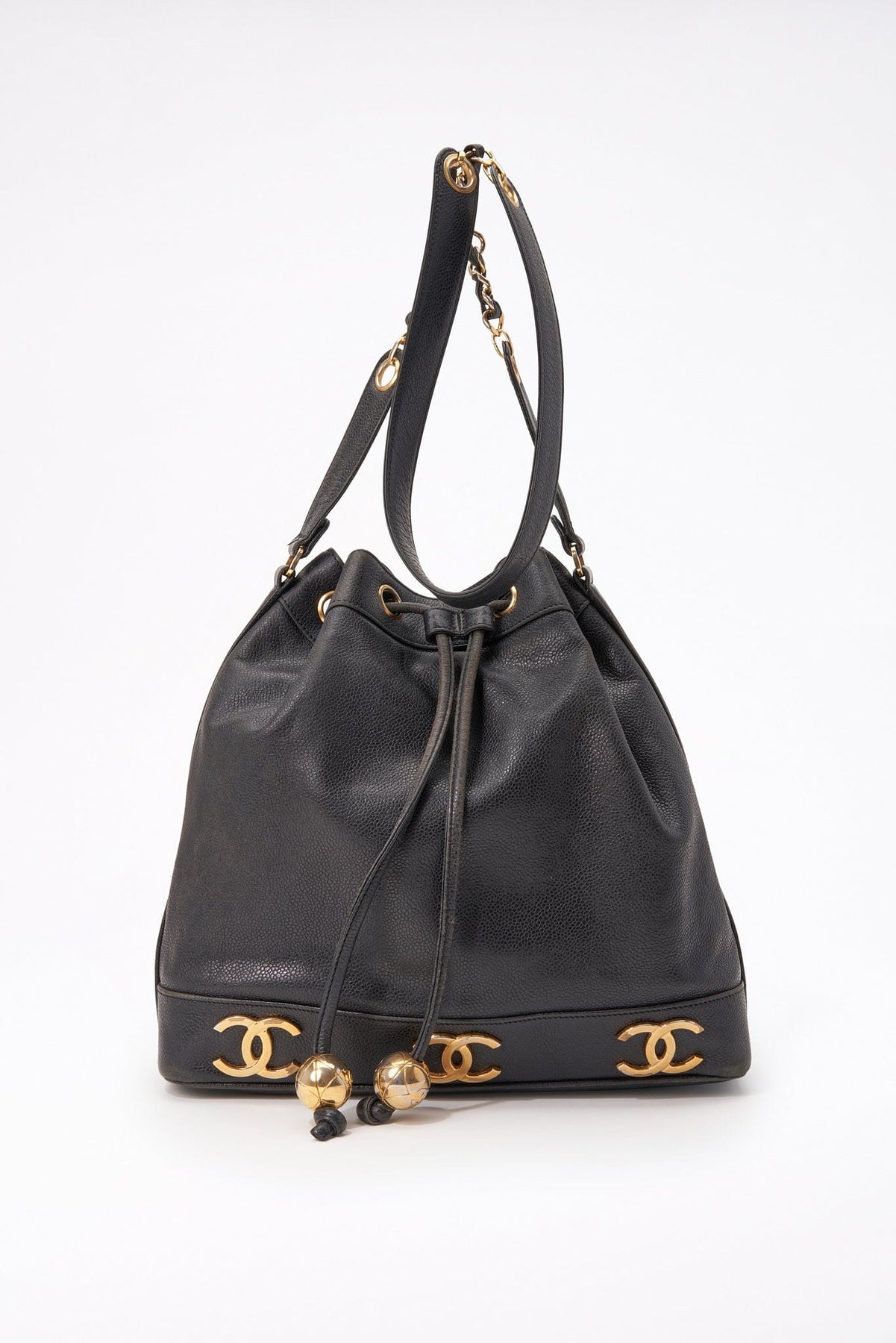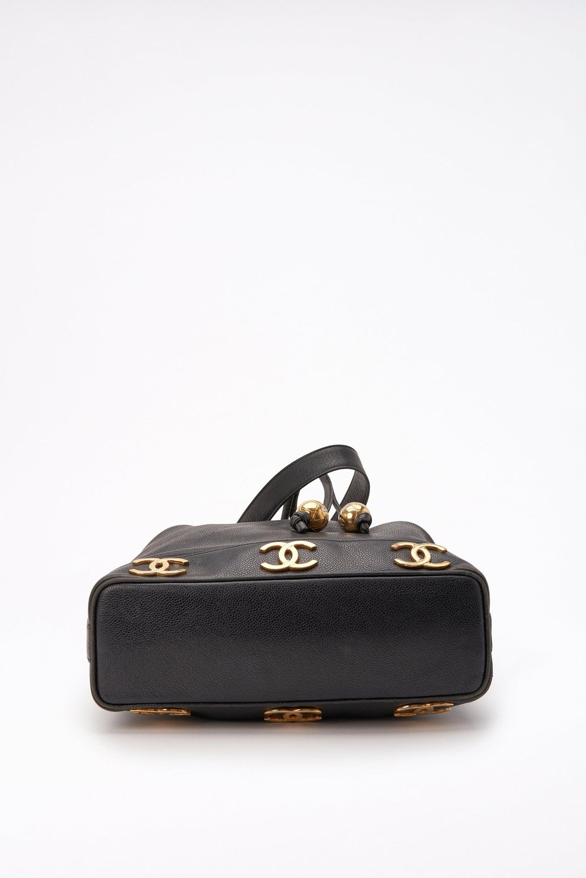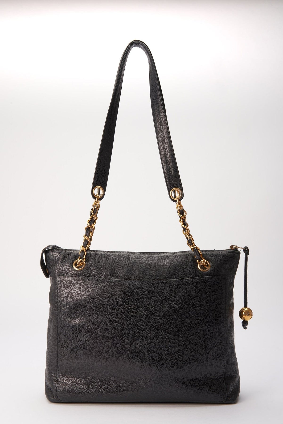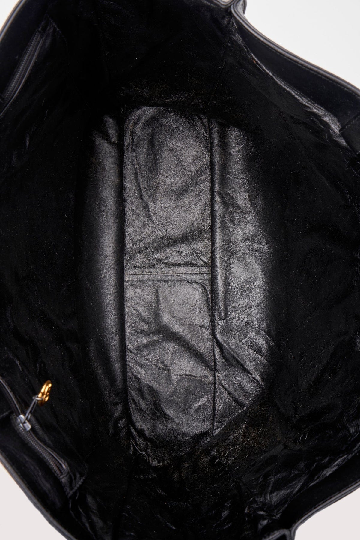 Vintage Chanel Black Leather Tote Bag with 24K Gold Plated Hardware