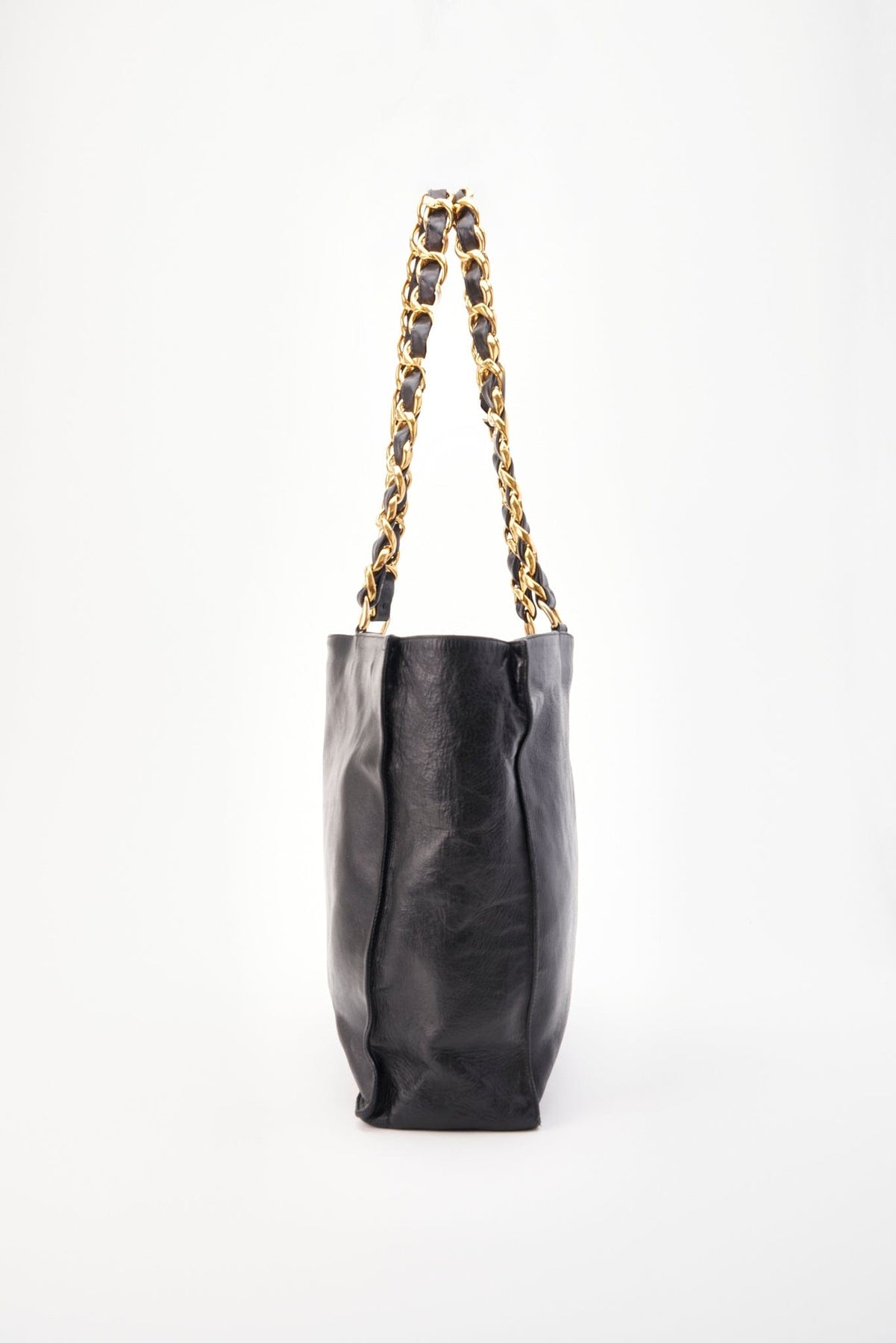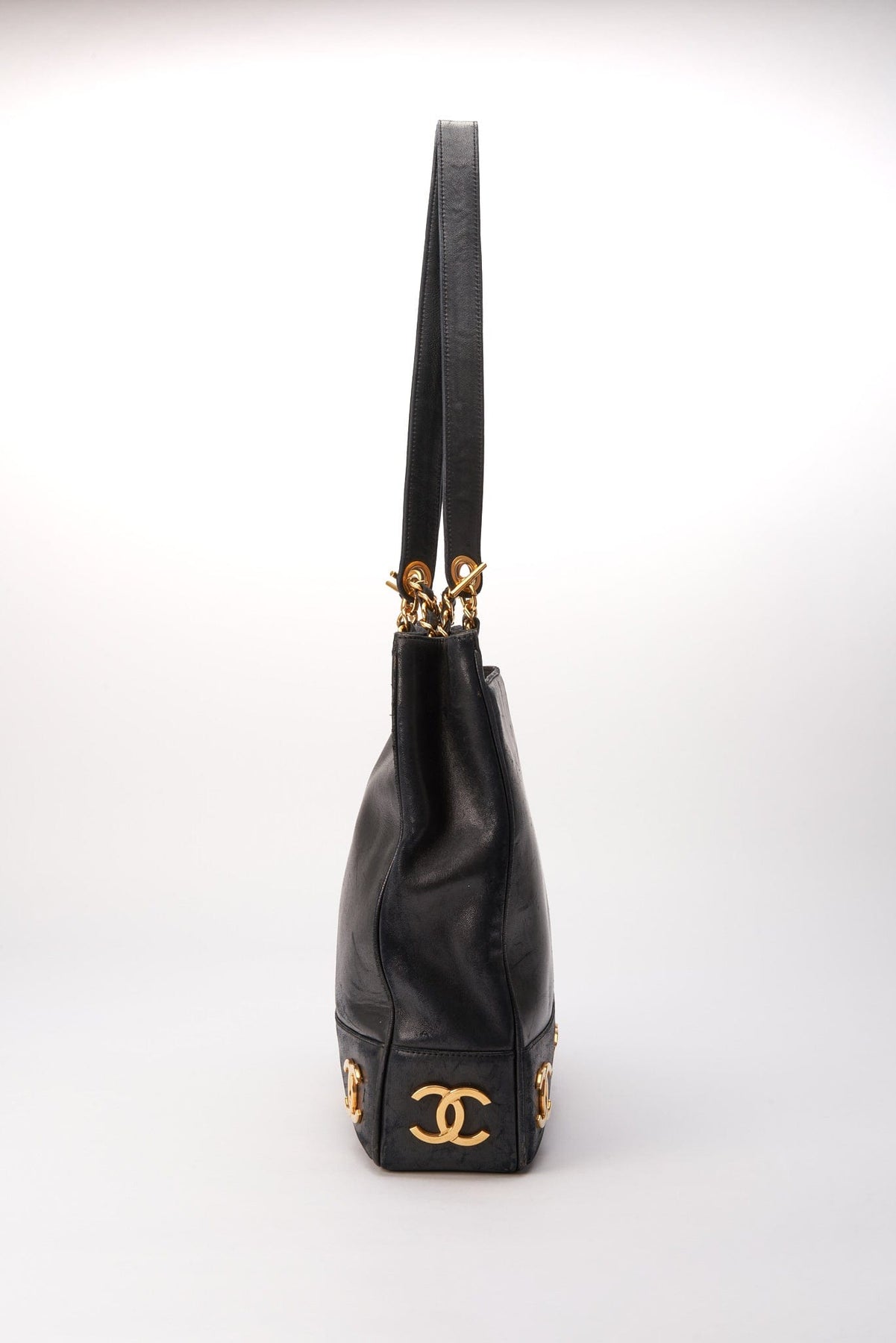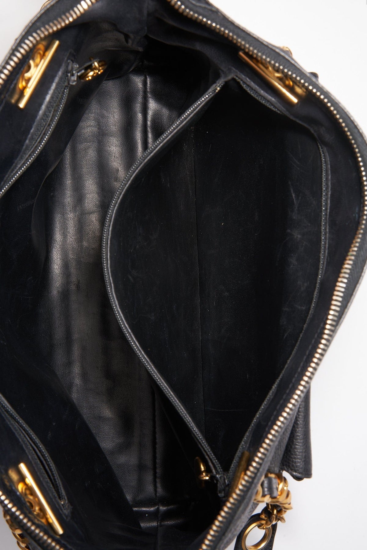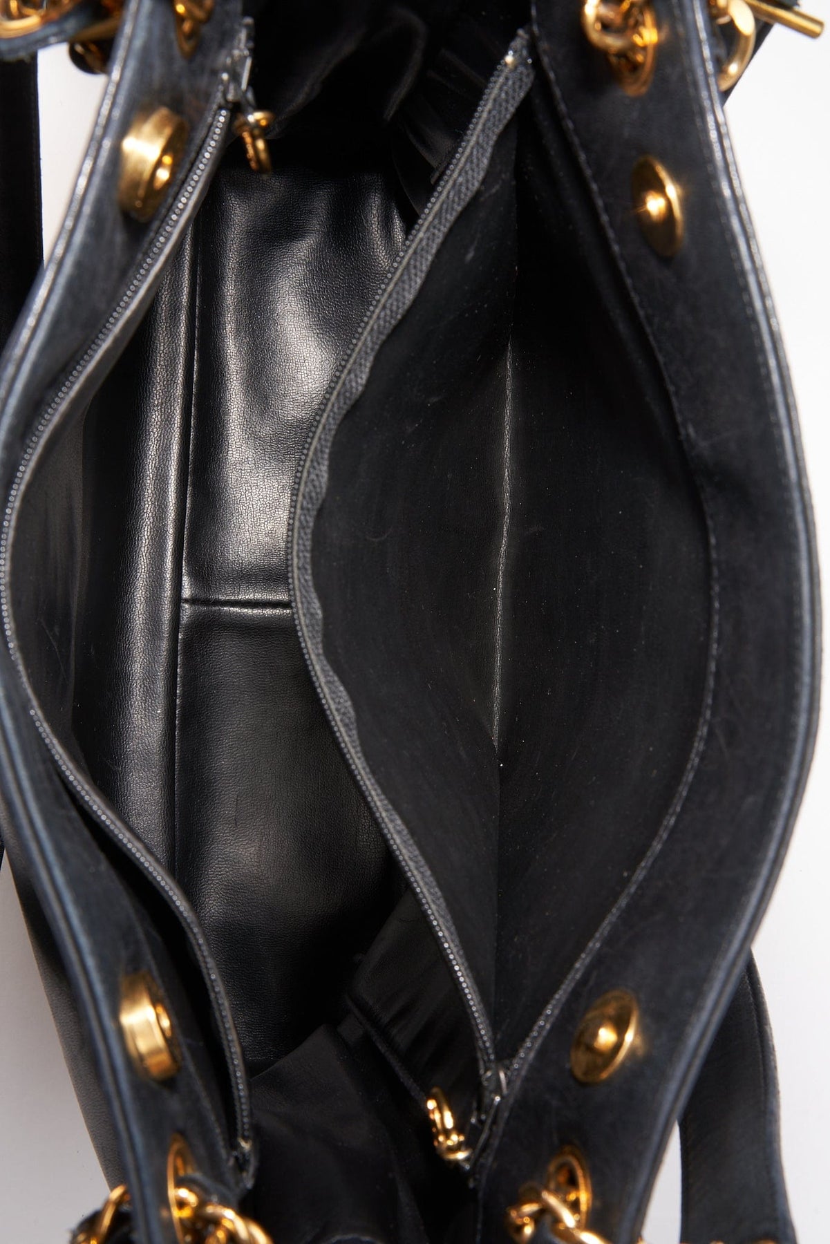 Vintage Chanel Black Leather Tote Bag with Chunky Gold Hardware