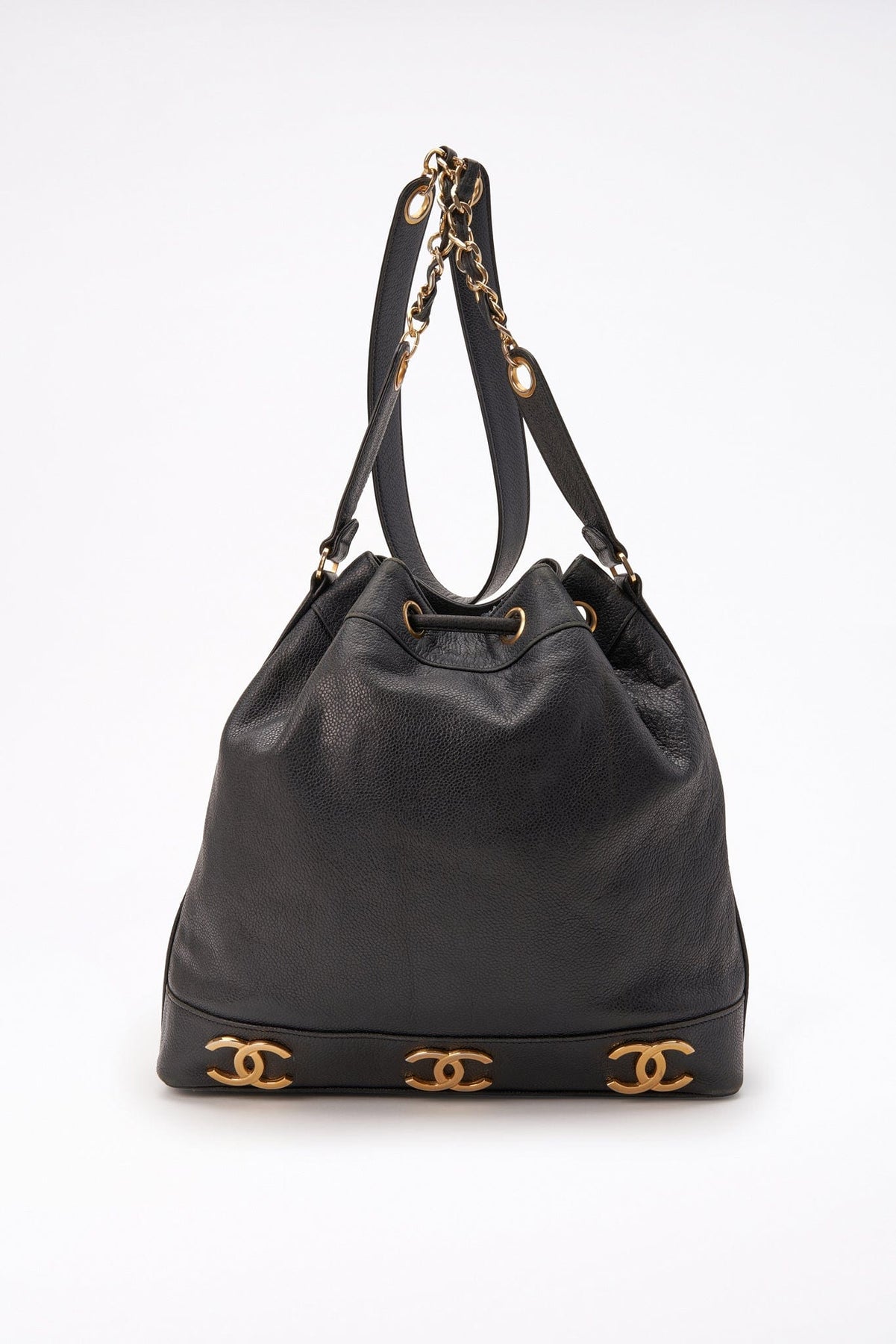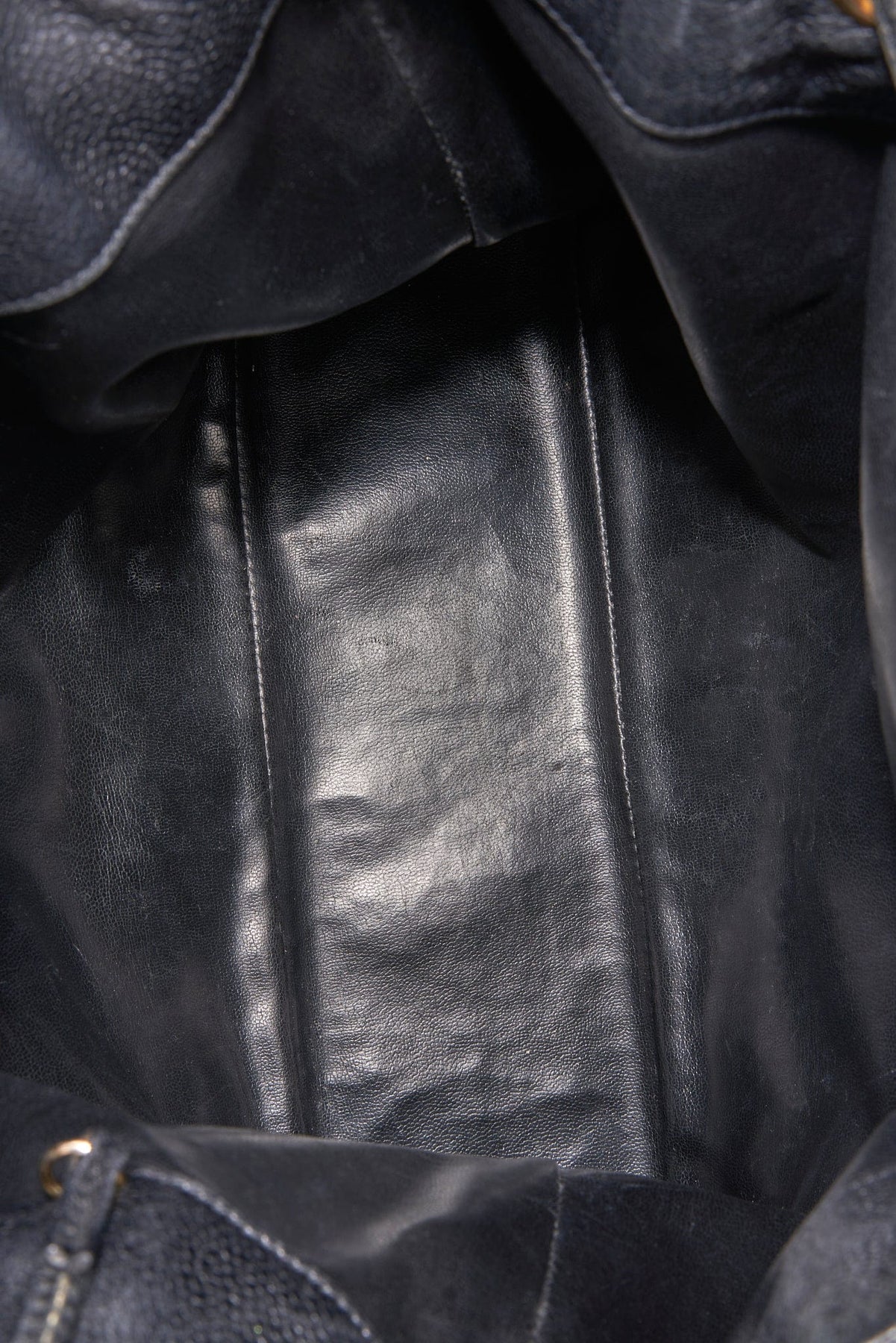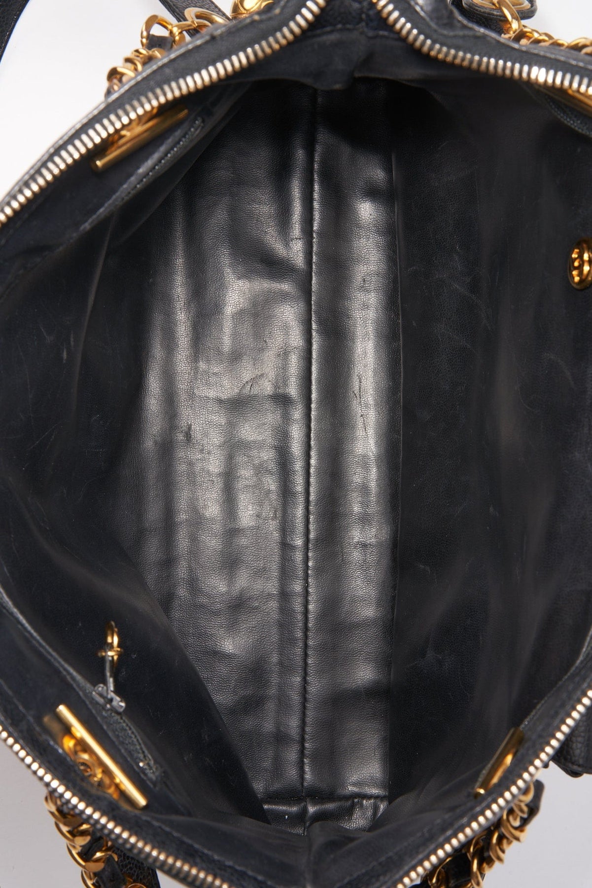 Vintage Chanel Black Leather Tote Bag with Chunky Gold Hardware