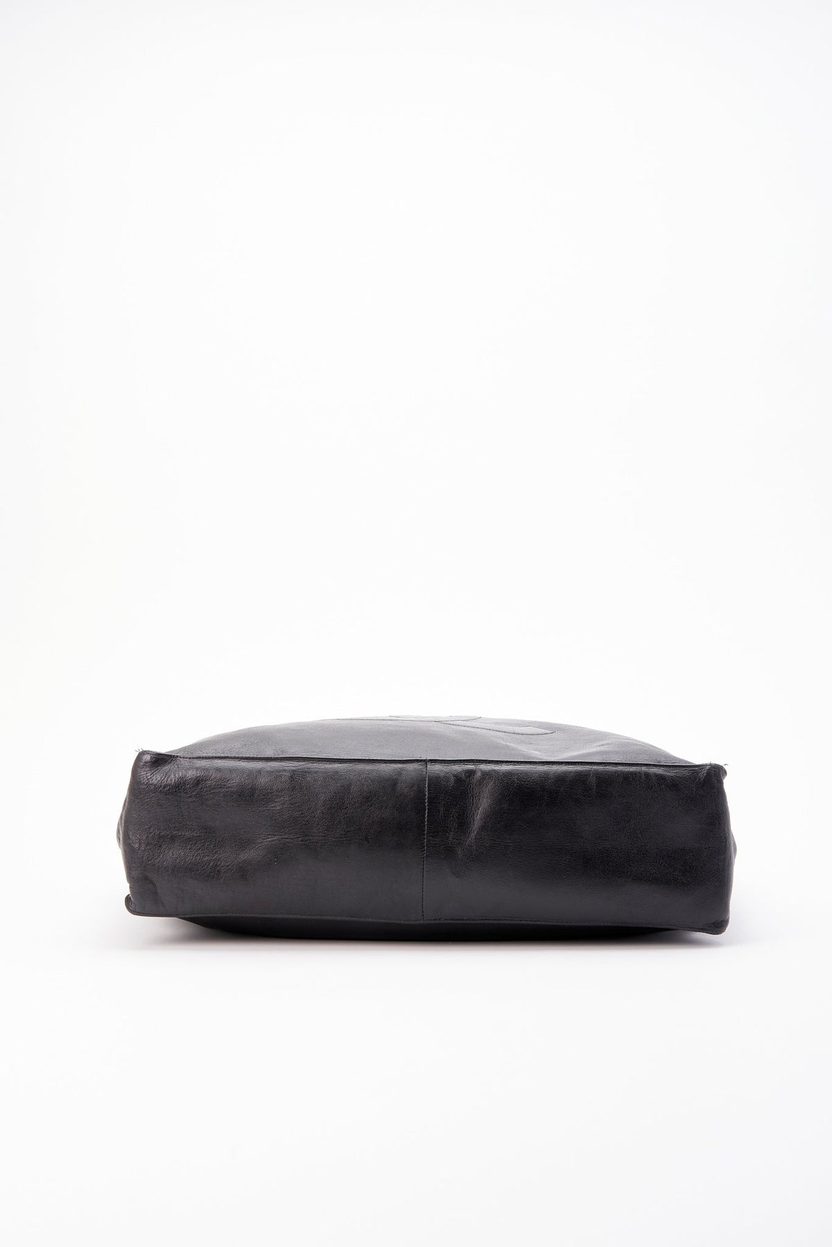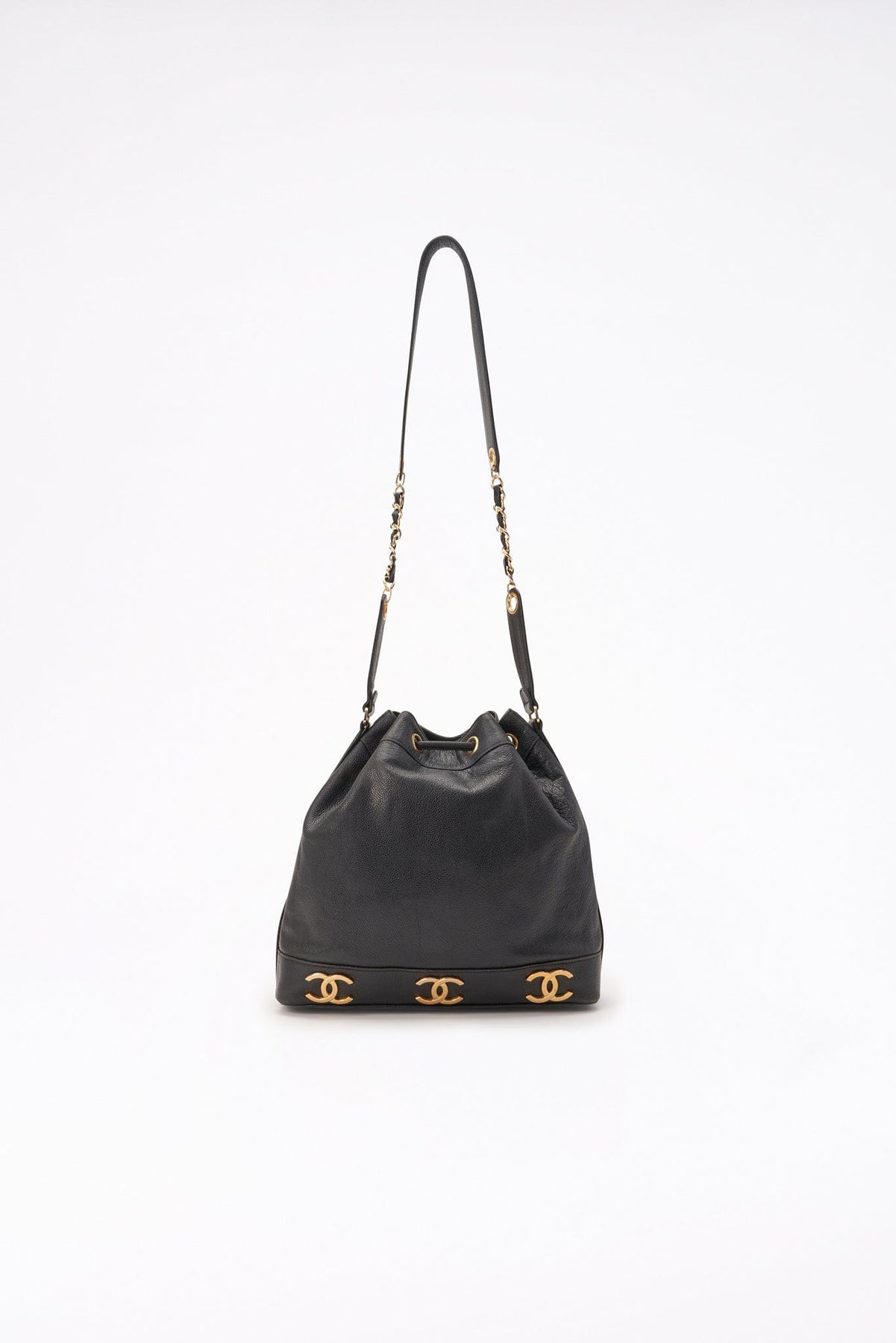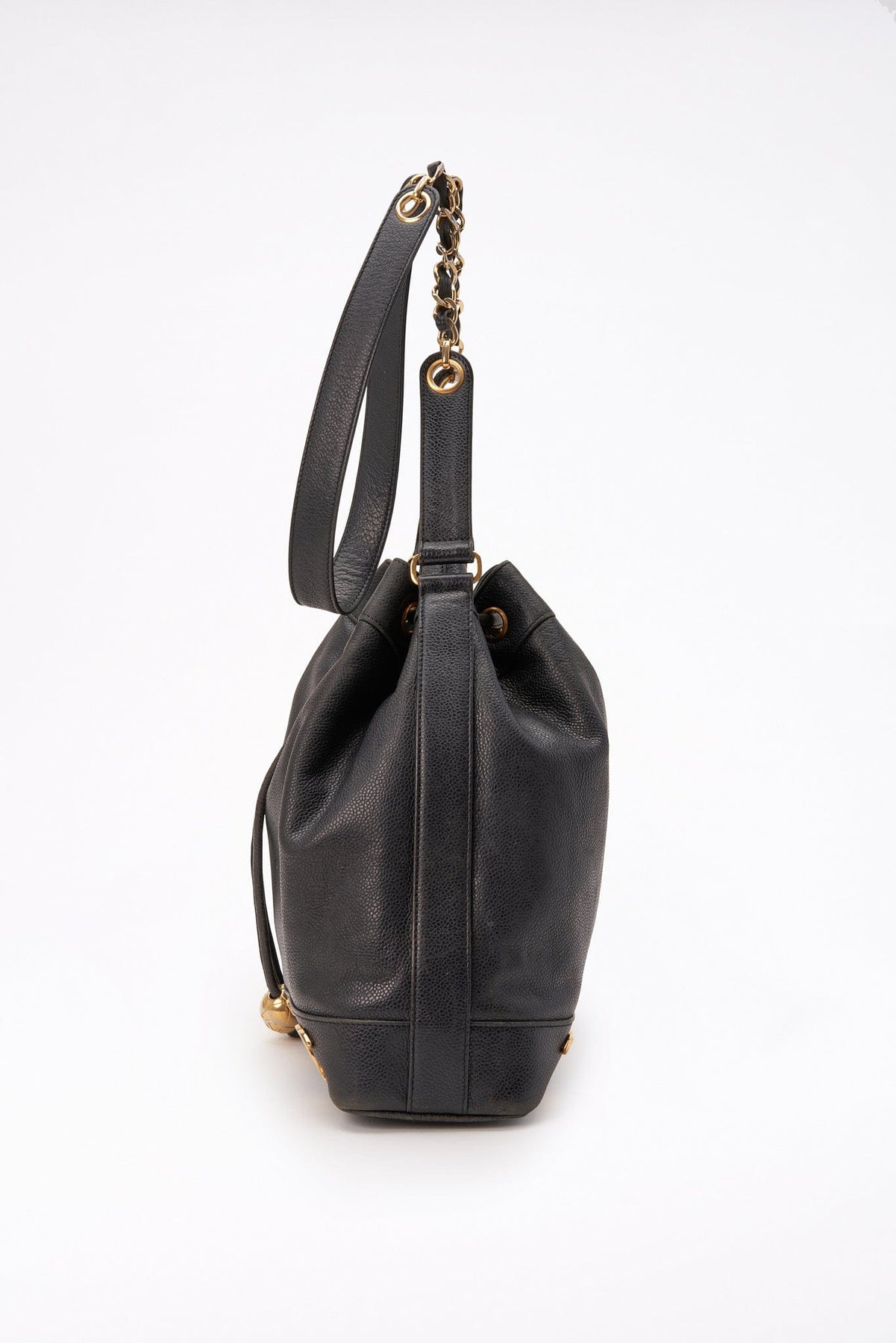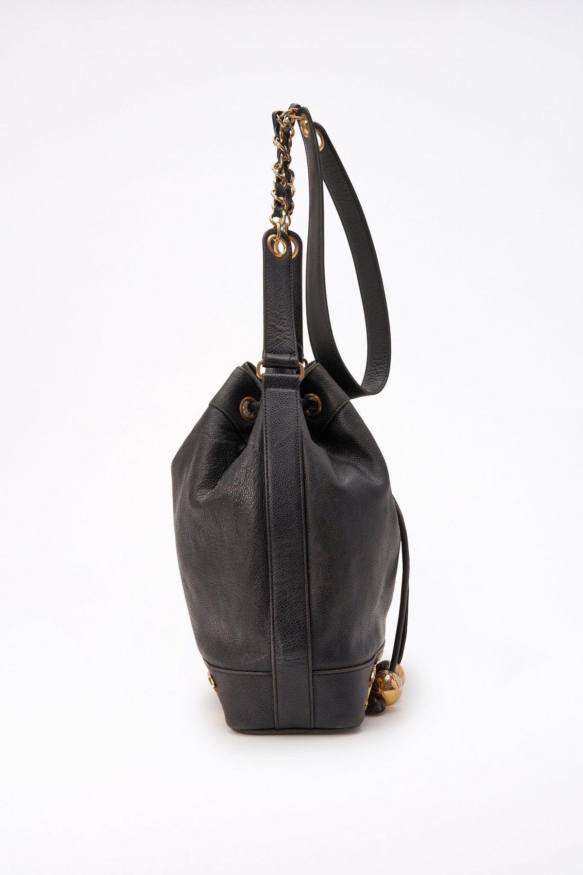 Vintage Chanel Black Leather Tote Bag with Chunky Gold Hardware