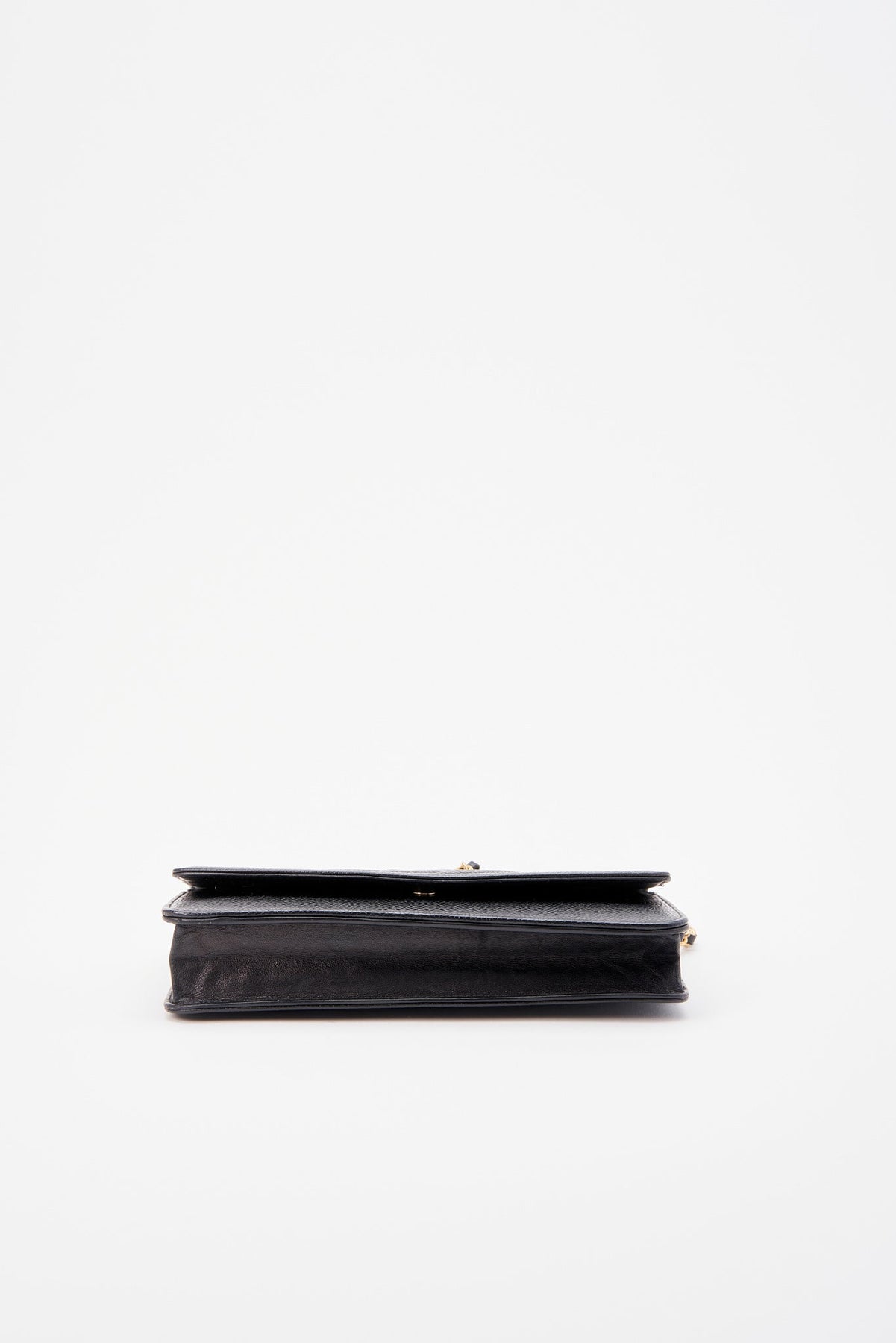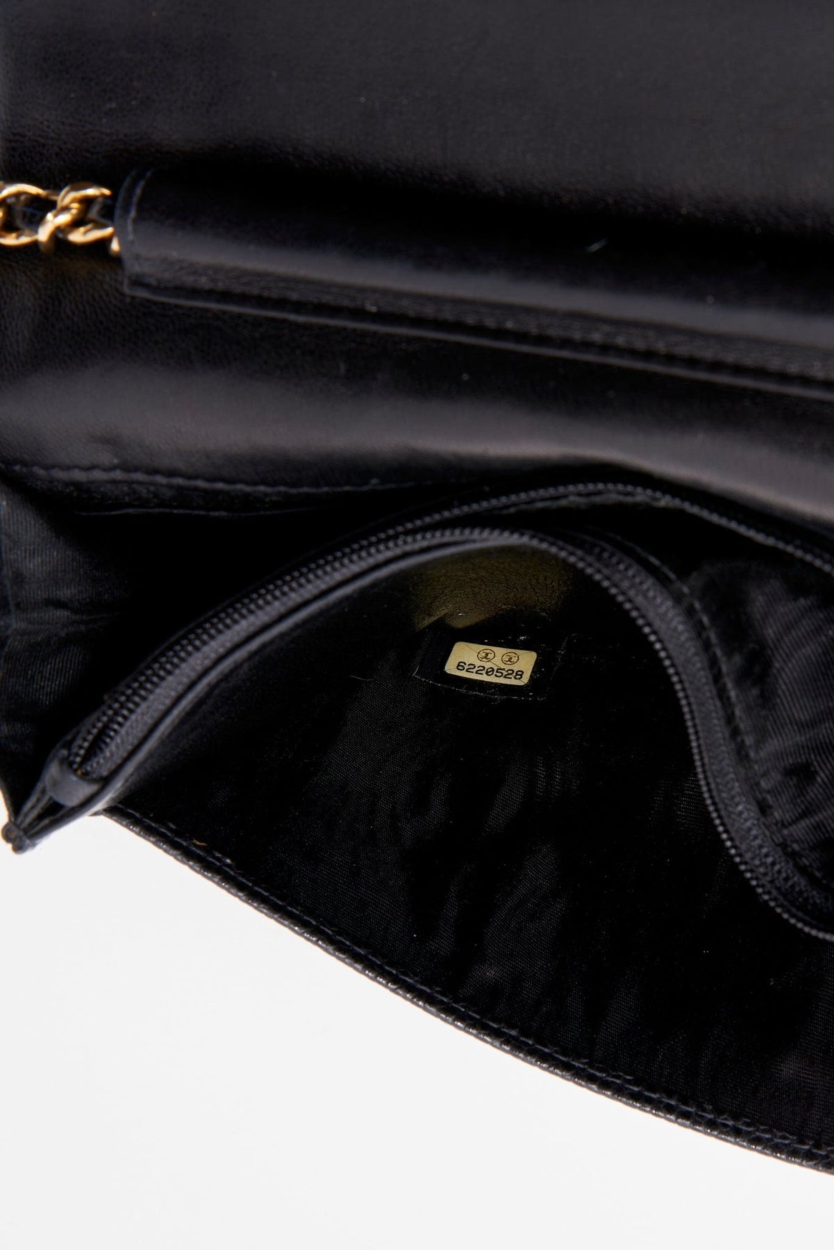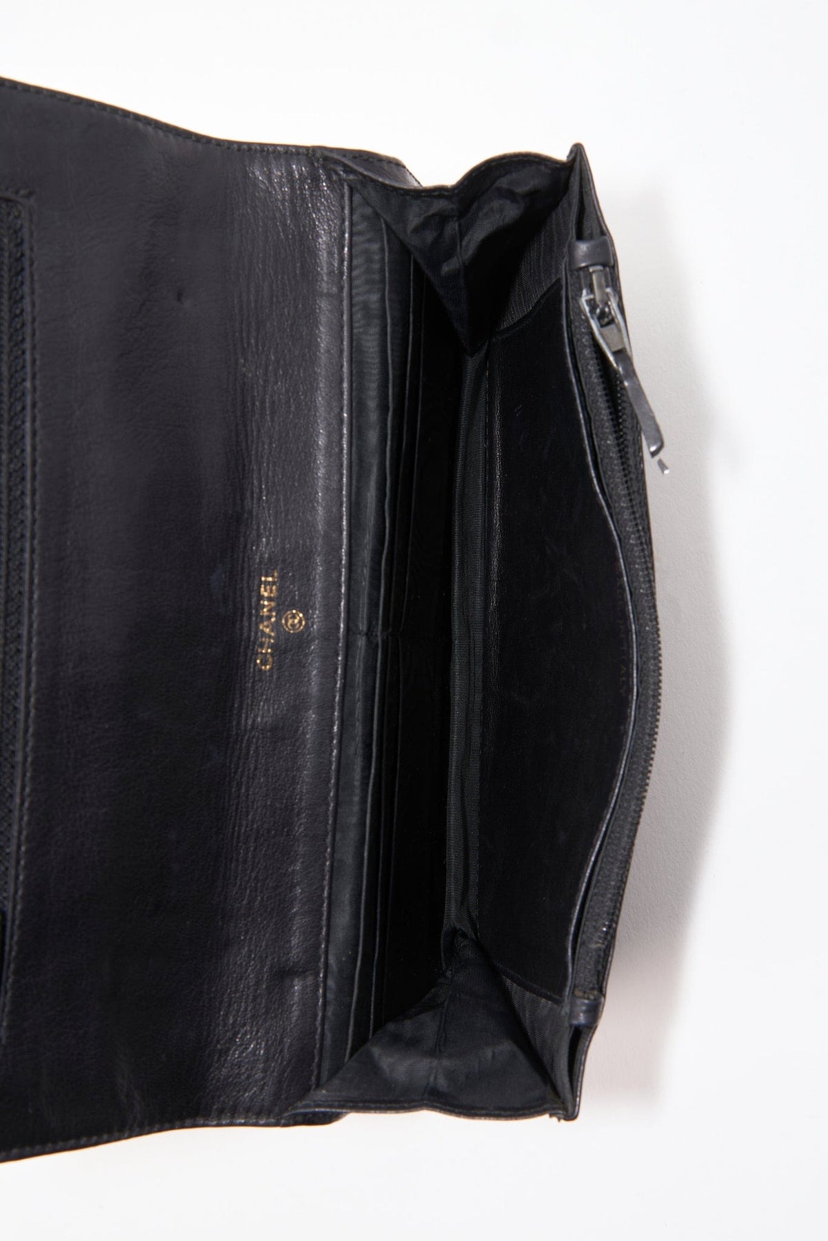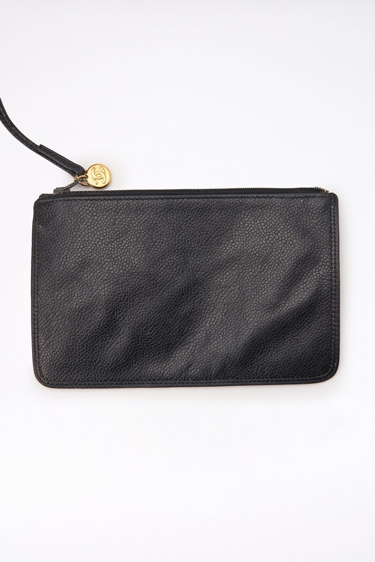 Vintage Chanel Black Caviar Leather Wallet On Chain