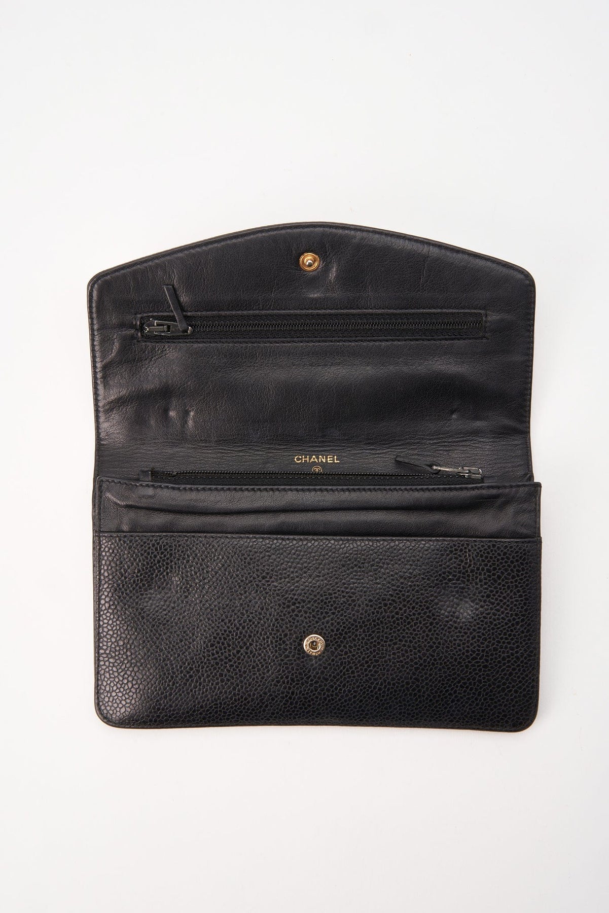 Regular price $2,120.00 Sale price $430.00 Save $1,690.00This beautiful vintage Chanel wallet is crafted from black caviar leather with gold hardware.