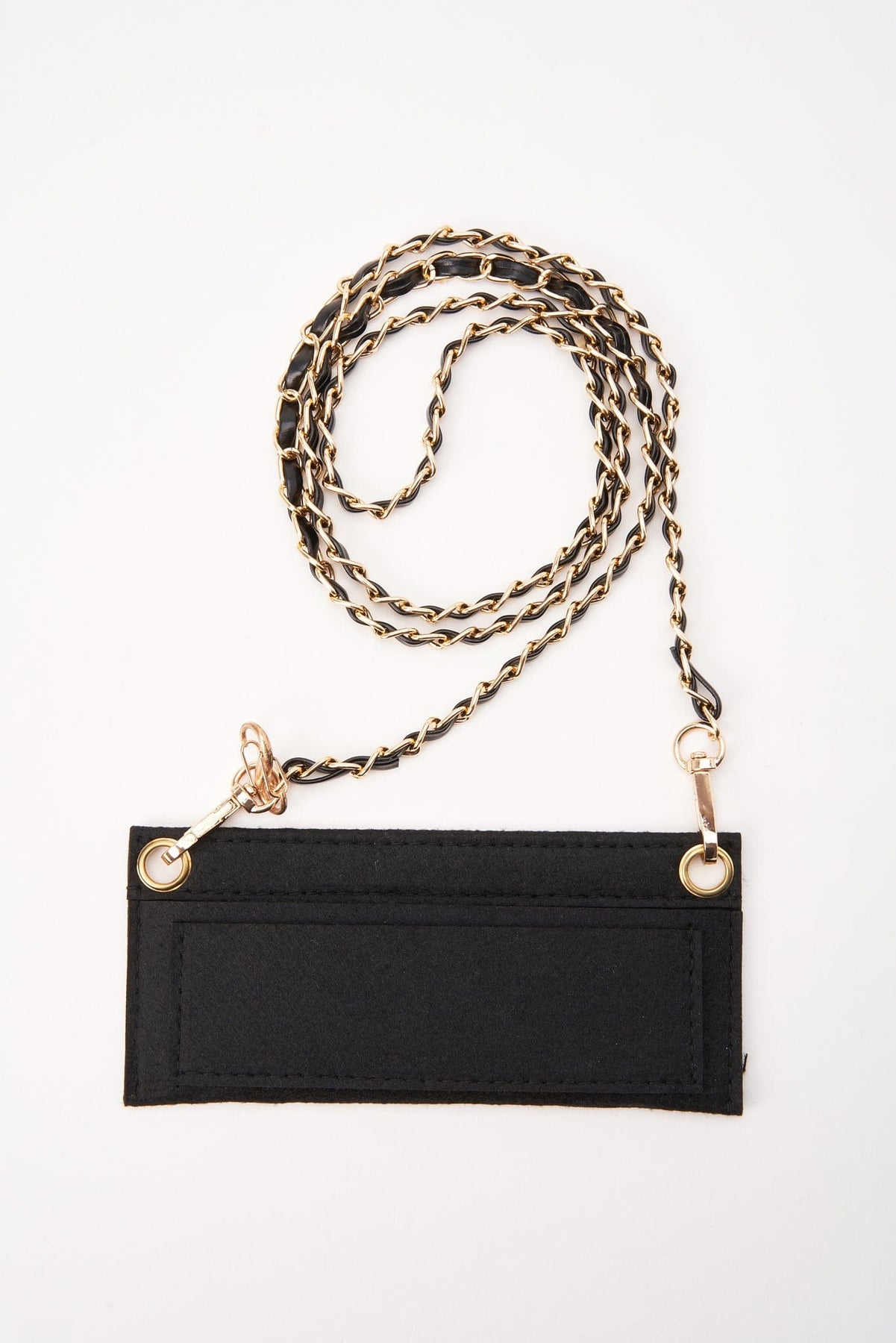 Included with this wallet is a felt and chain insert, this allows you to convert your wallet into a crossbody bag. Please note that this chain/felt addition is not made by Chanel.