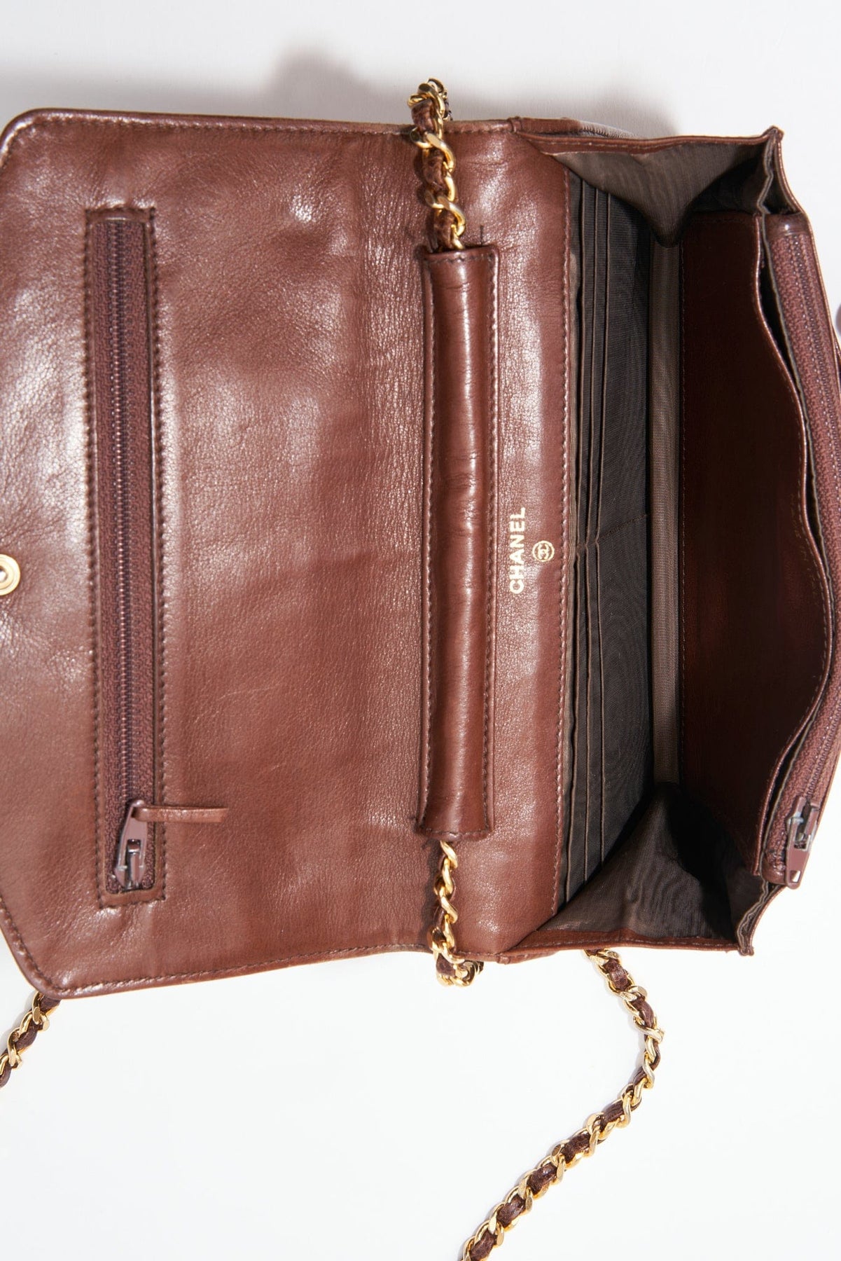 Vintage Chanel Brown Caviar Leather Wallet On Chain